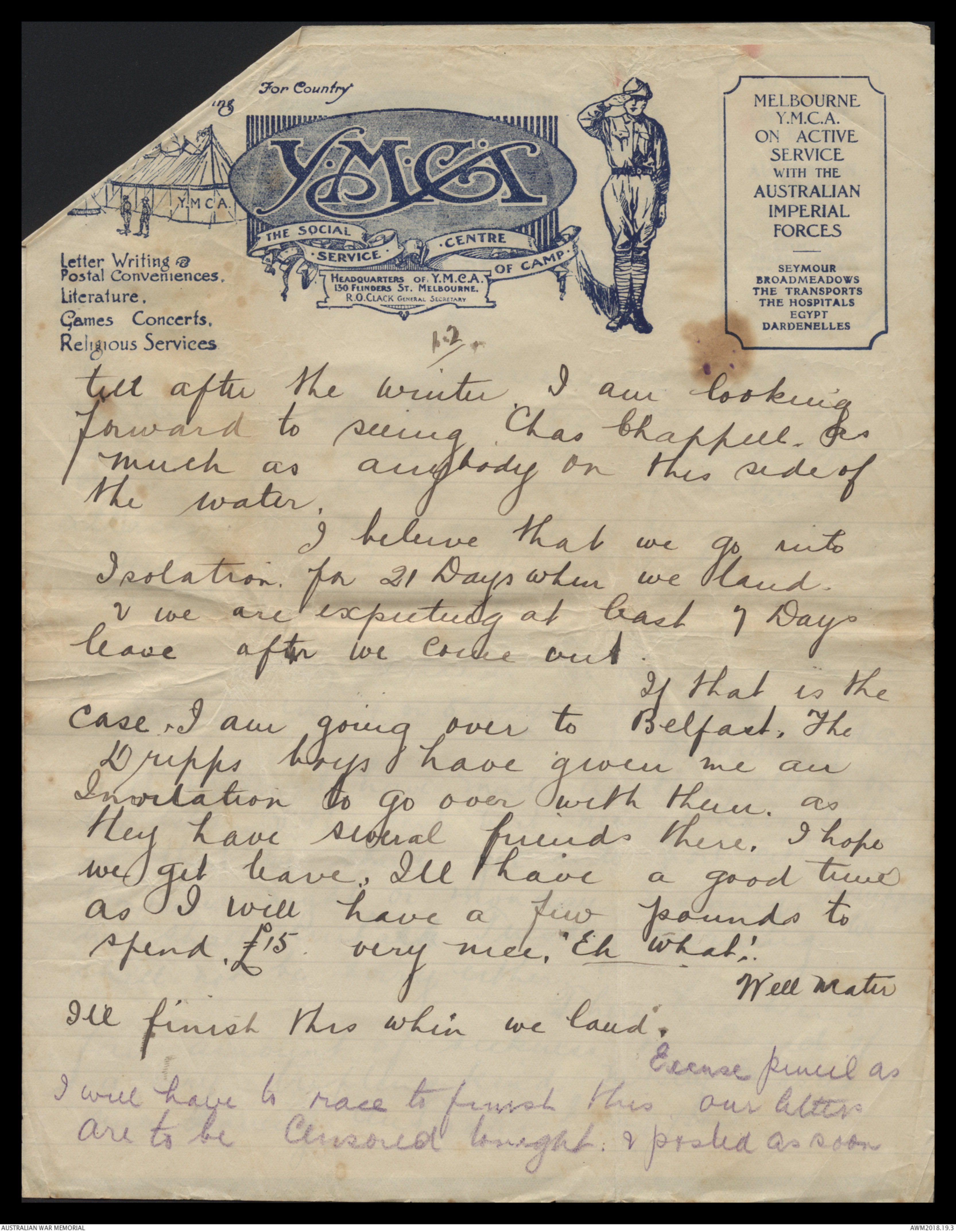 Letters from Mervyn Ernest Hazen to his family, 1916-1917 - Part 2