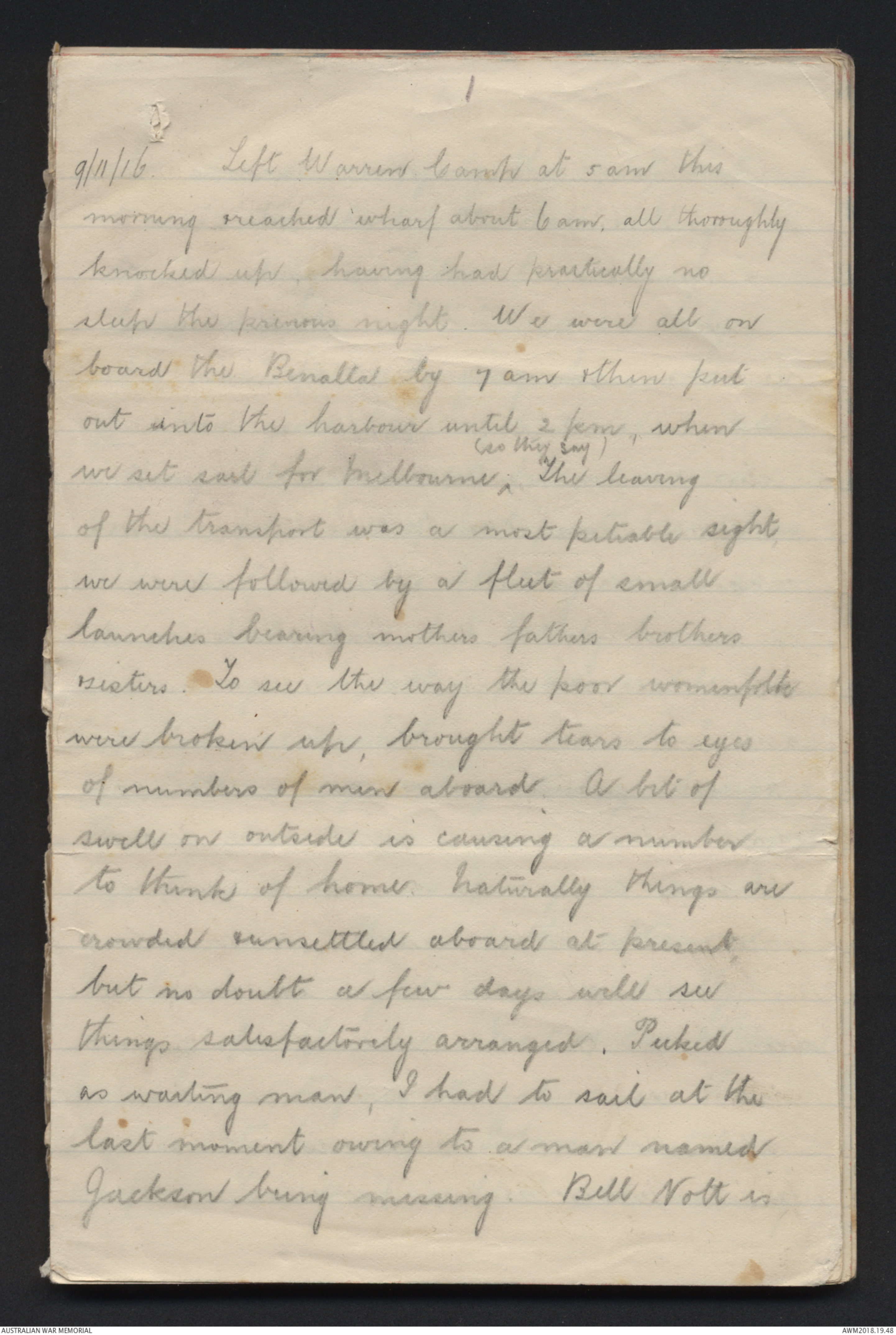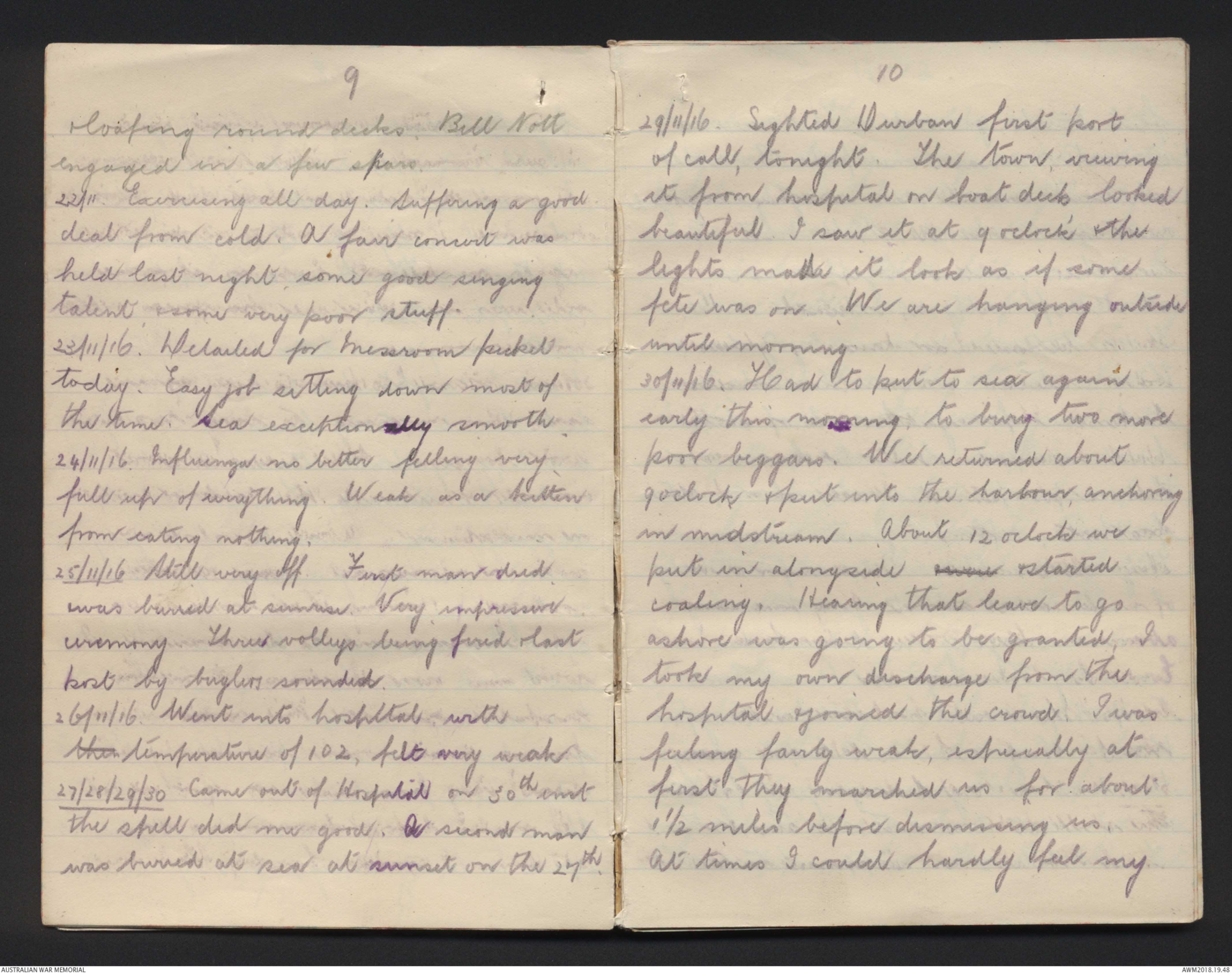 Diary of Alexander Sutherland Mackay, 9 November 1916 - 4 March 1917 - Part 1