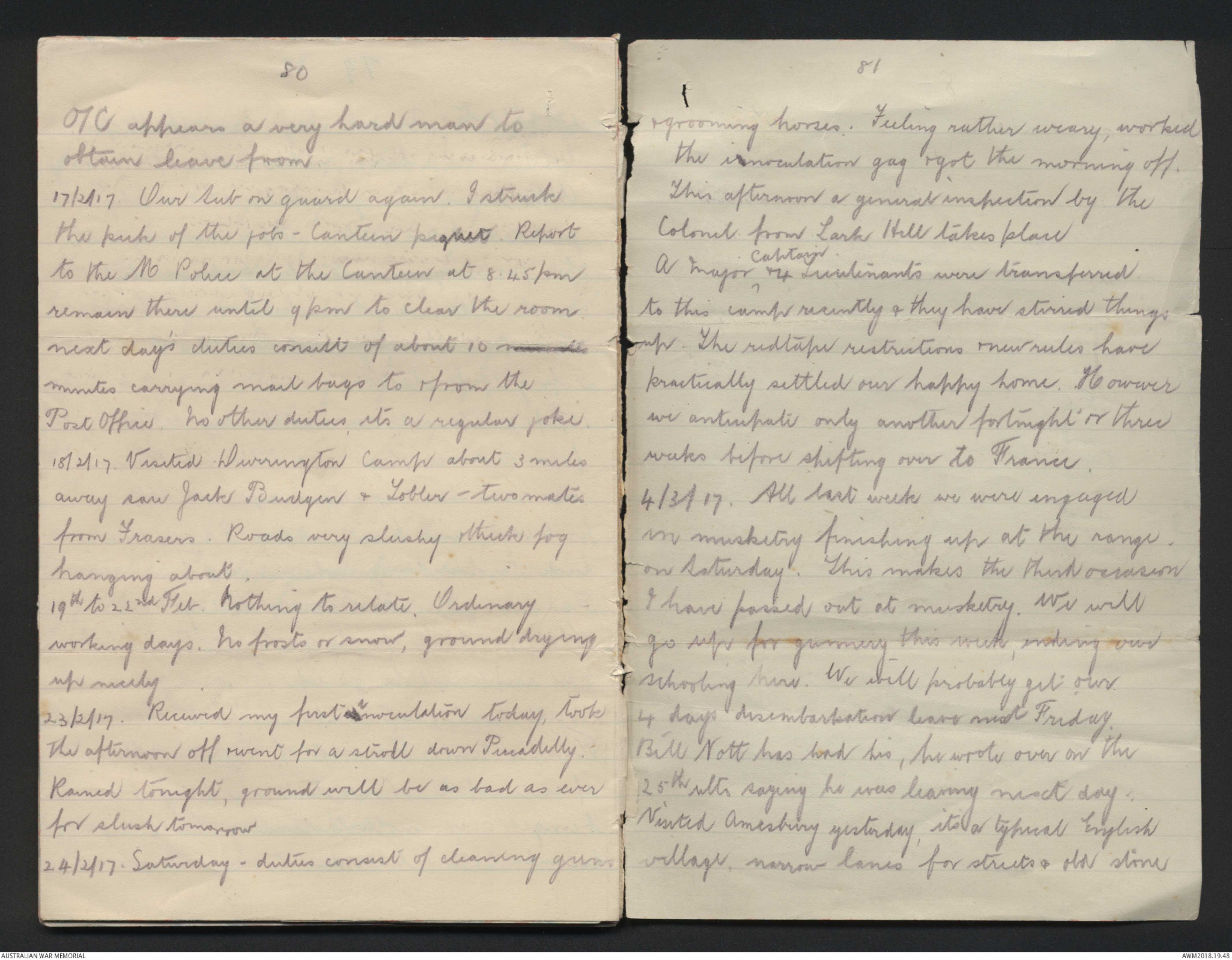 24/2/17. Saturday - duties consist of cleaning guns