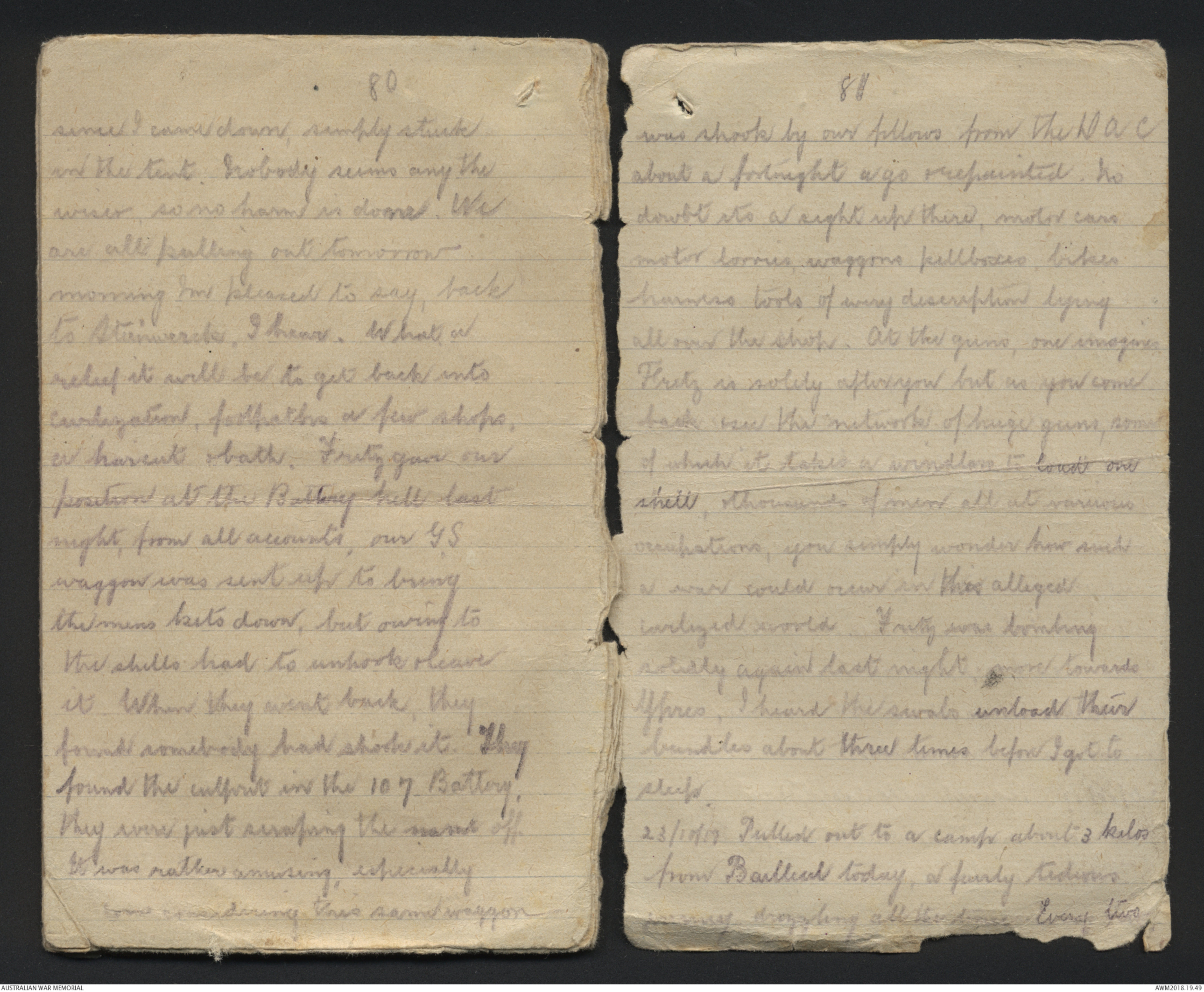 out to the Waggon Lines. lve been under