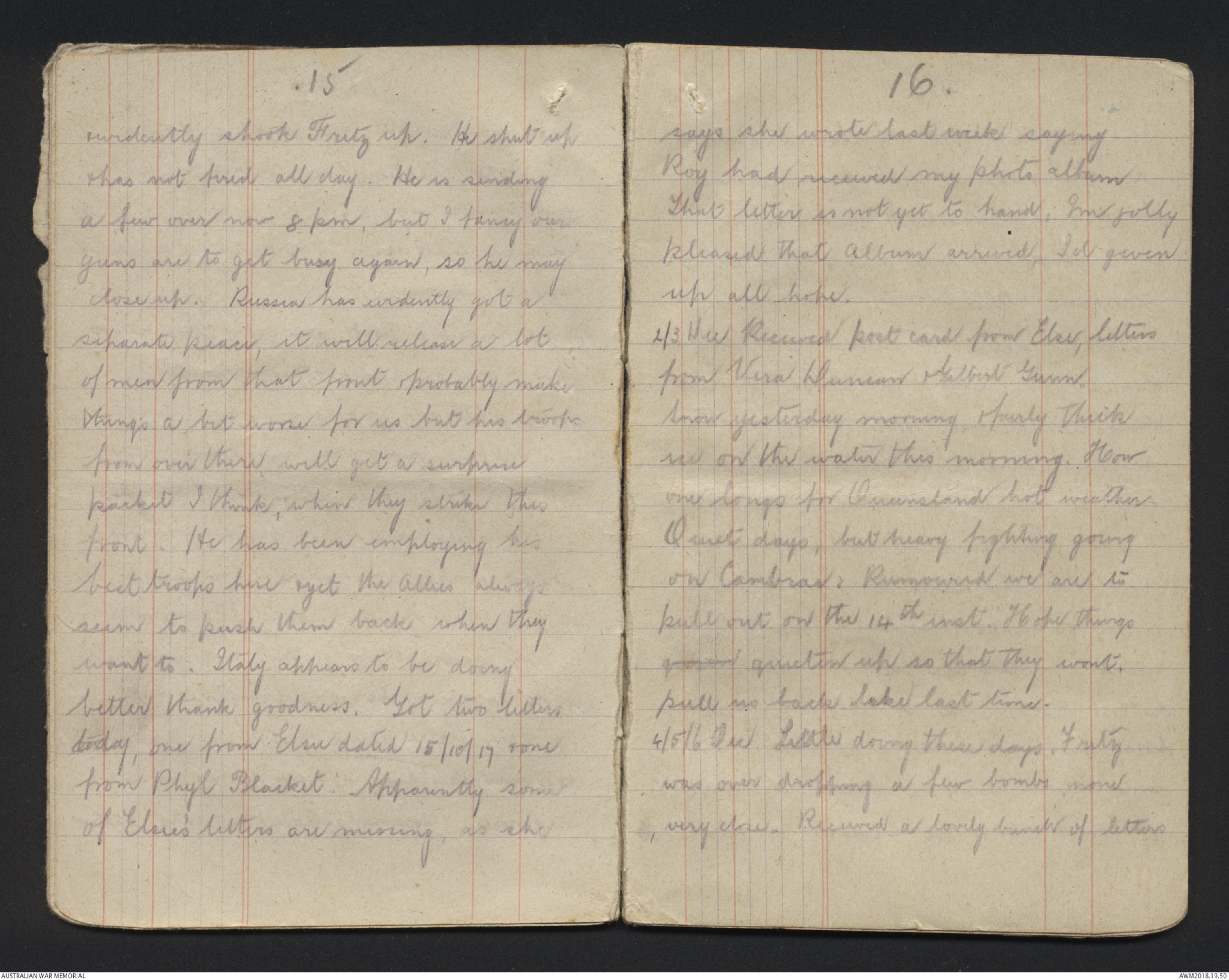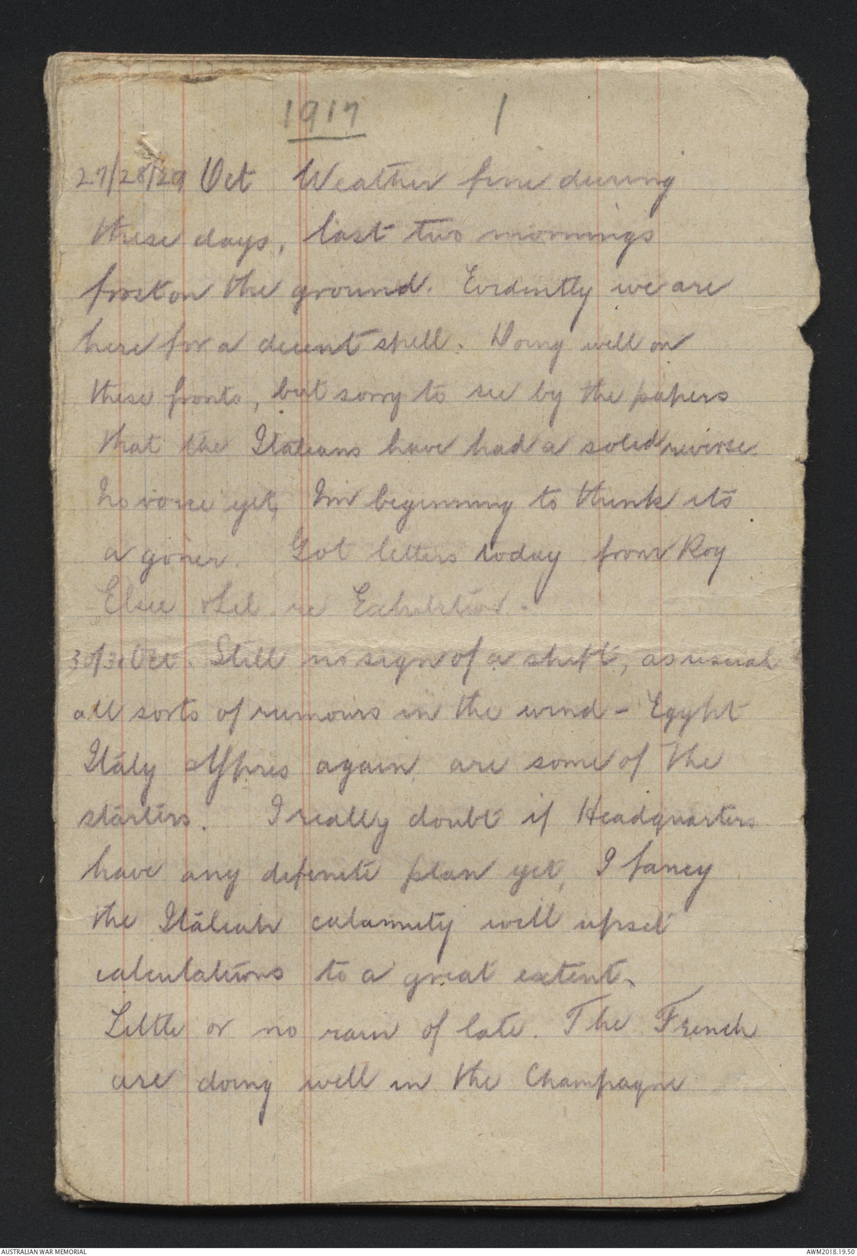Diary of Alexander Sutherland Mackay, 27 October 1917 - 4 March 1918 - Part 1