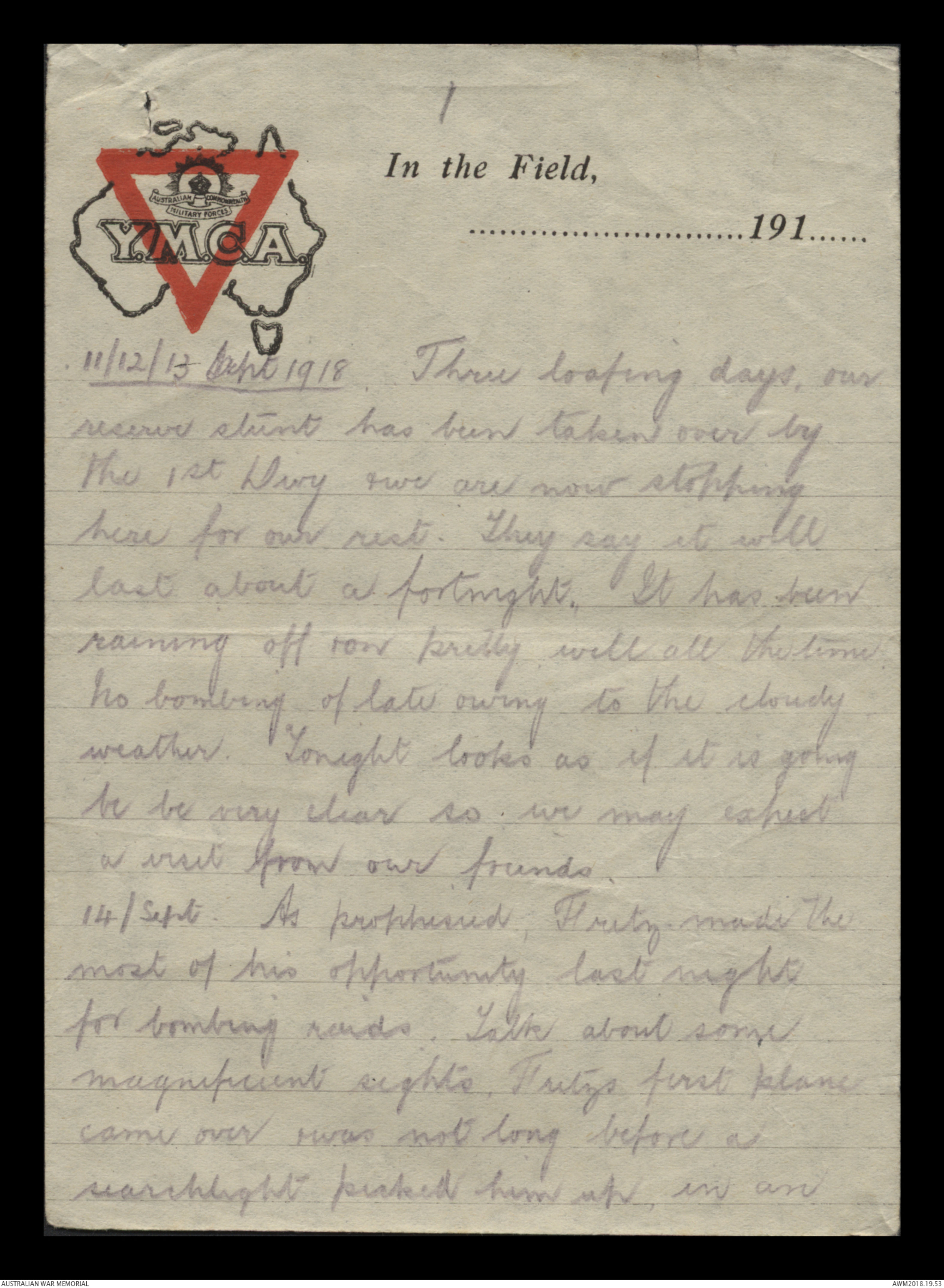 Diary of Alexander Sutherland Mackay, 11 September 1918 - 11 October 1918 - Part 1