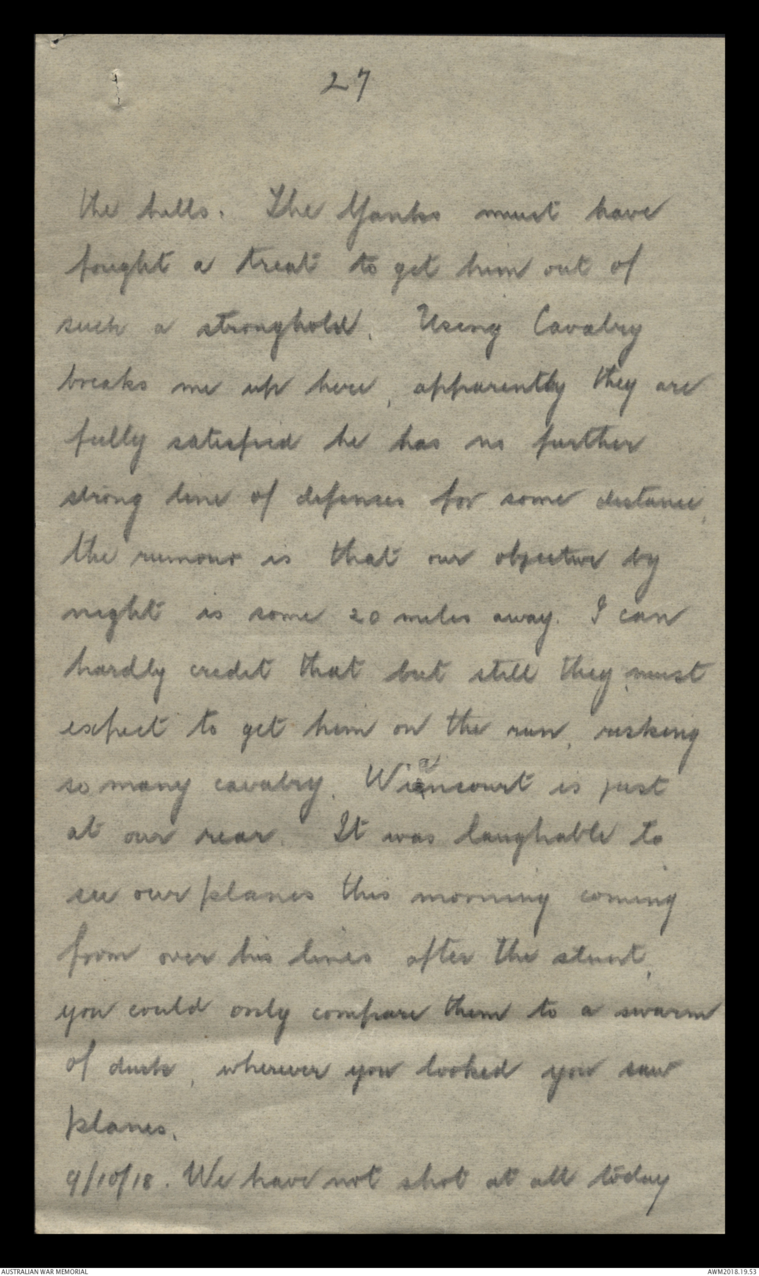 Diary of Alexander Sutherland Mackay, 11 September 1918 - 11 October 1918 - Part 3