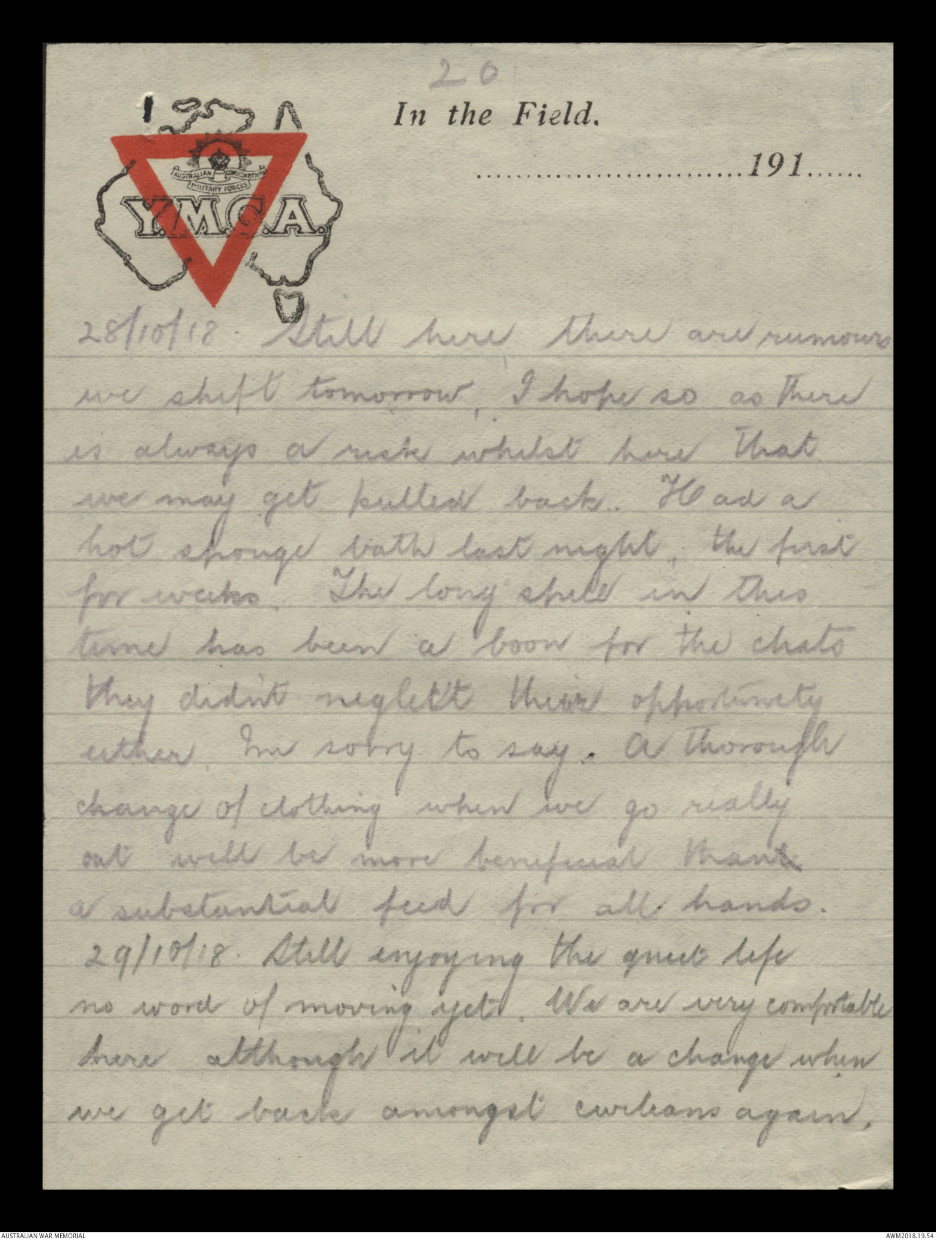Diary of Alexander Sutherland Mackay, 12 October - 7 November 1918 - Part 2