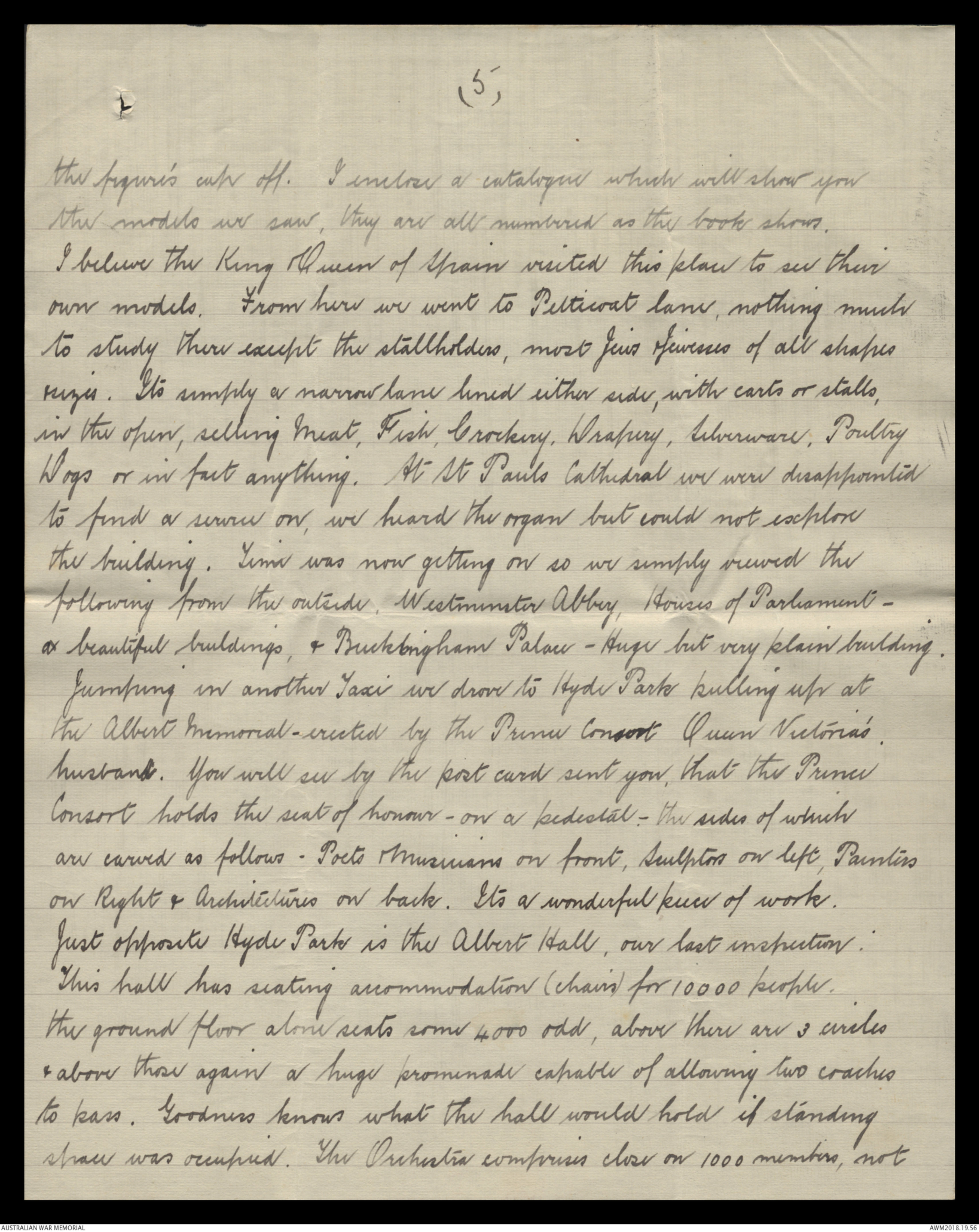 to study there except the stallholders, most Jews & Jewesses of all shapes & sizes. Its simply a narrow lane lined either side, with carts or stalls, in the open, selling meat, Fish, Crockery, Drapery, Silverware, Poultry, Dogs or in fact anything. At St Pauls Cathedral we were disappointed to find a service on, we heard the organ but could not explore the building. Time was now getting on so we simply viewed the