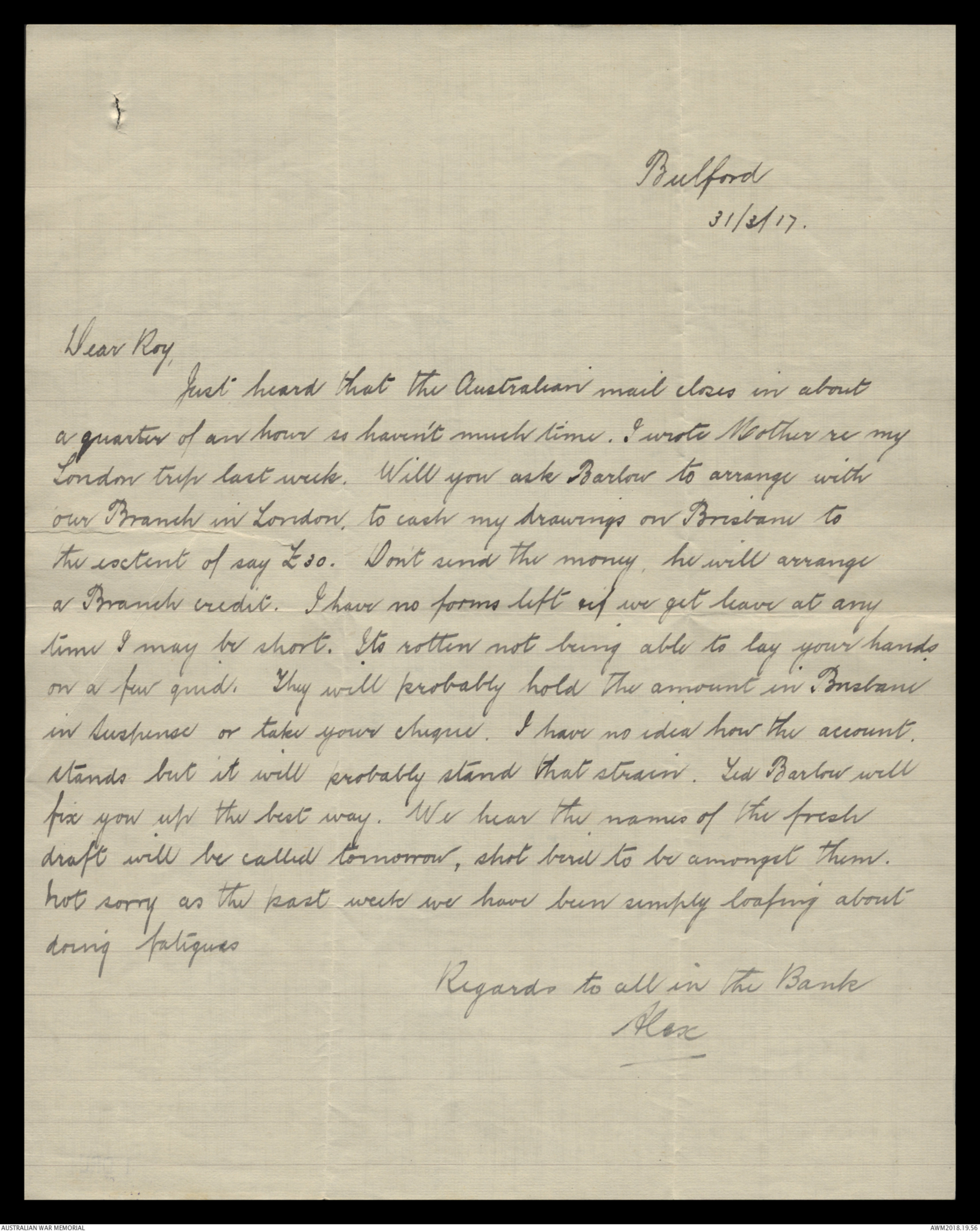 our Branch in London, to cash my drawings on Brisbane to