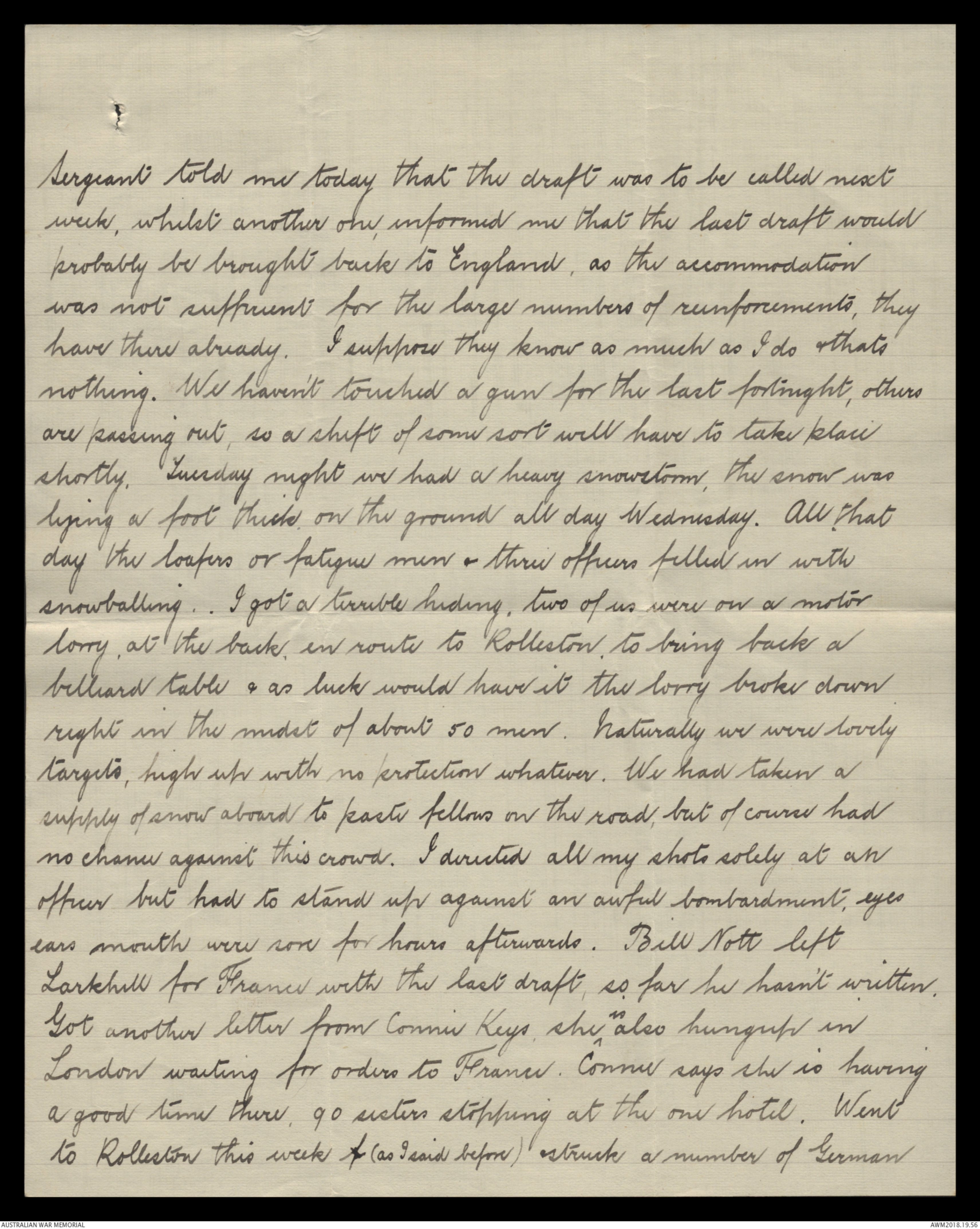 Larkhill for France with the last draft, so far he hasn't written.