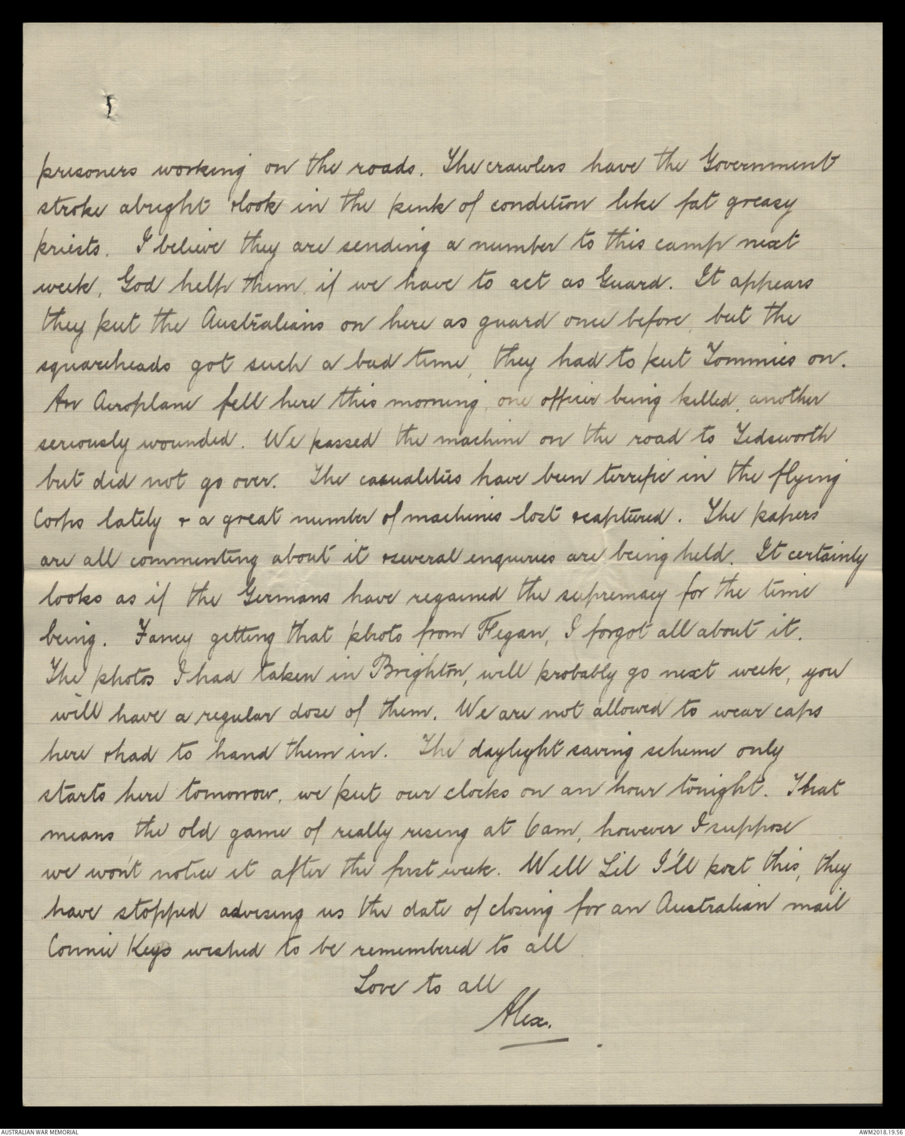 are all commenting about it & several enquiries are being held. It certainly looks as if the Germans have regained the supremacy for the time being. Fancy getting that phot from Fegan, I forgot all about it.