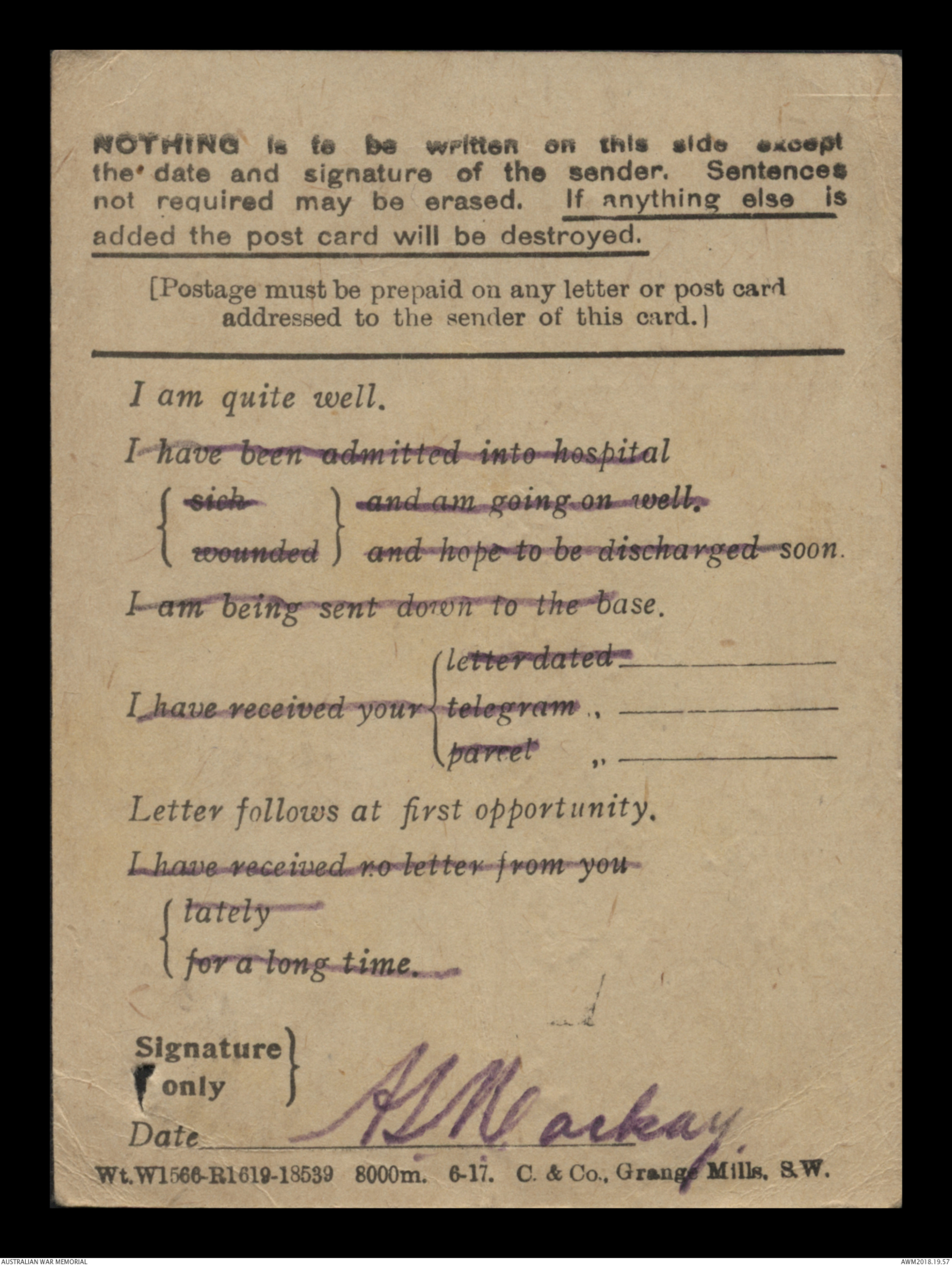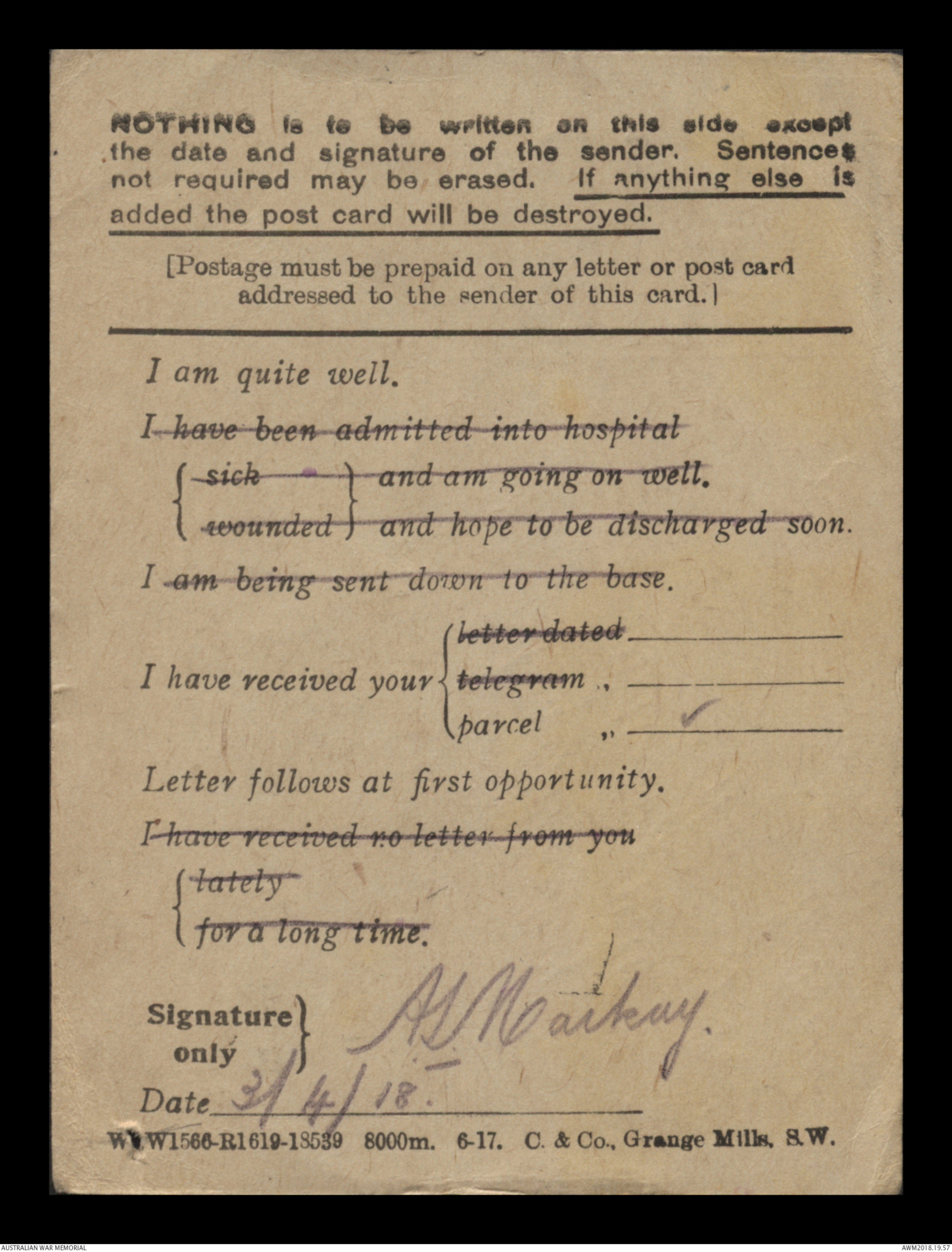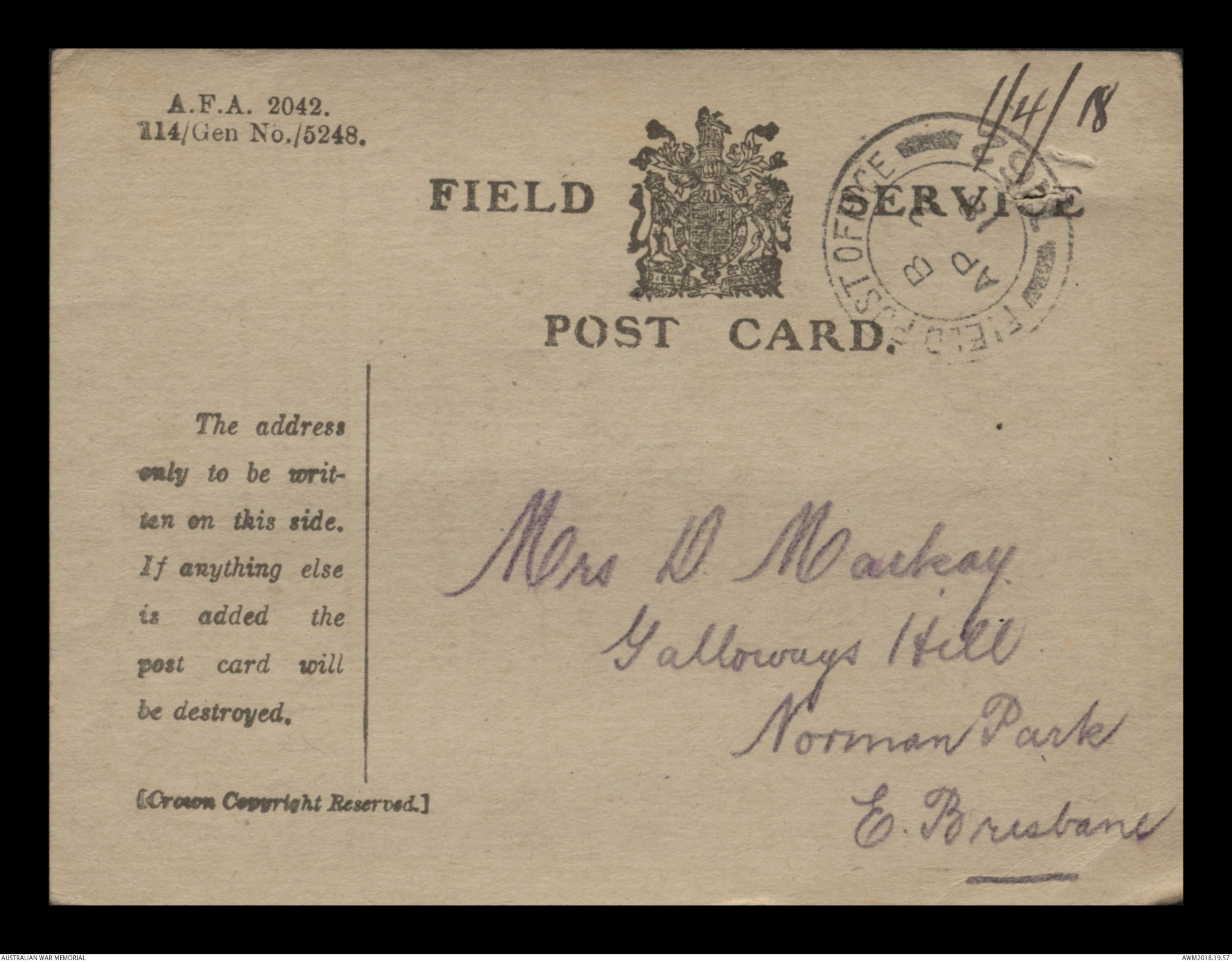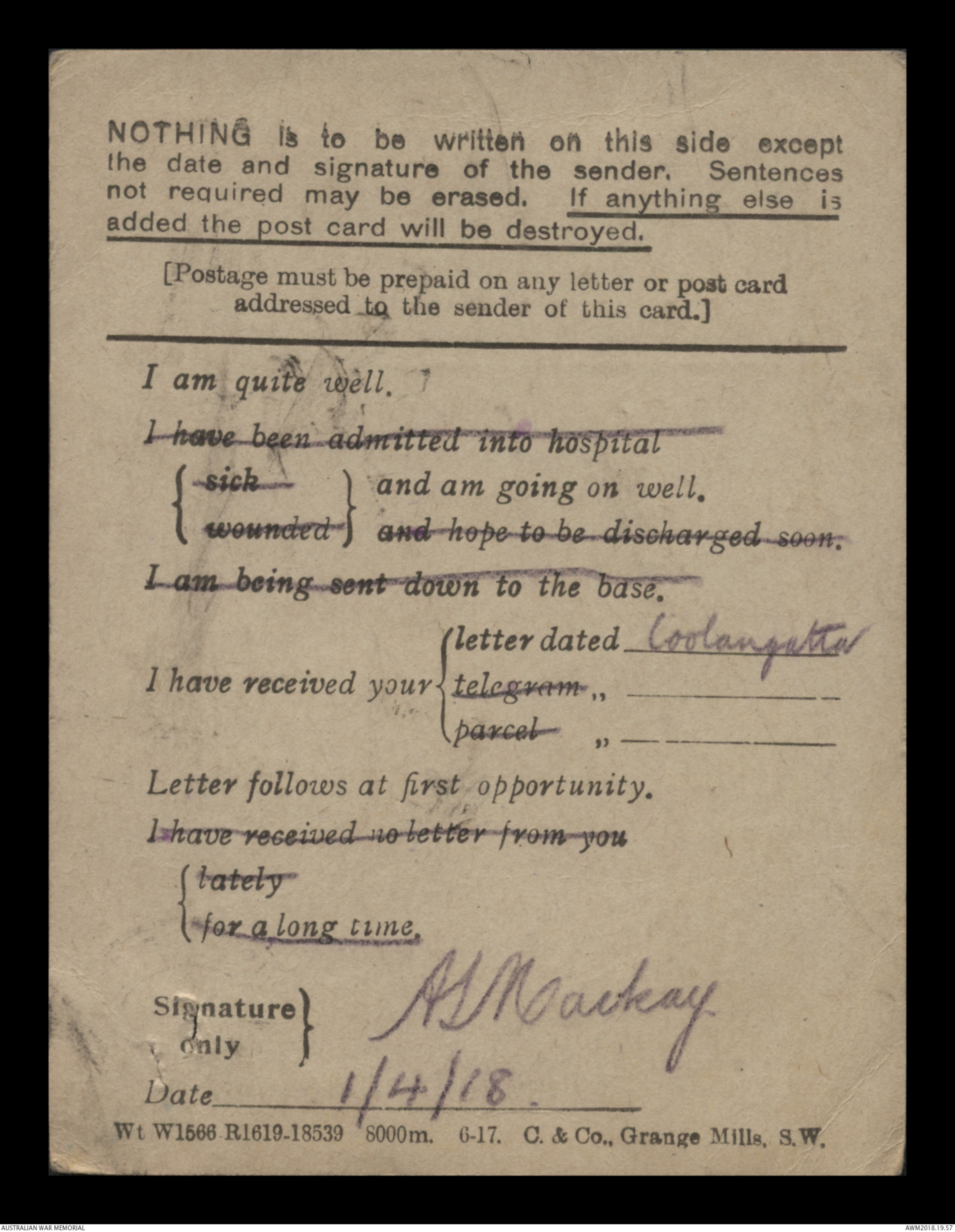 Letters from Alexander Sutherland Mackay to his Family, 1918 - Part 4