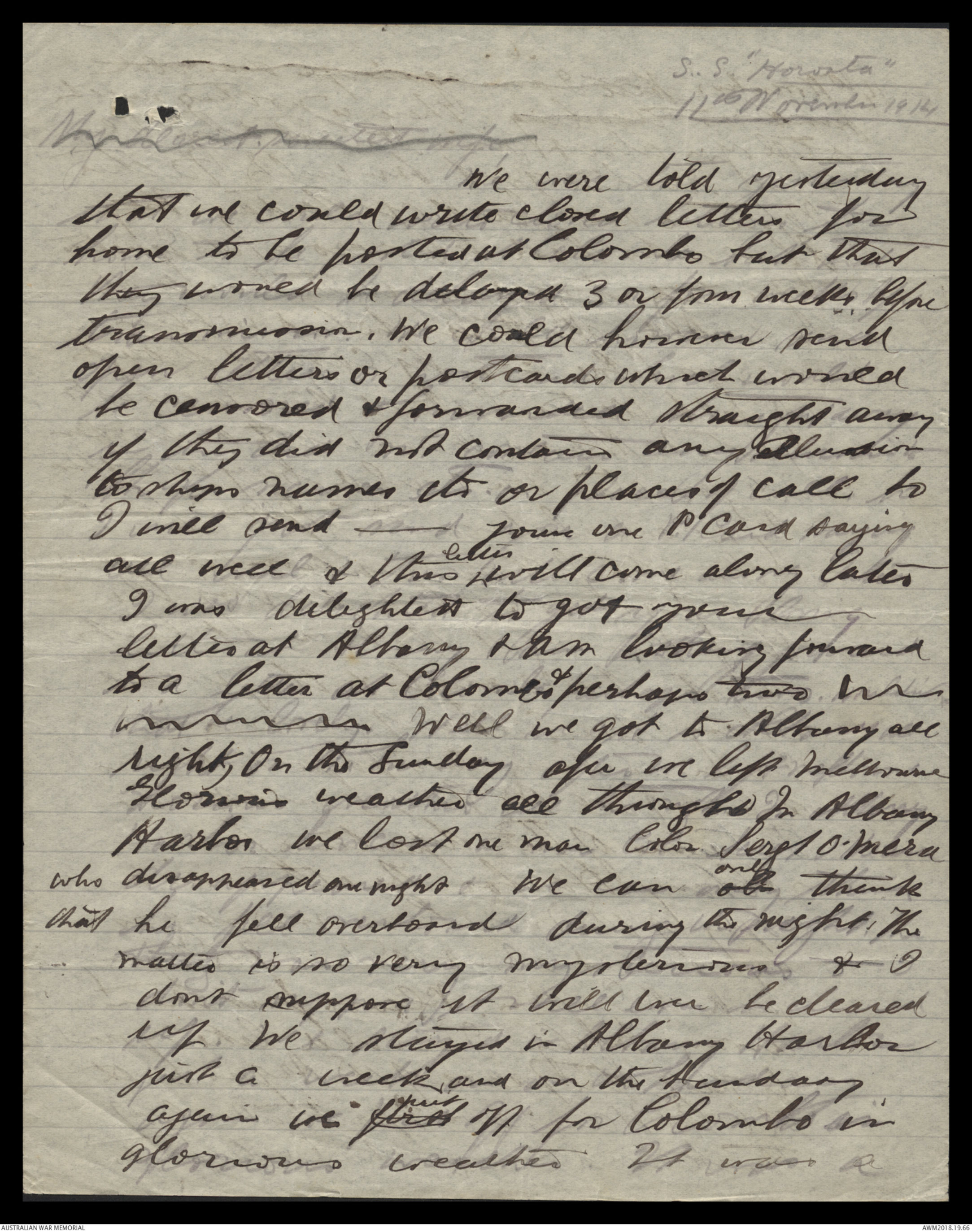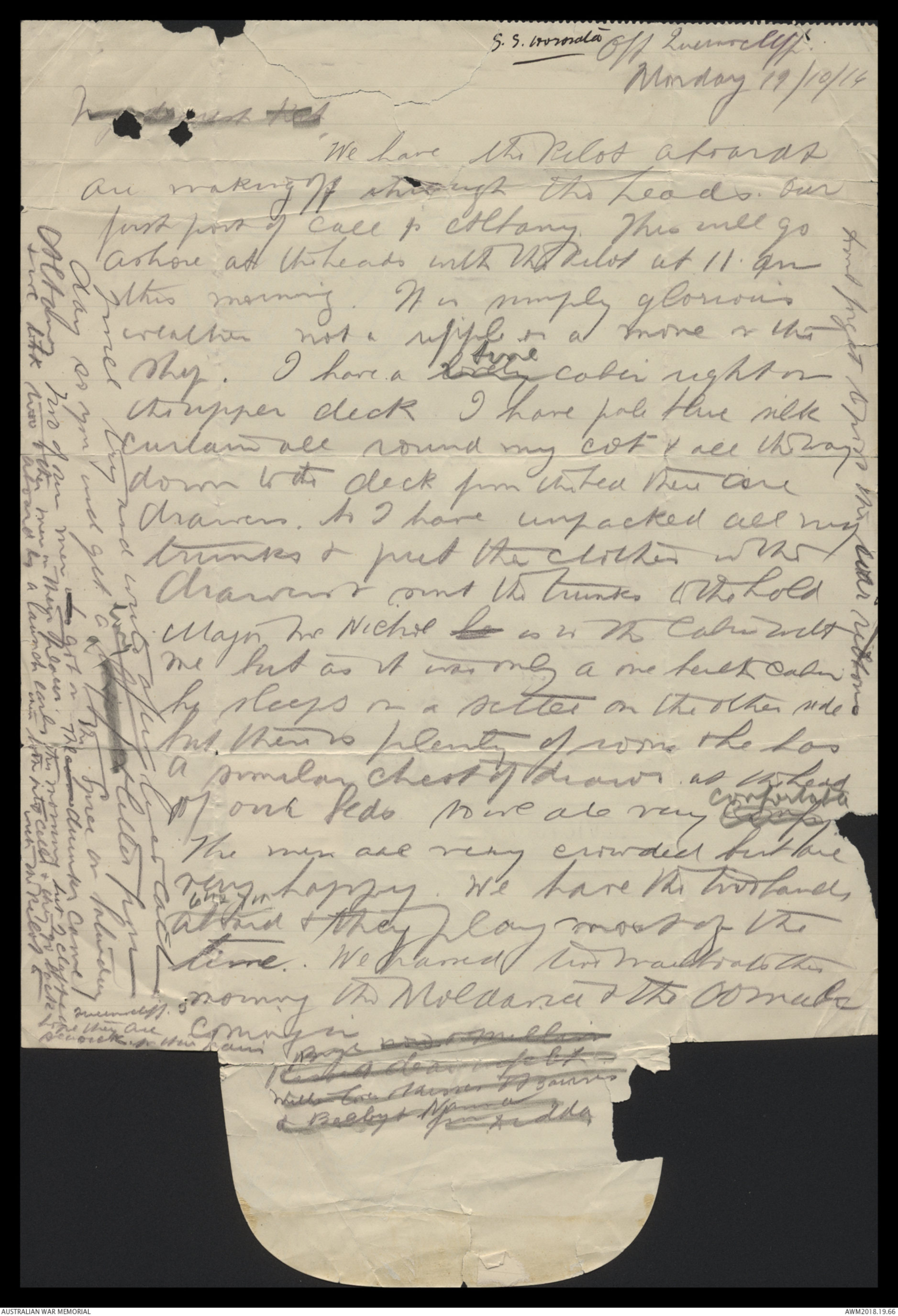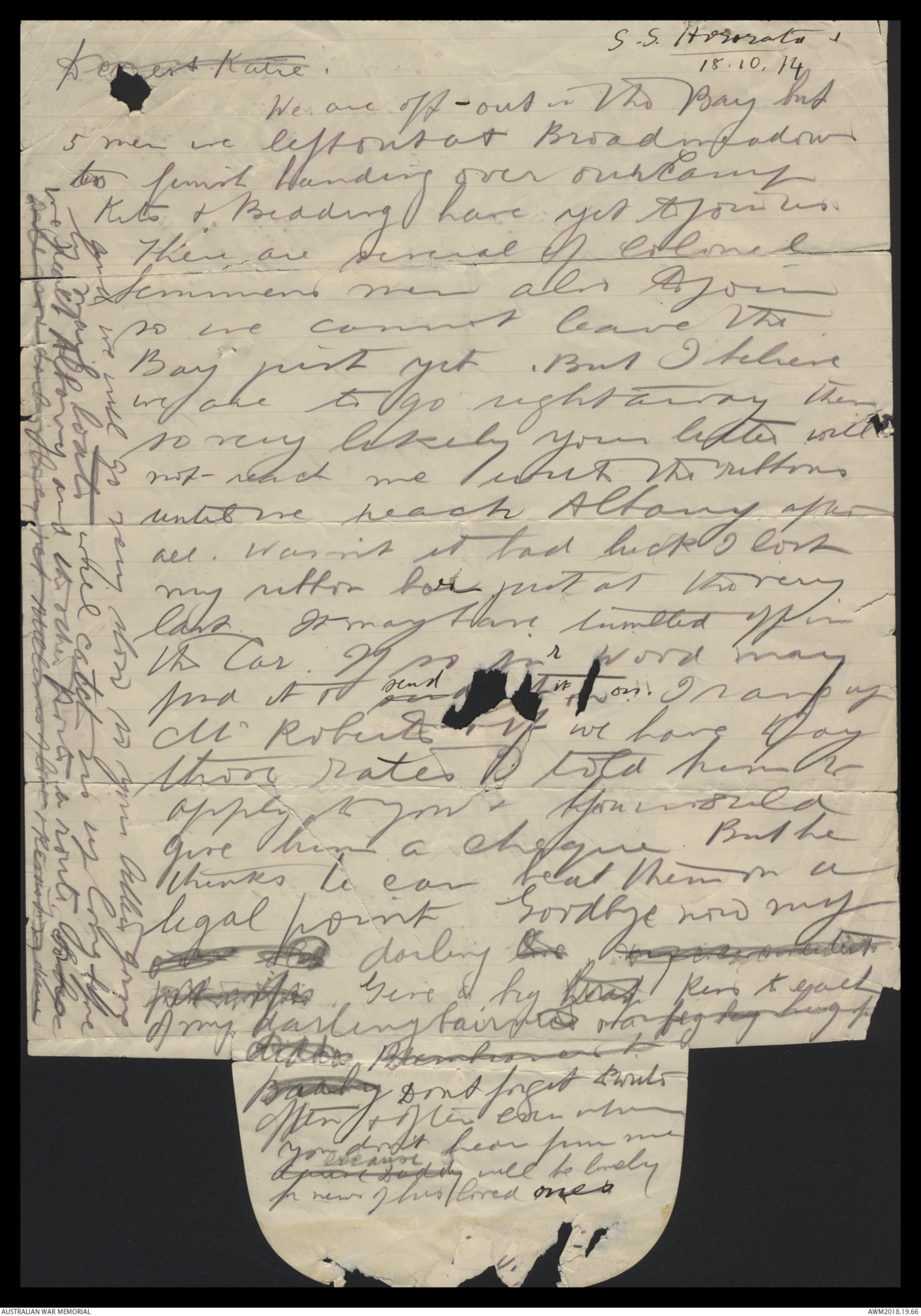 Letters from Harold Edward 'Pompey' Elliott to his wife, 1914 - Part 1
