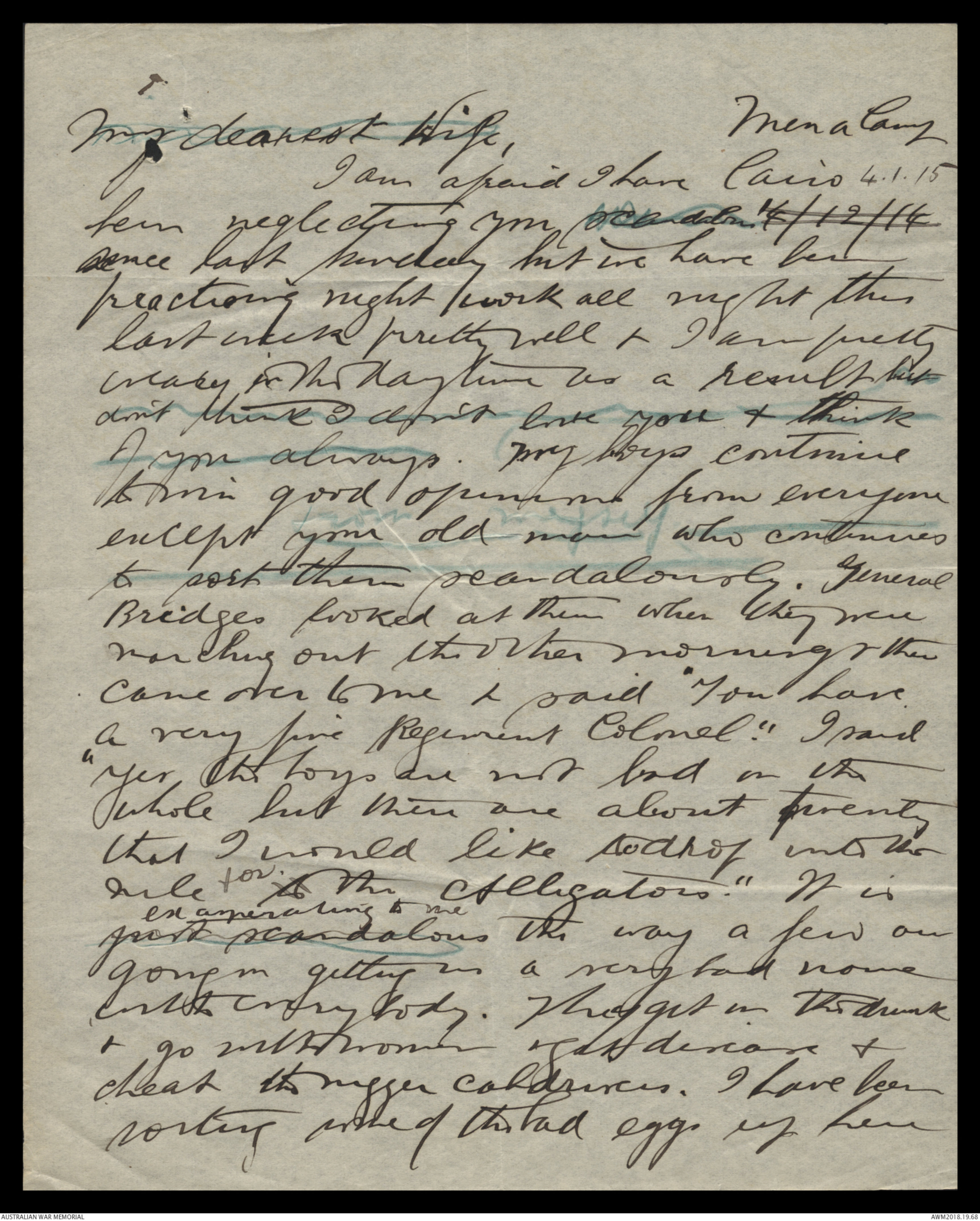Letters from Harold Edward 'Pompey' Elliott to his family January 1915 - May 1915 - Part 1