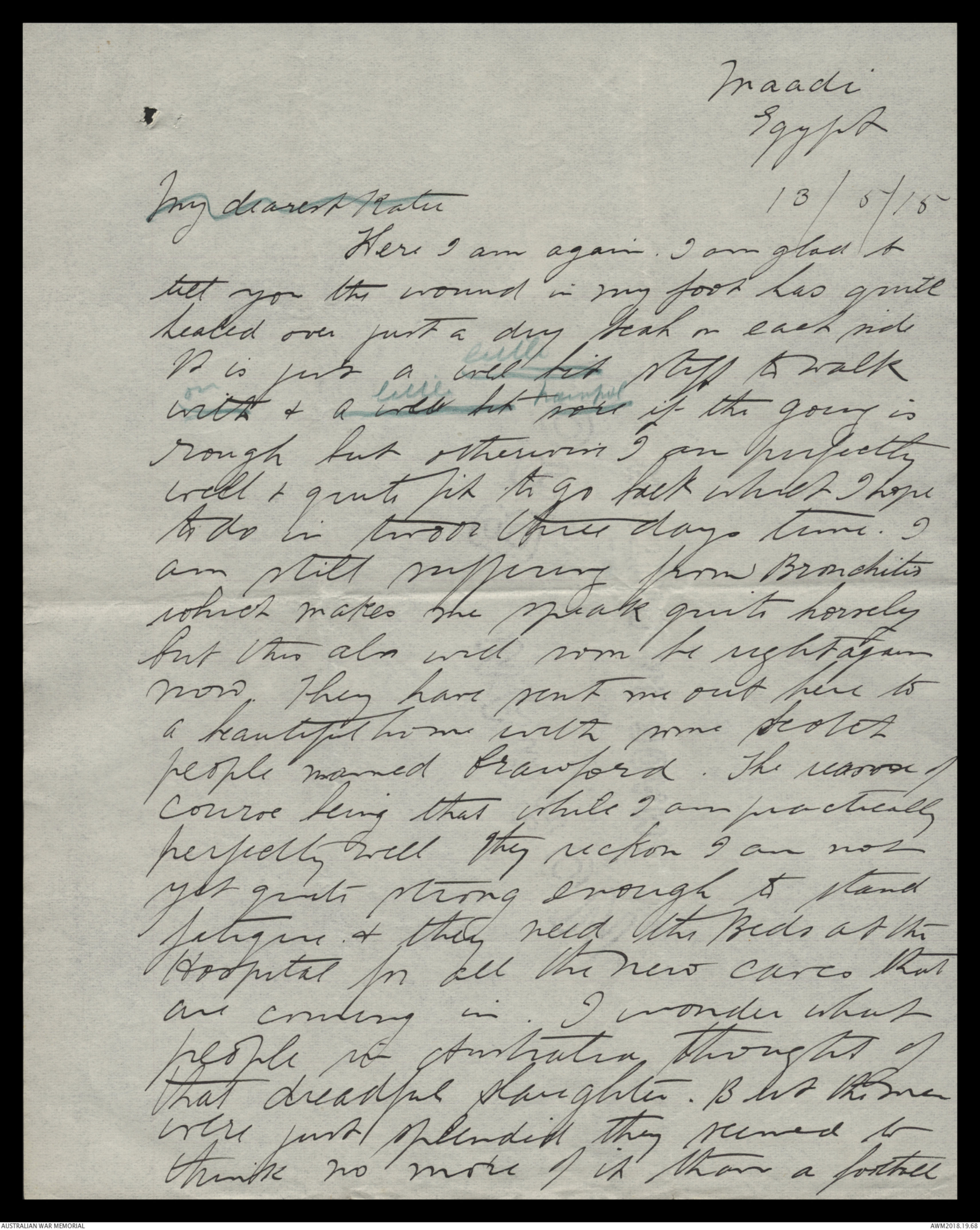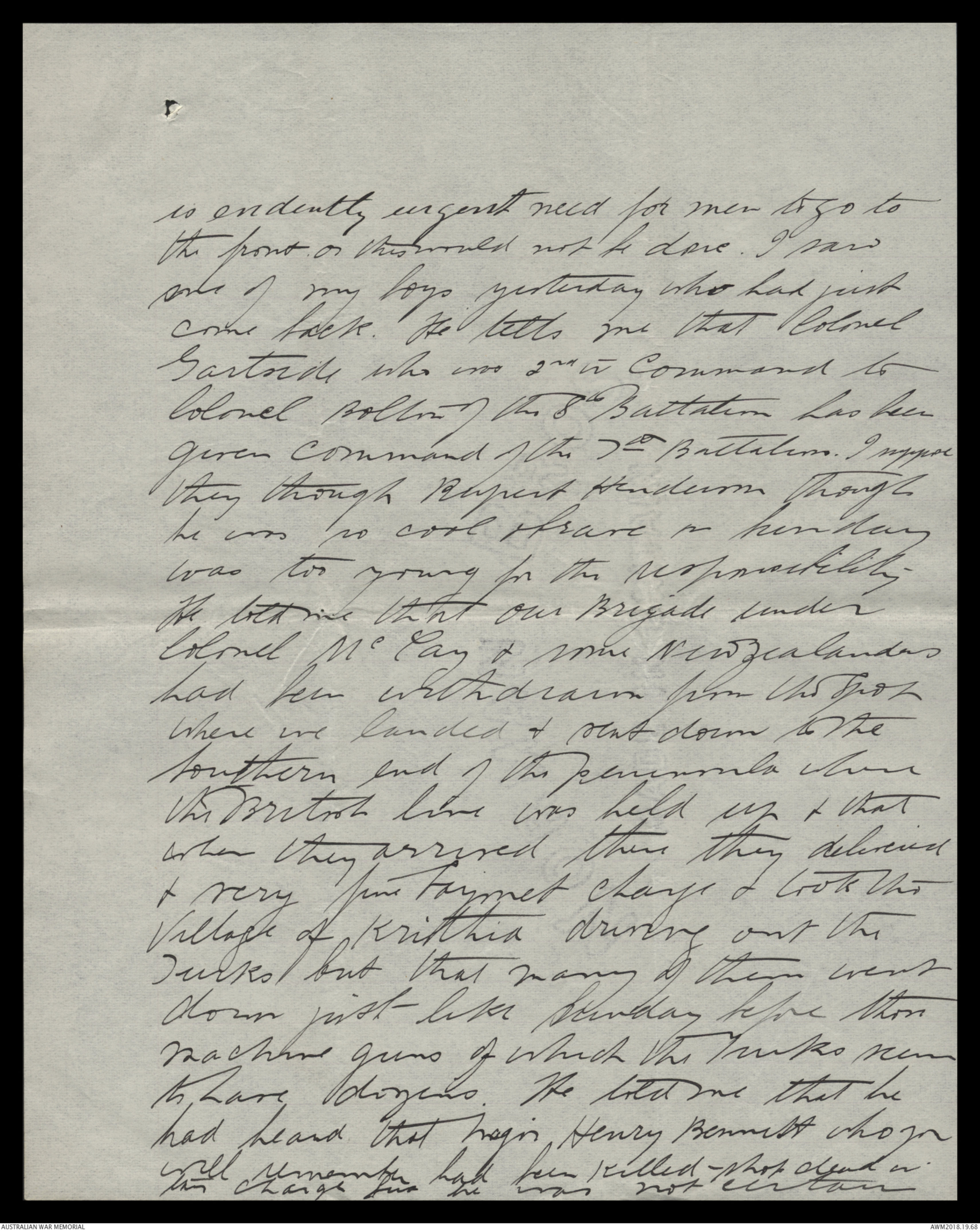 Letters from Harold Edward 'Pompey' Elliott to his family January 1915 - May 1915 - Part 12