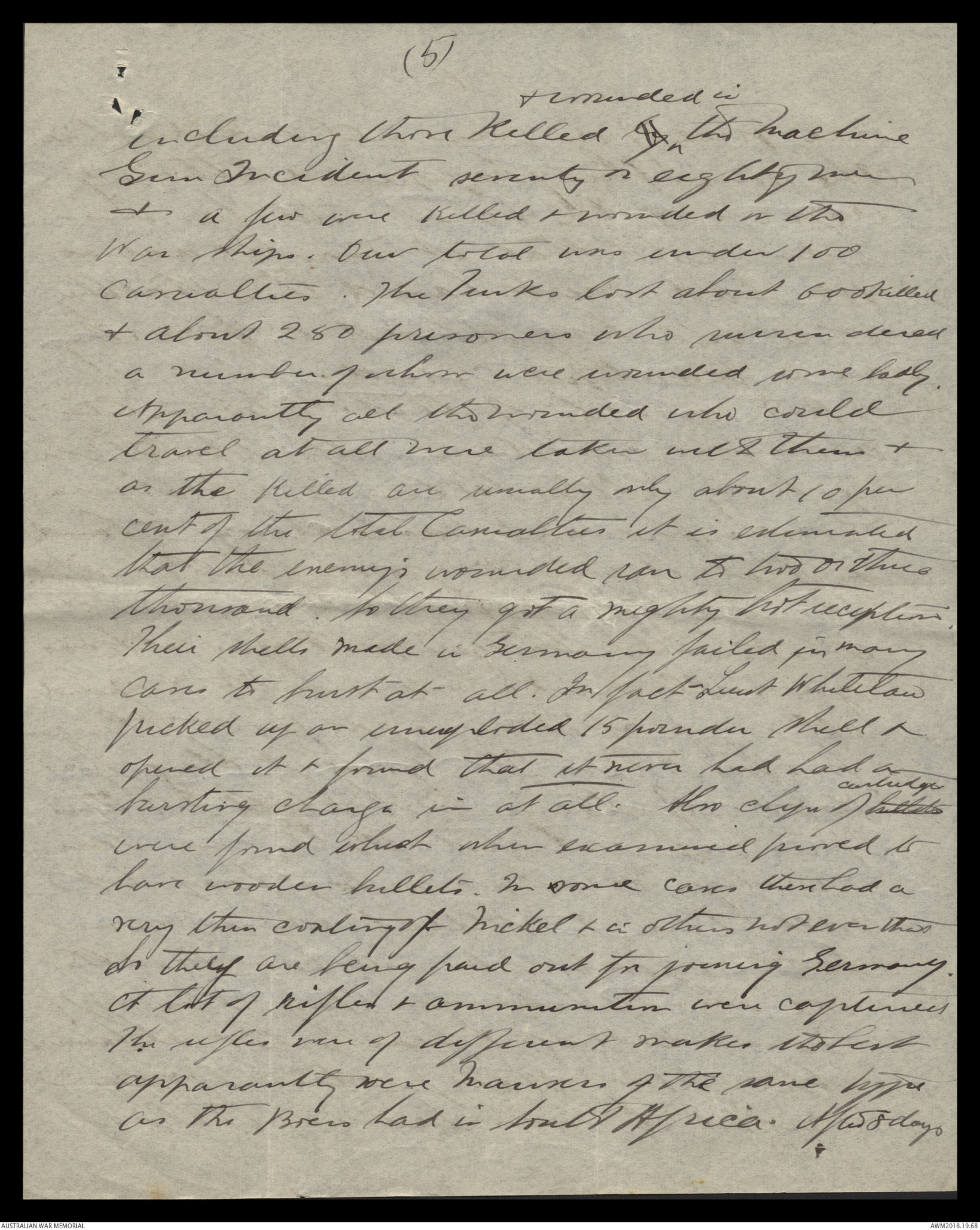 casualties. The Turks lost about 600 killed