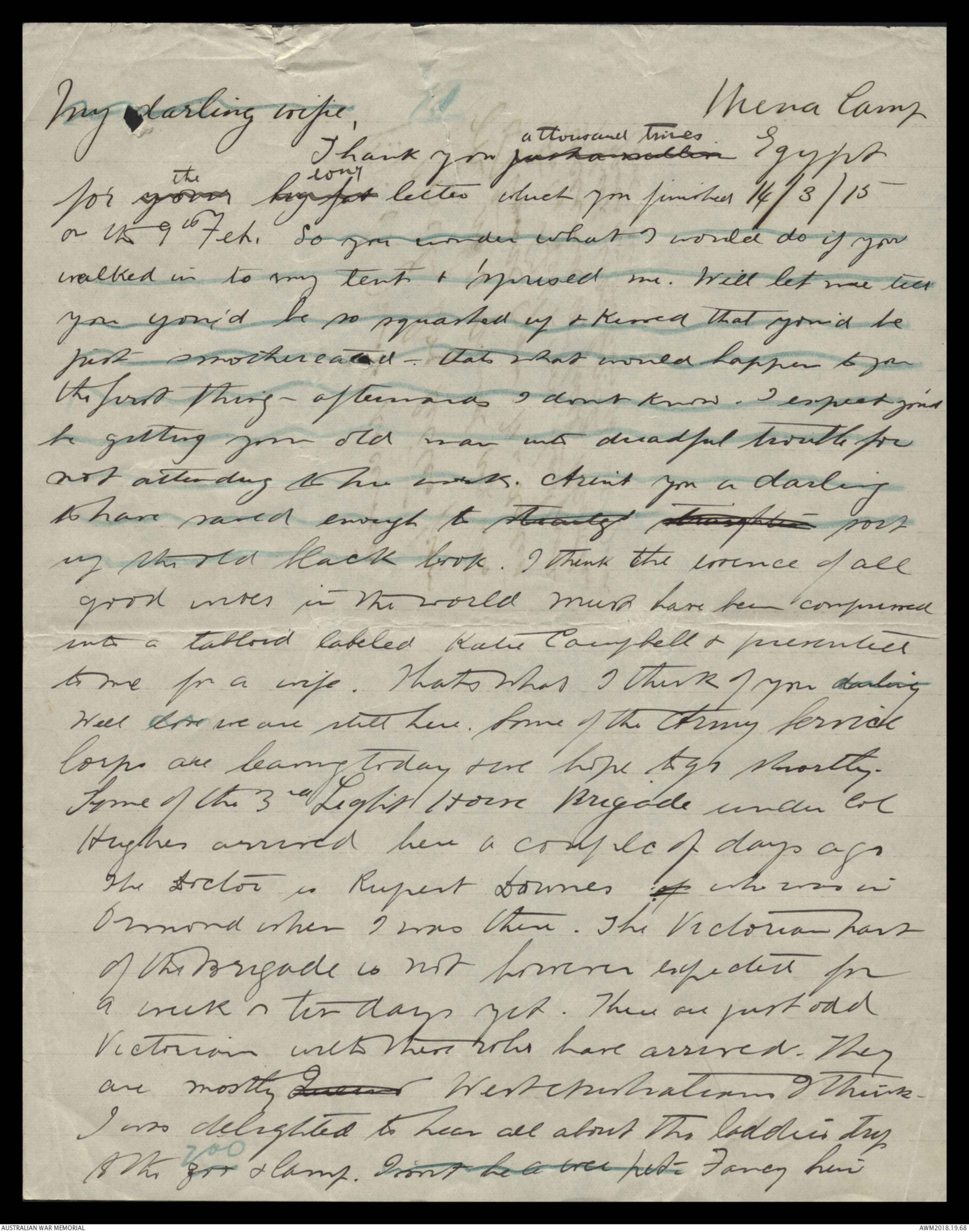 Letters from Harold Edward 'Pompey' Elliott to his family January 1915 - May 1915 - Part 7