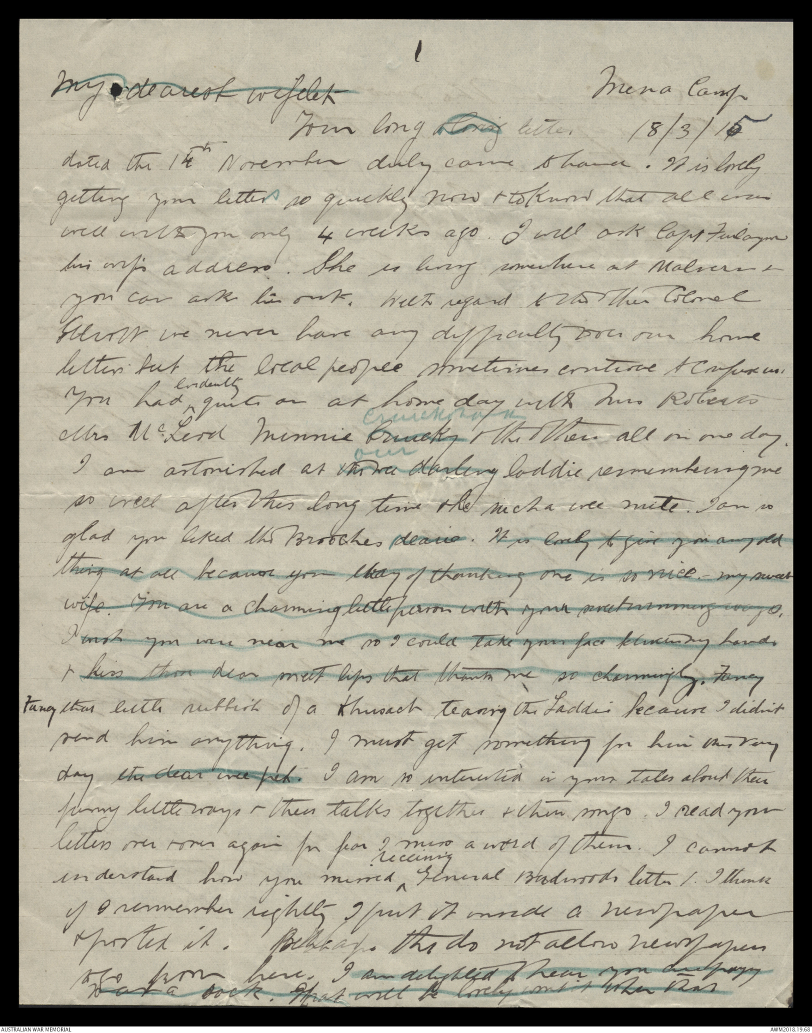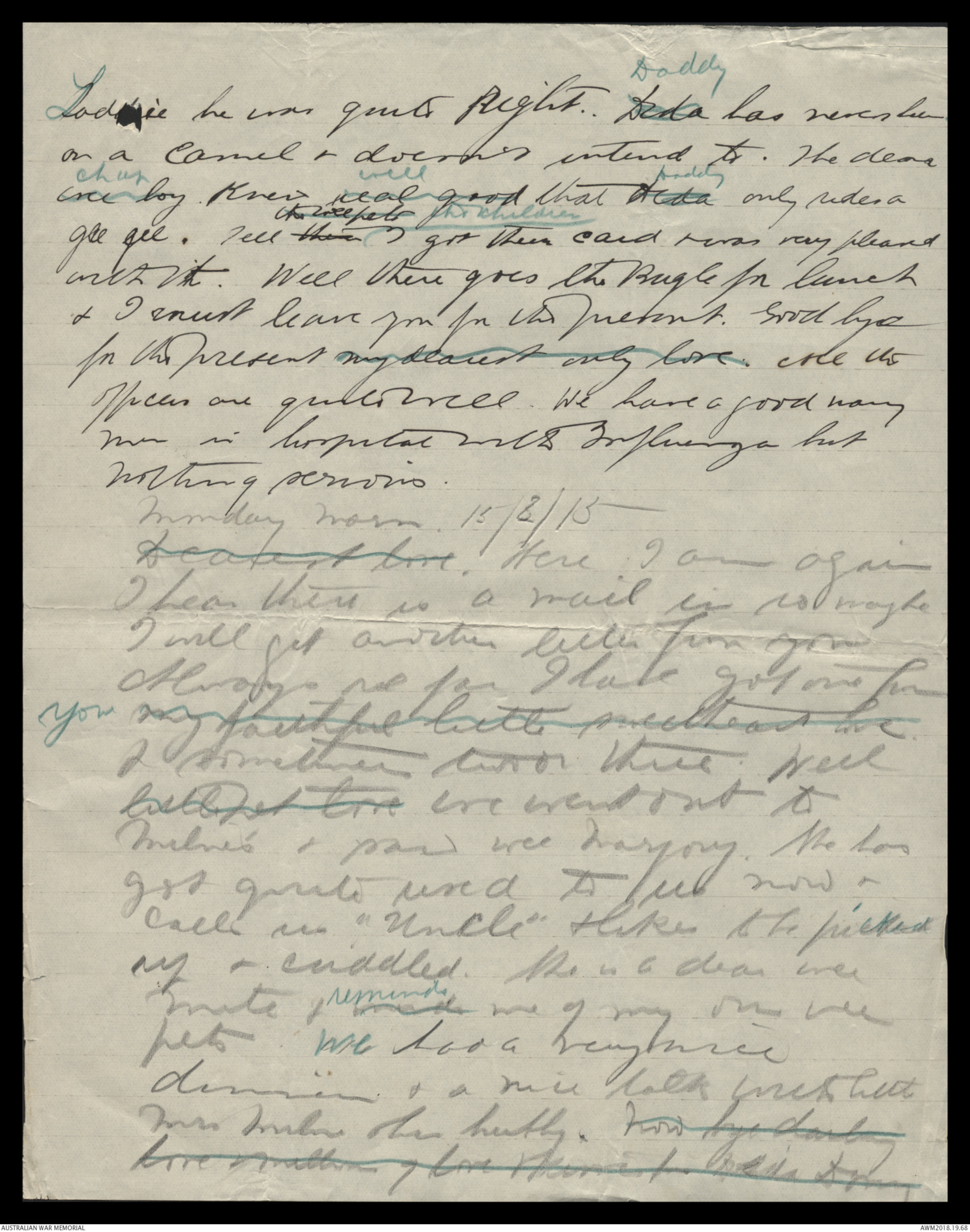 Monday morn. 15/3/15Dearest love Here I am again