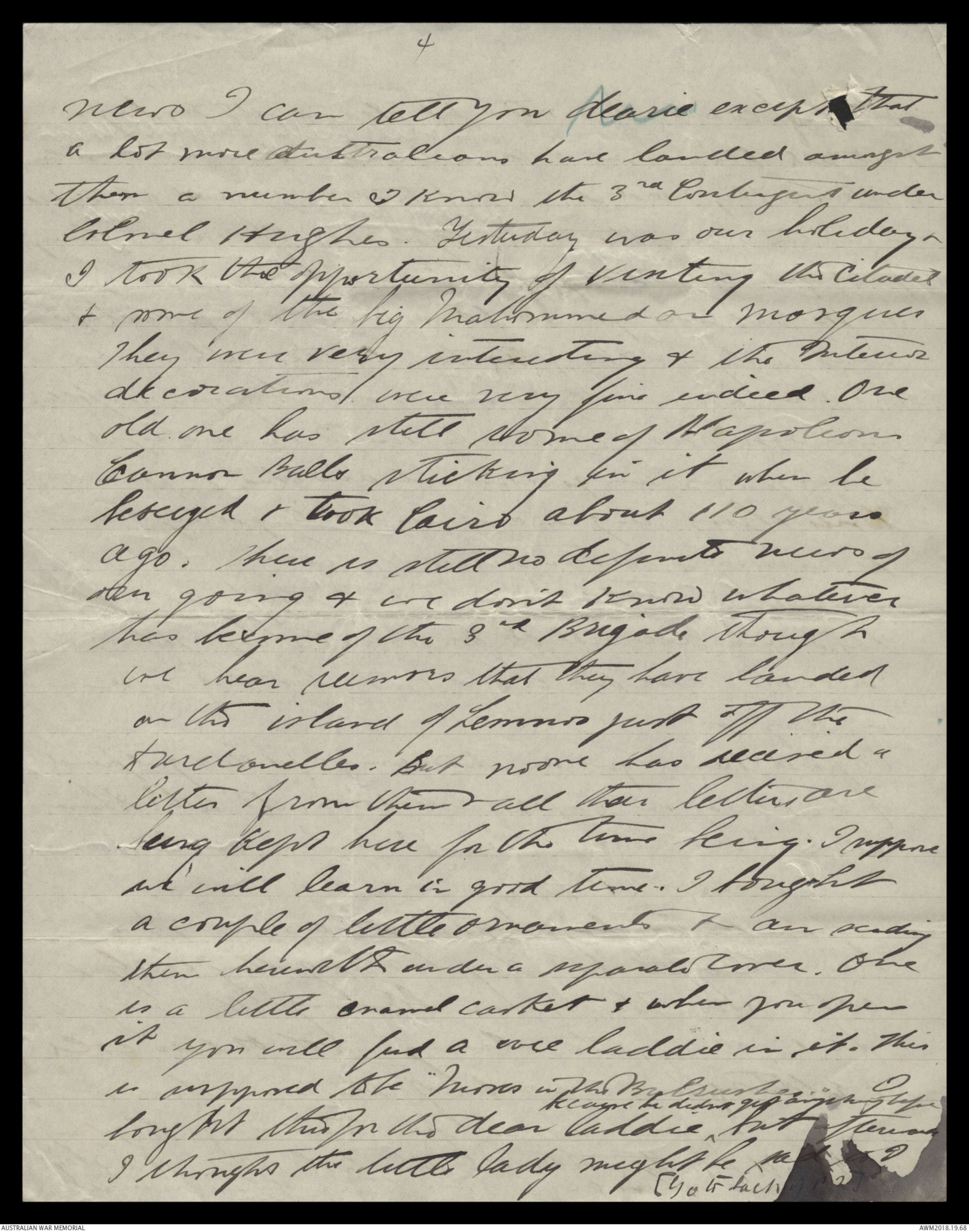 Letters from Harold Edward 'Pompey' Elliott to his family January 1915 - May 1915 - Part 8