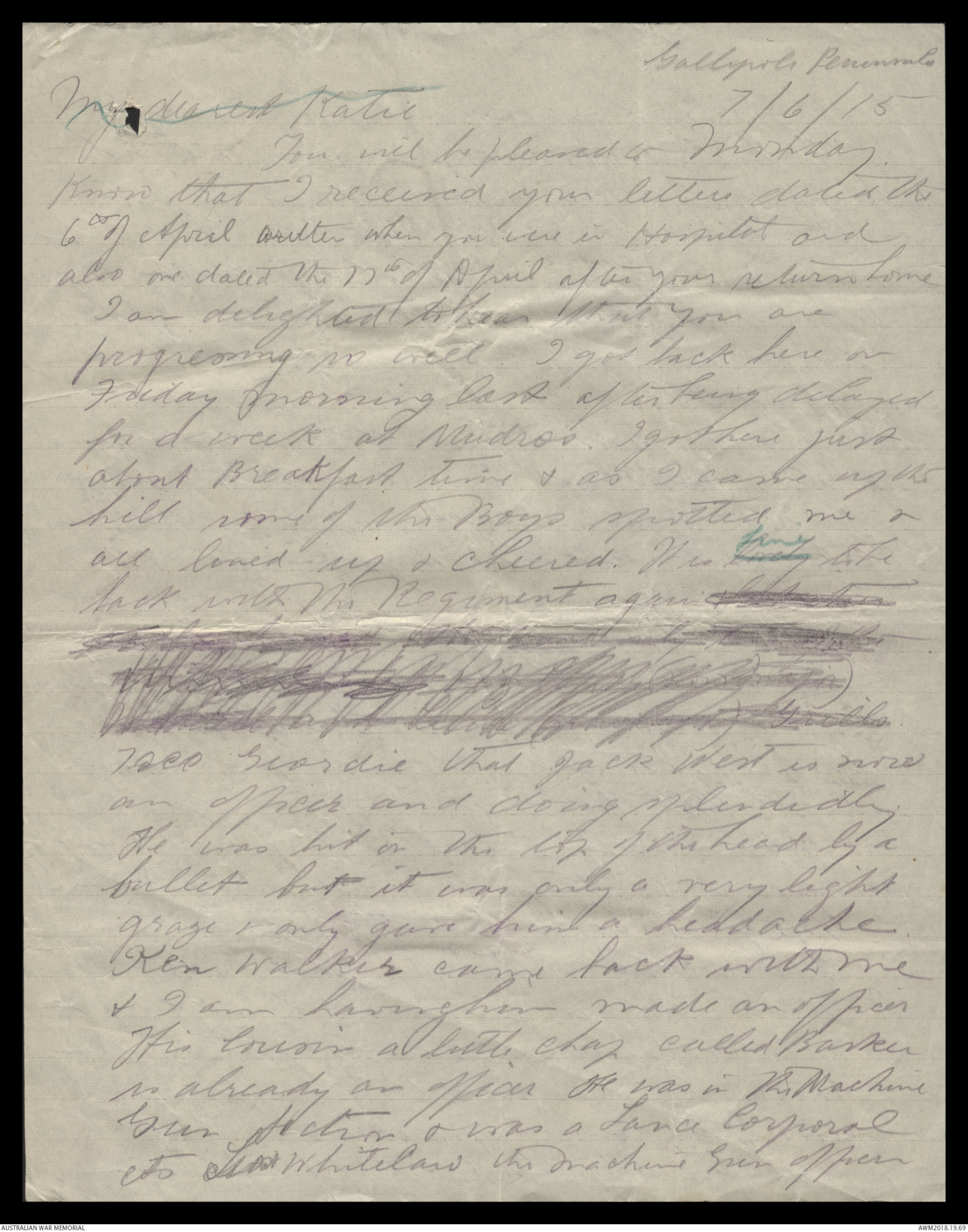 Letters from Harold Edward 'Pompey' Elliott to his family, June - December 1915 - Part 1