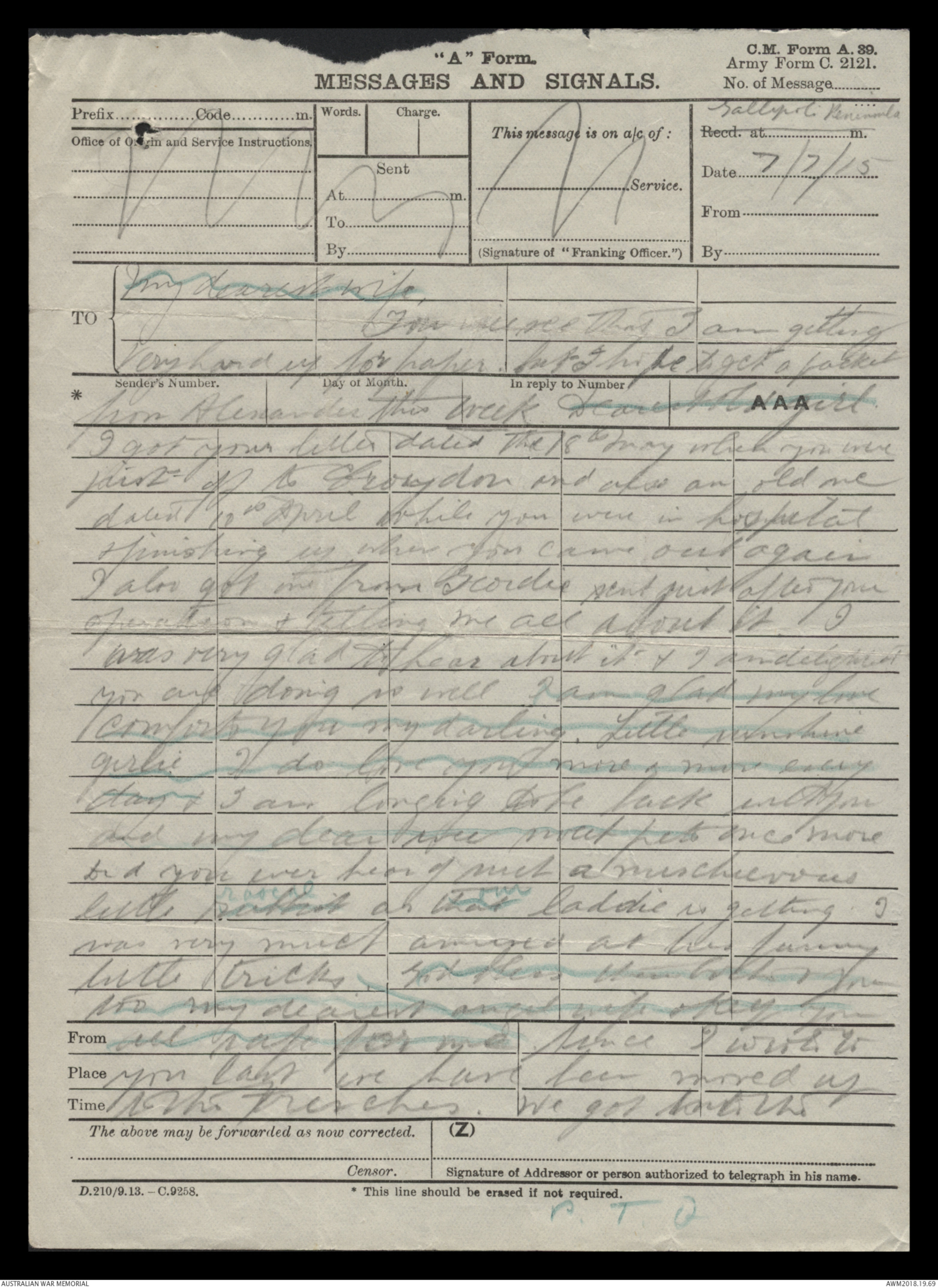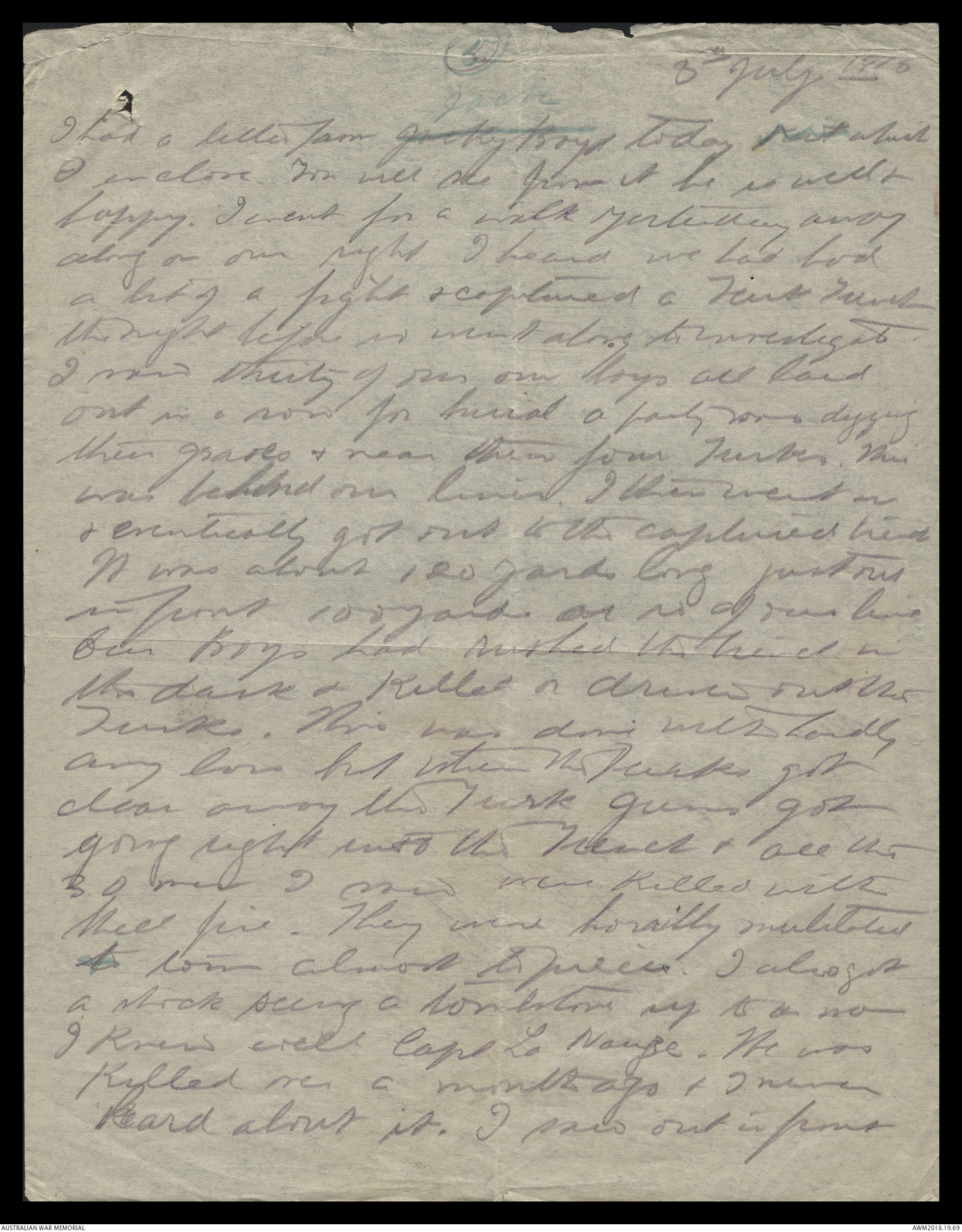 Letters from Harold Edward 'Pompey' Elliott to his family, June - December 1915 - Part 3