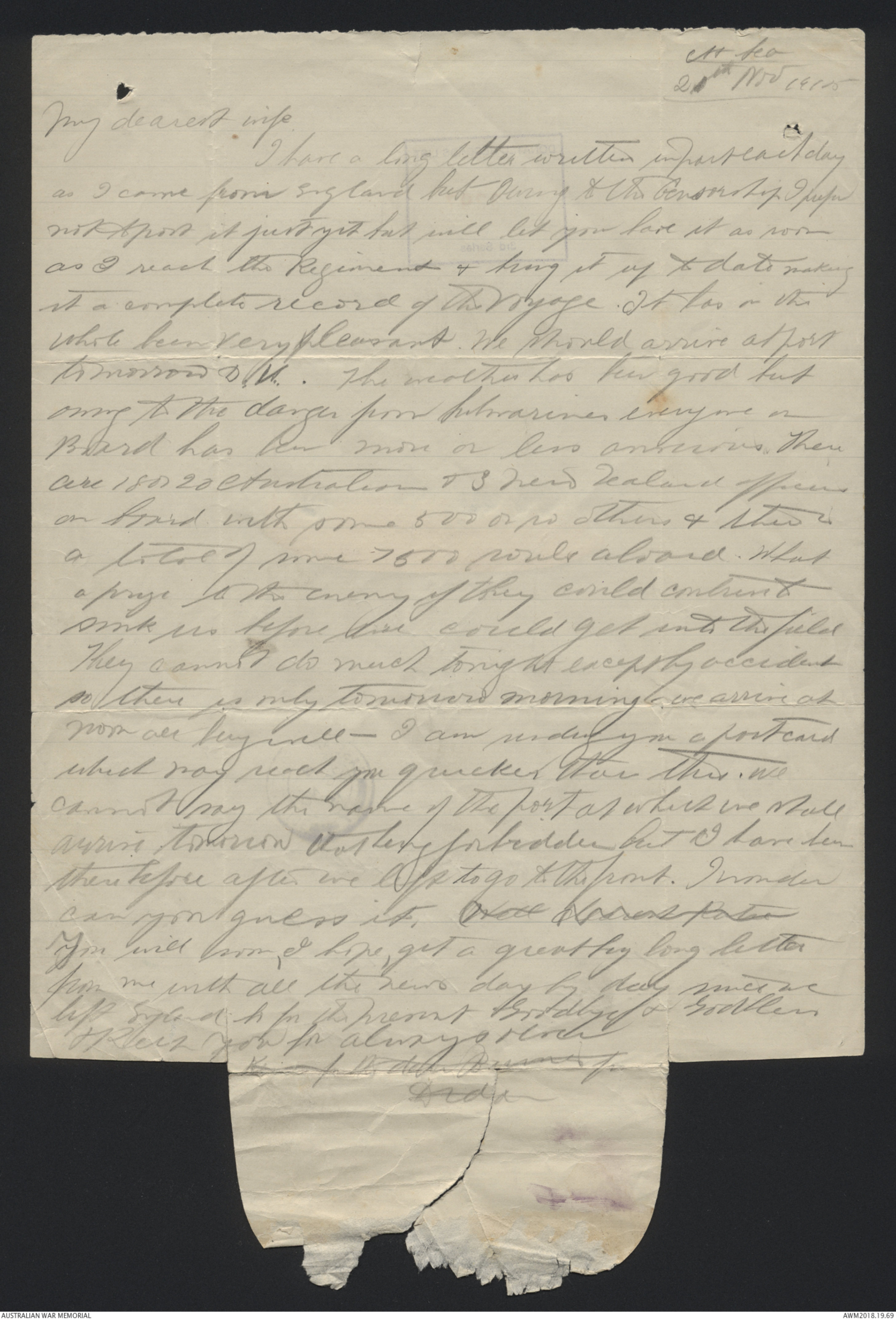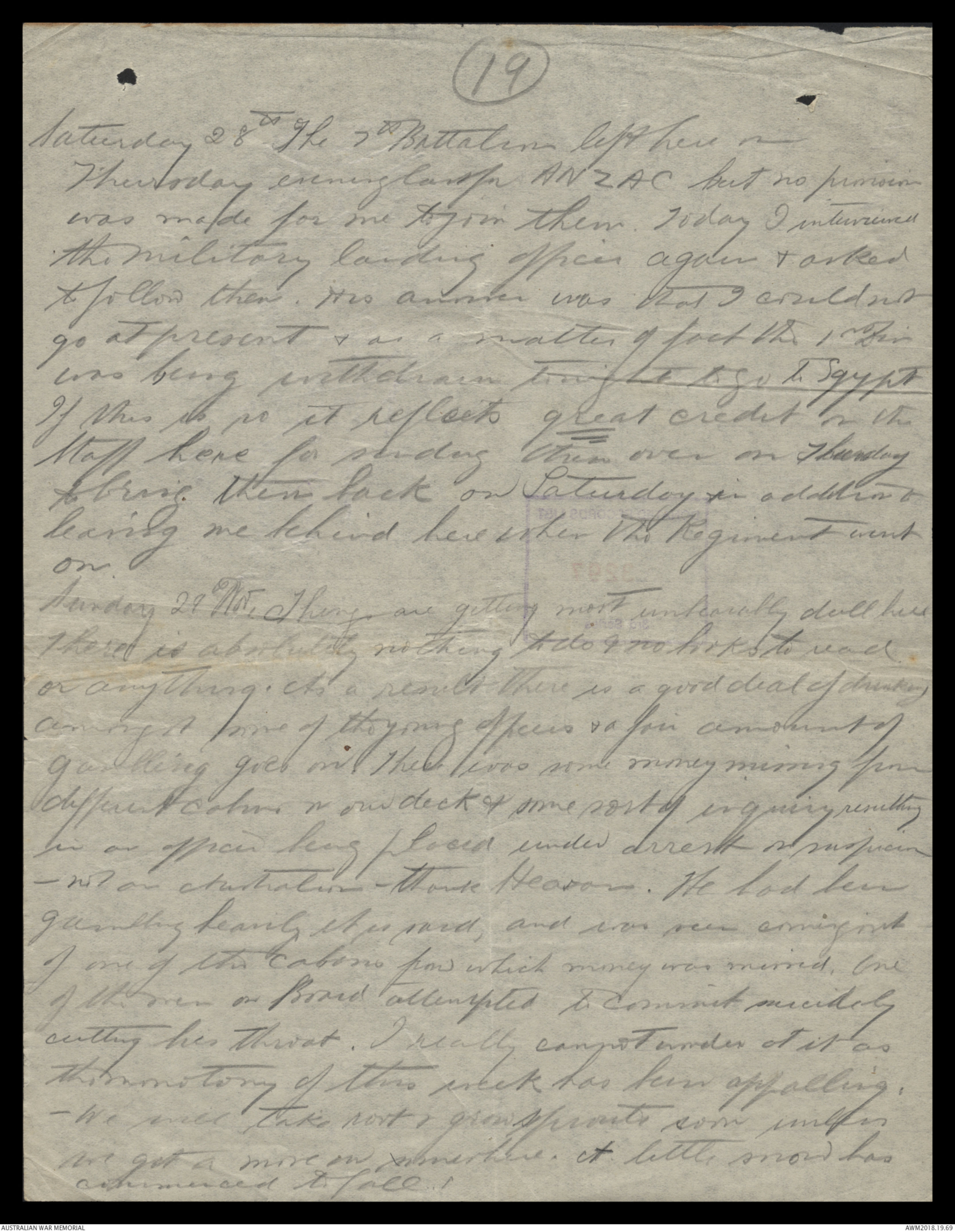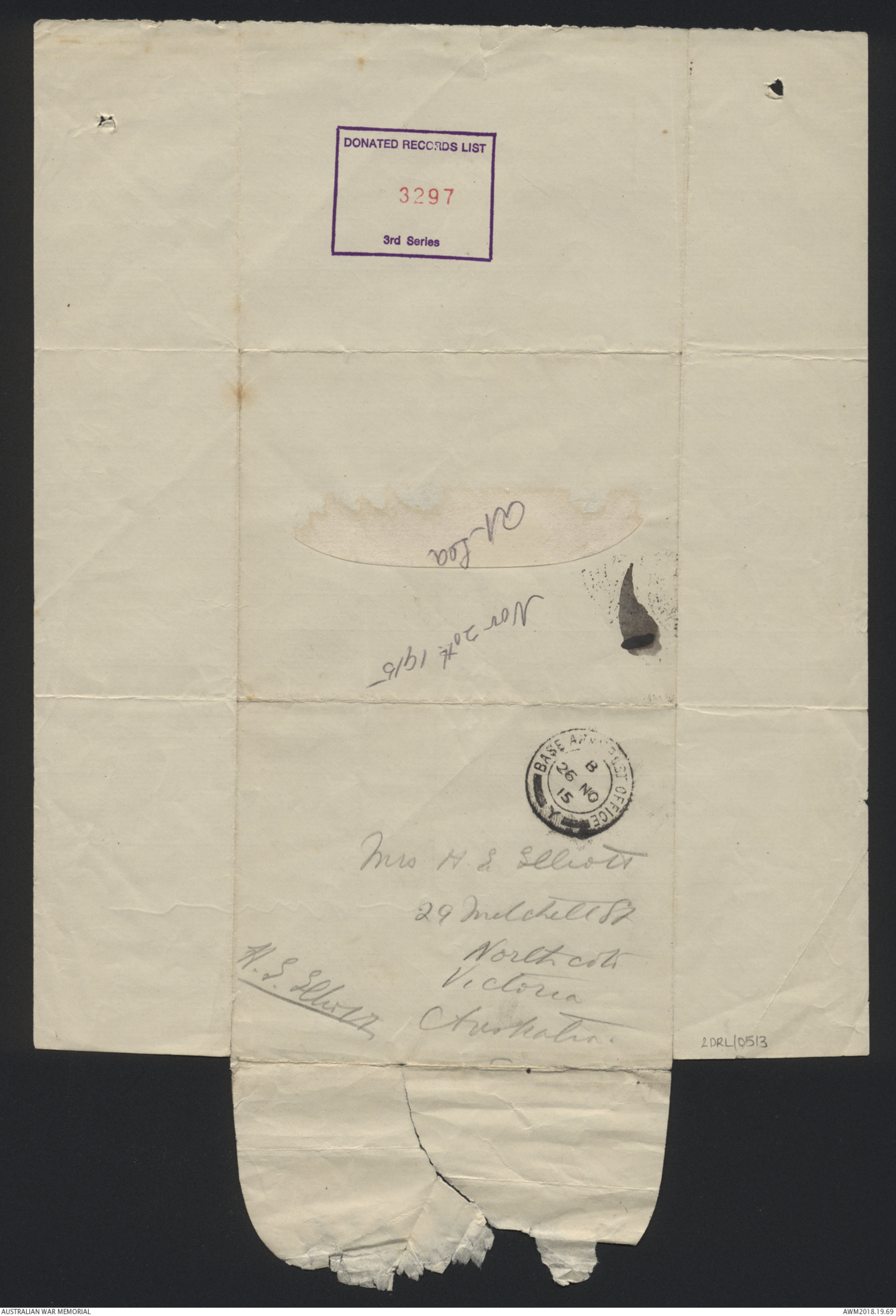 Letters from Harold Edward 'Pompey' Elliott to his family, June - December 1915 - Part 15