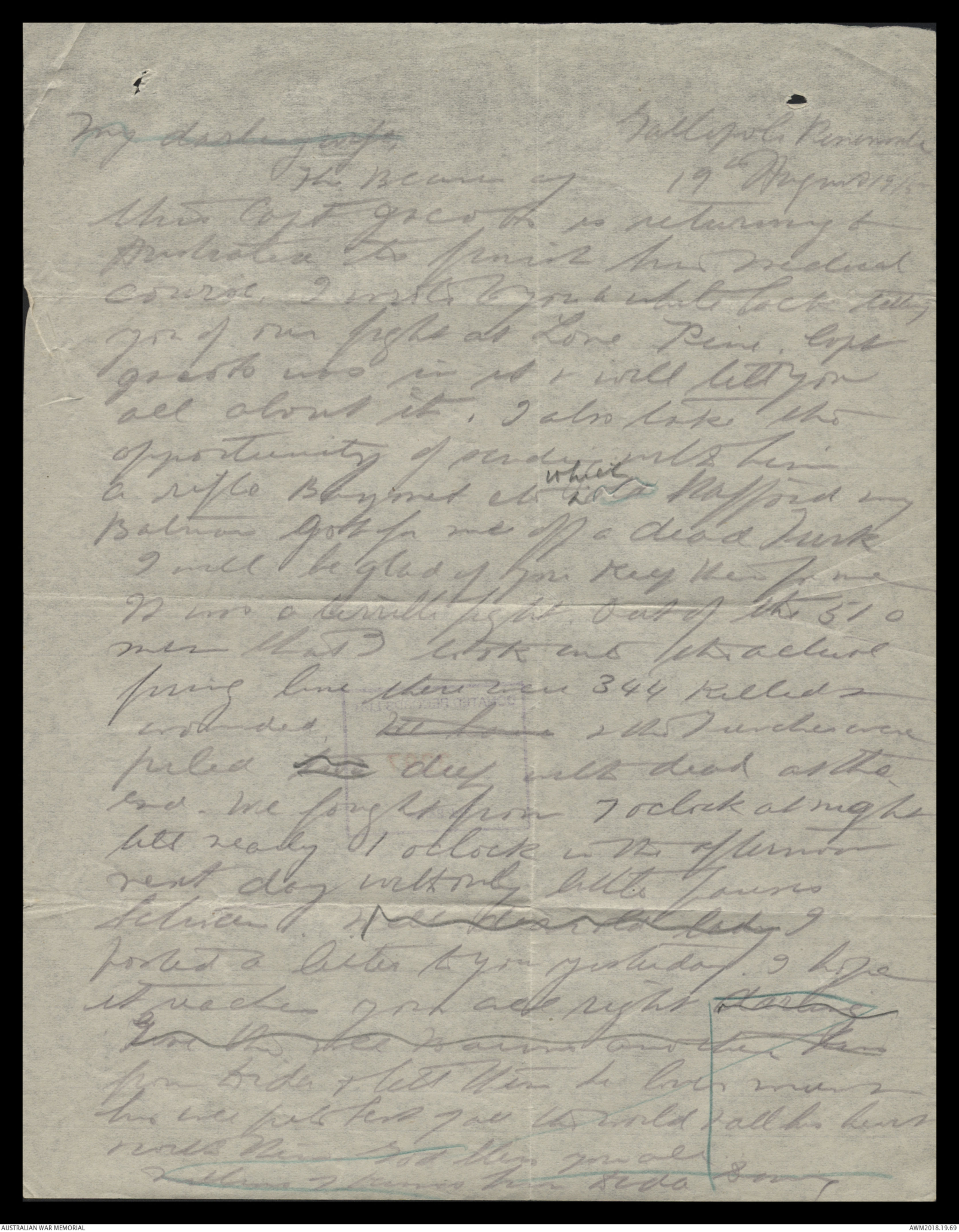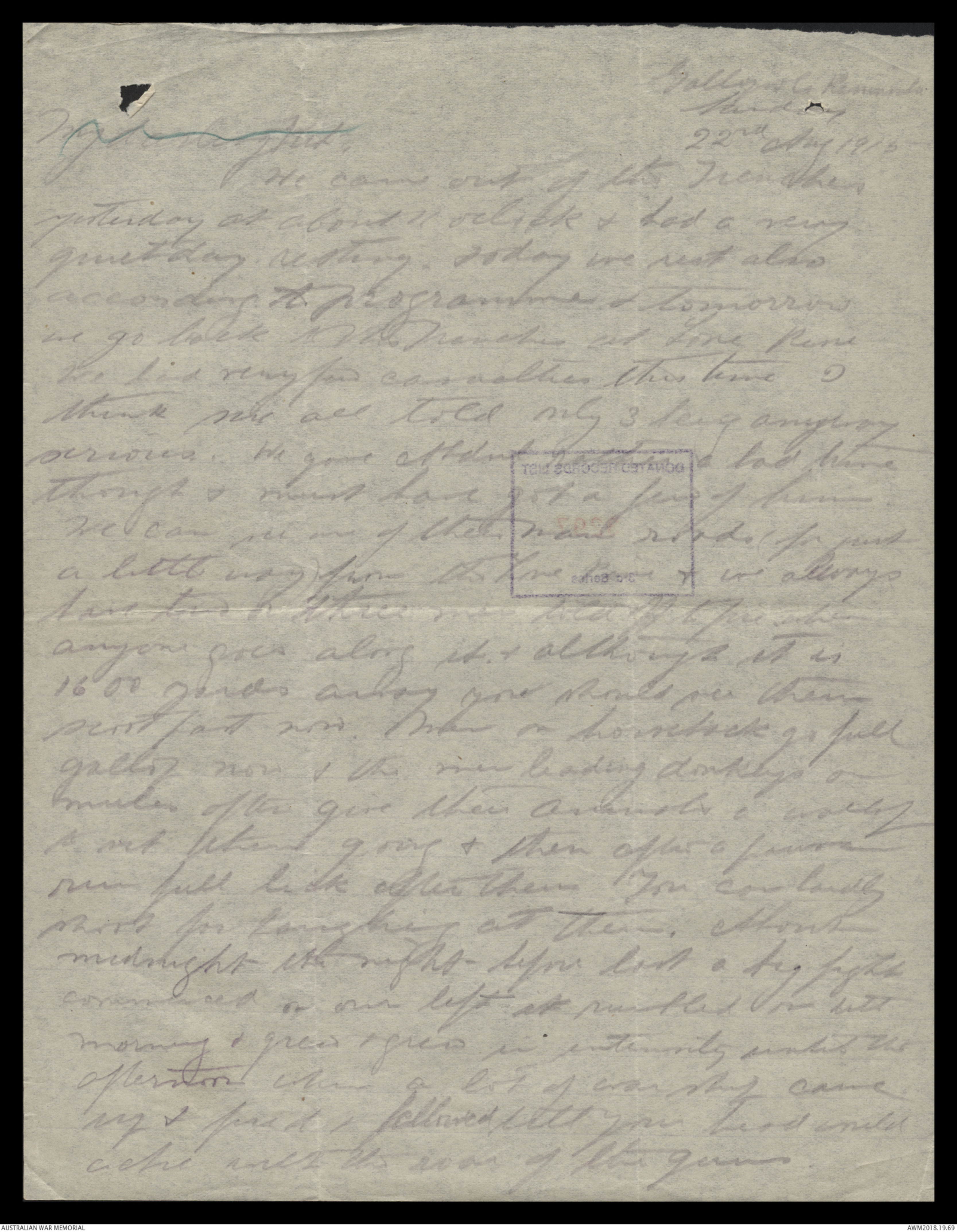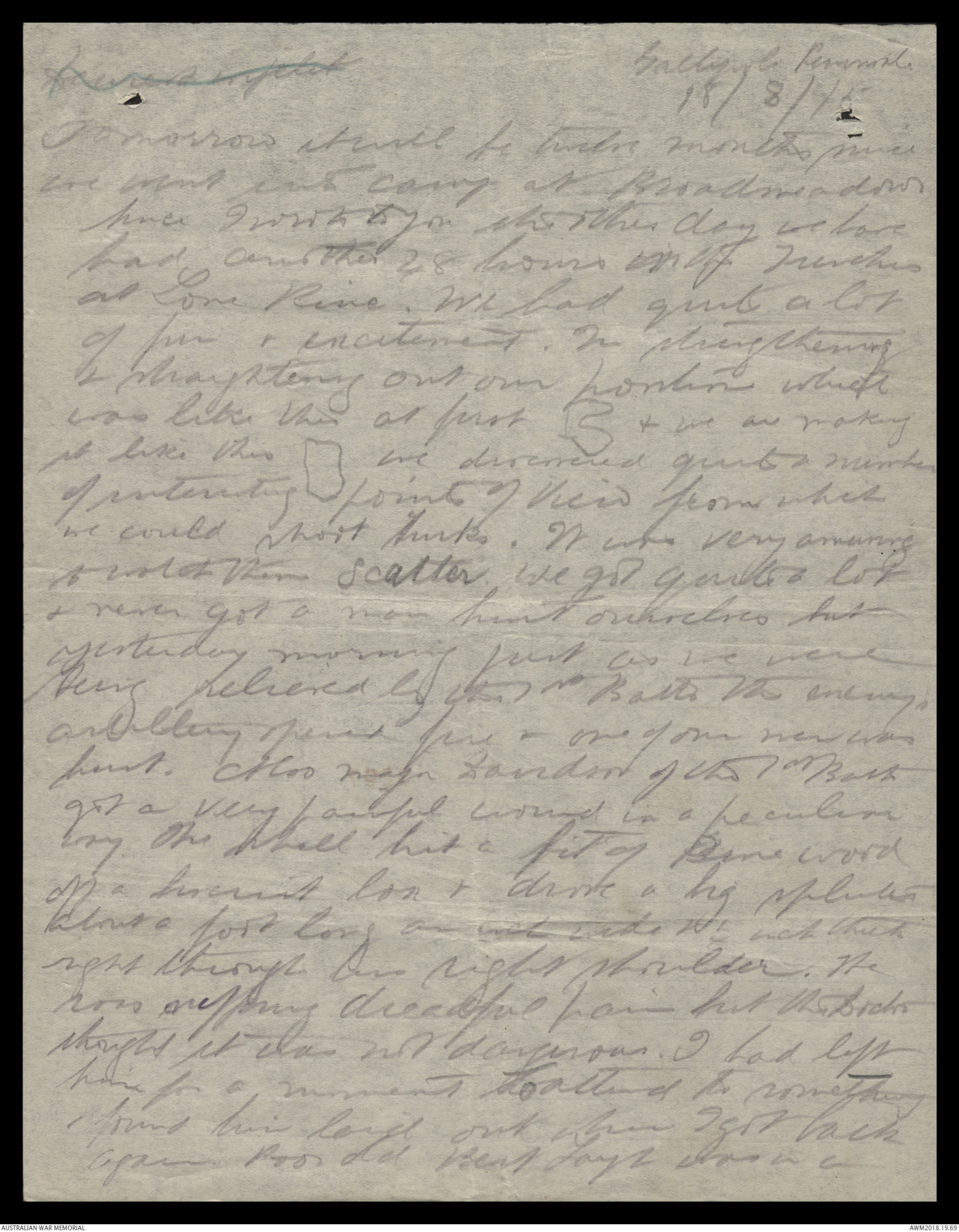 Letters from Harold Edward 'Pompey' Elliott to his family, June - December 1915 - Part 8