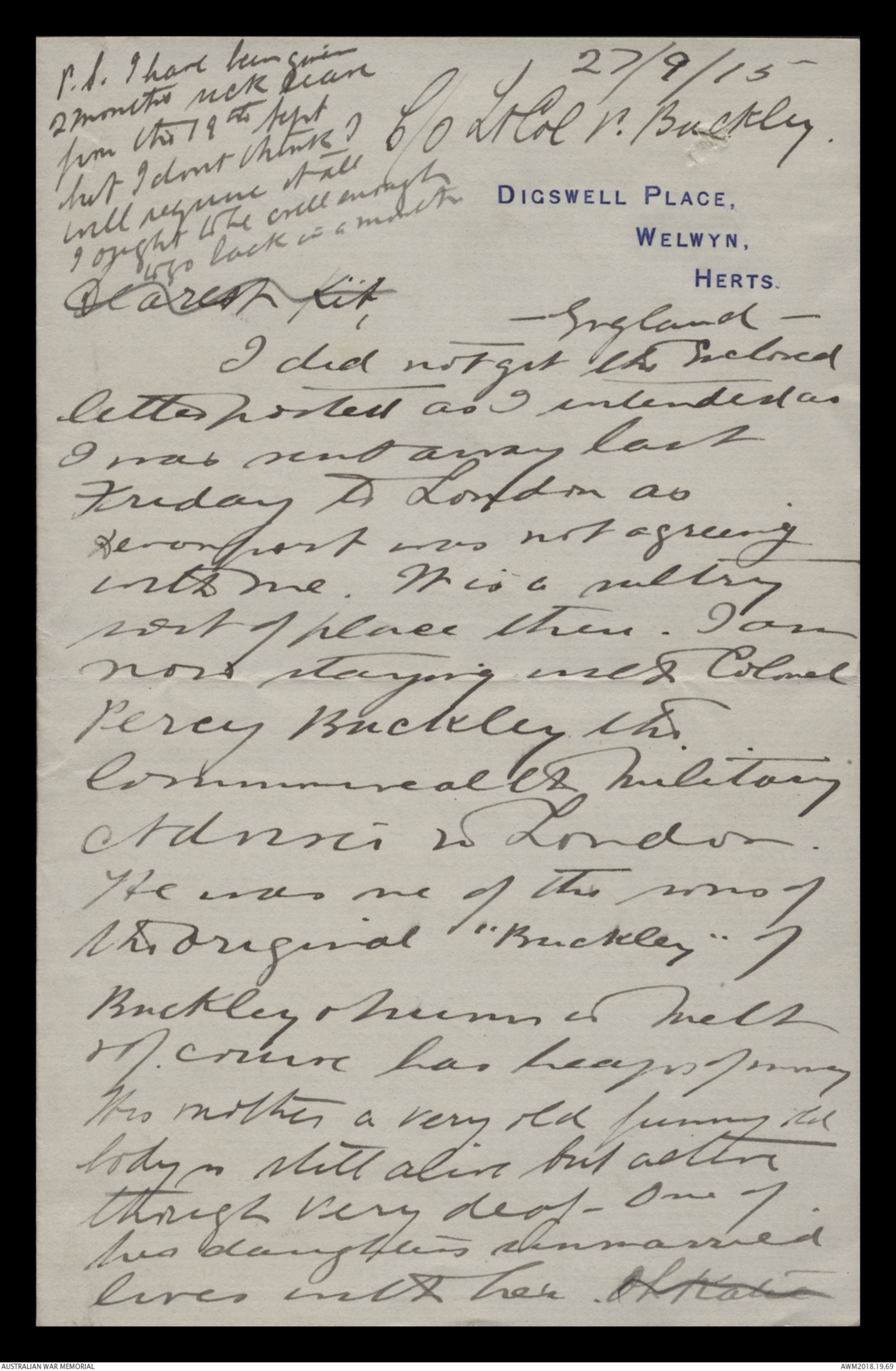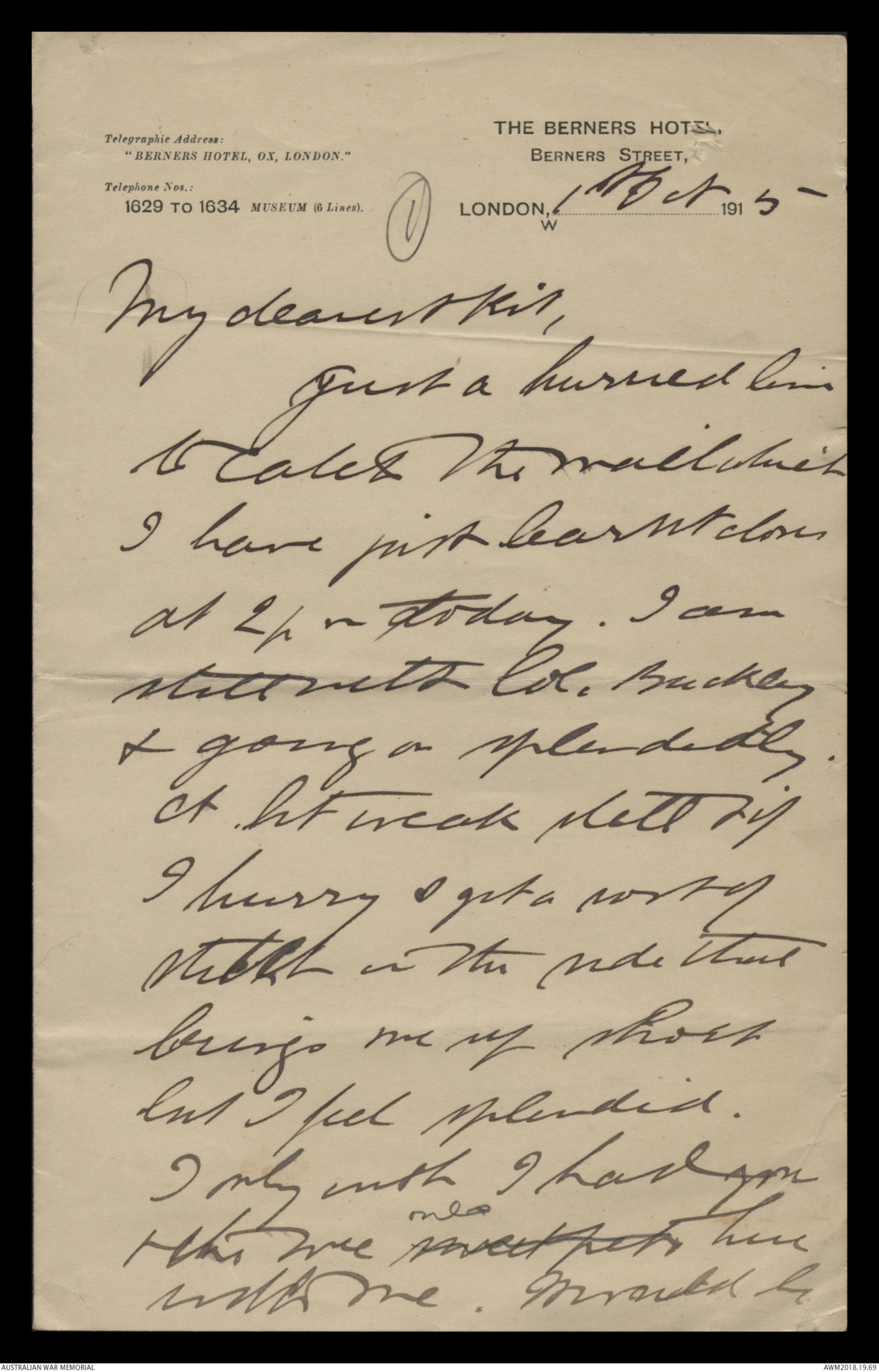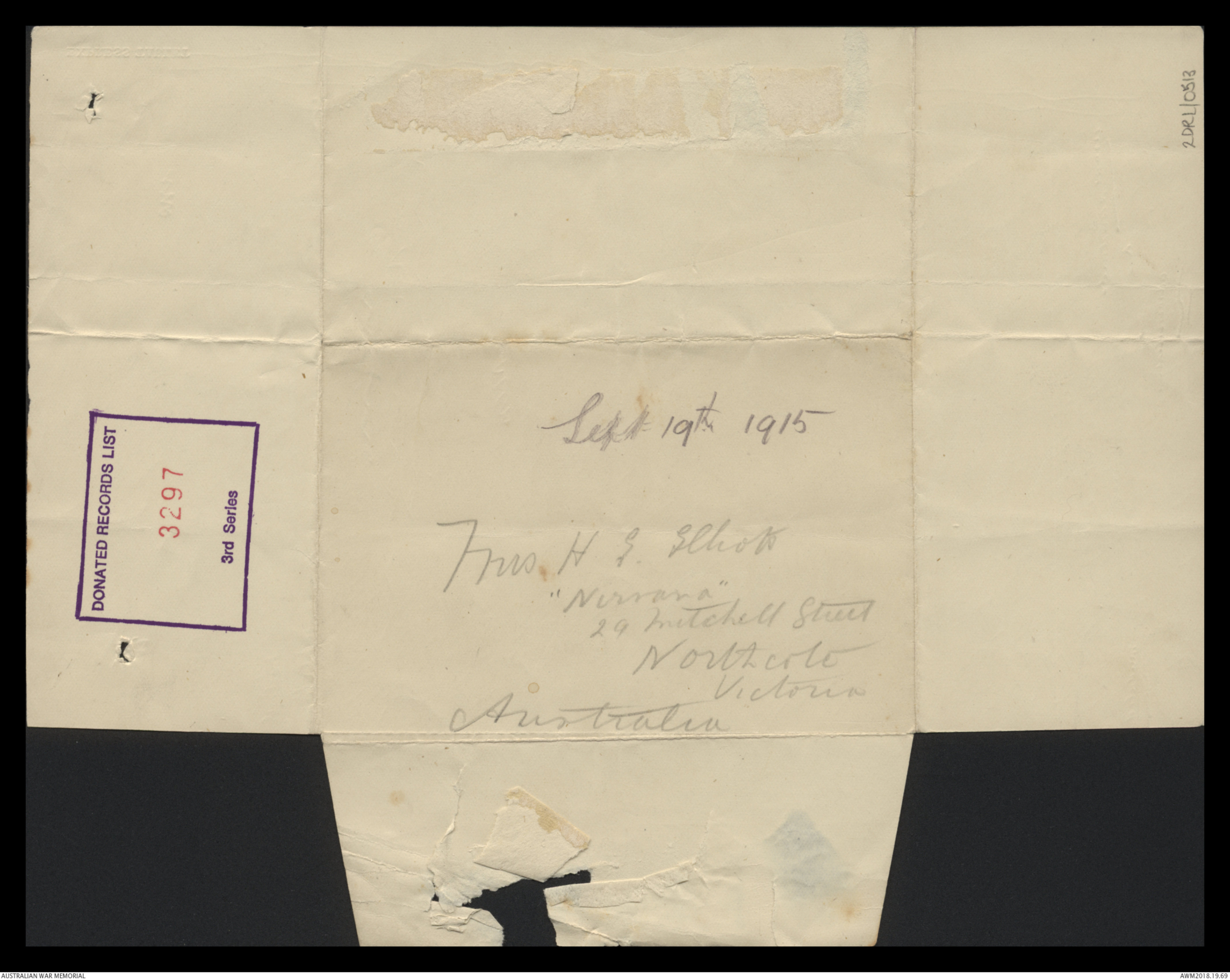Letters from Harold Edward 'Pompey' Elliott to his family, June - December 1915 - Part 10