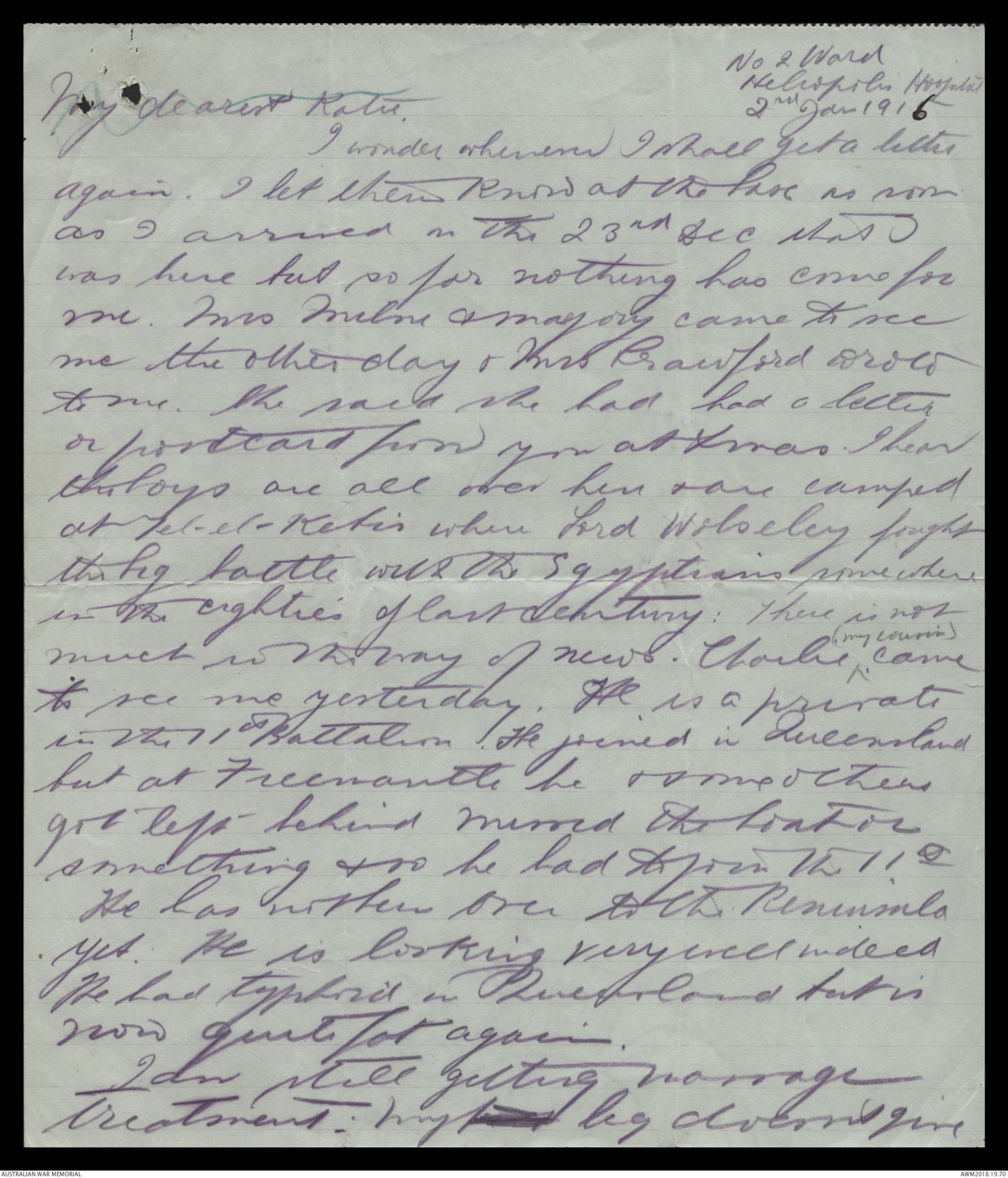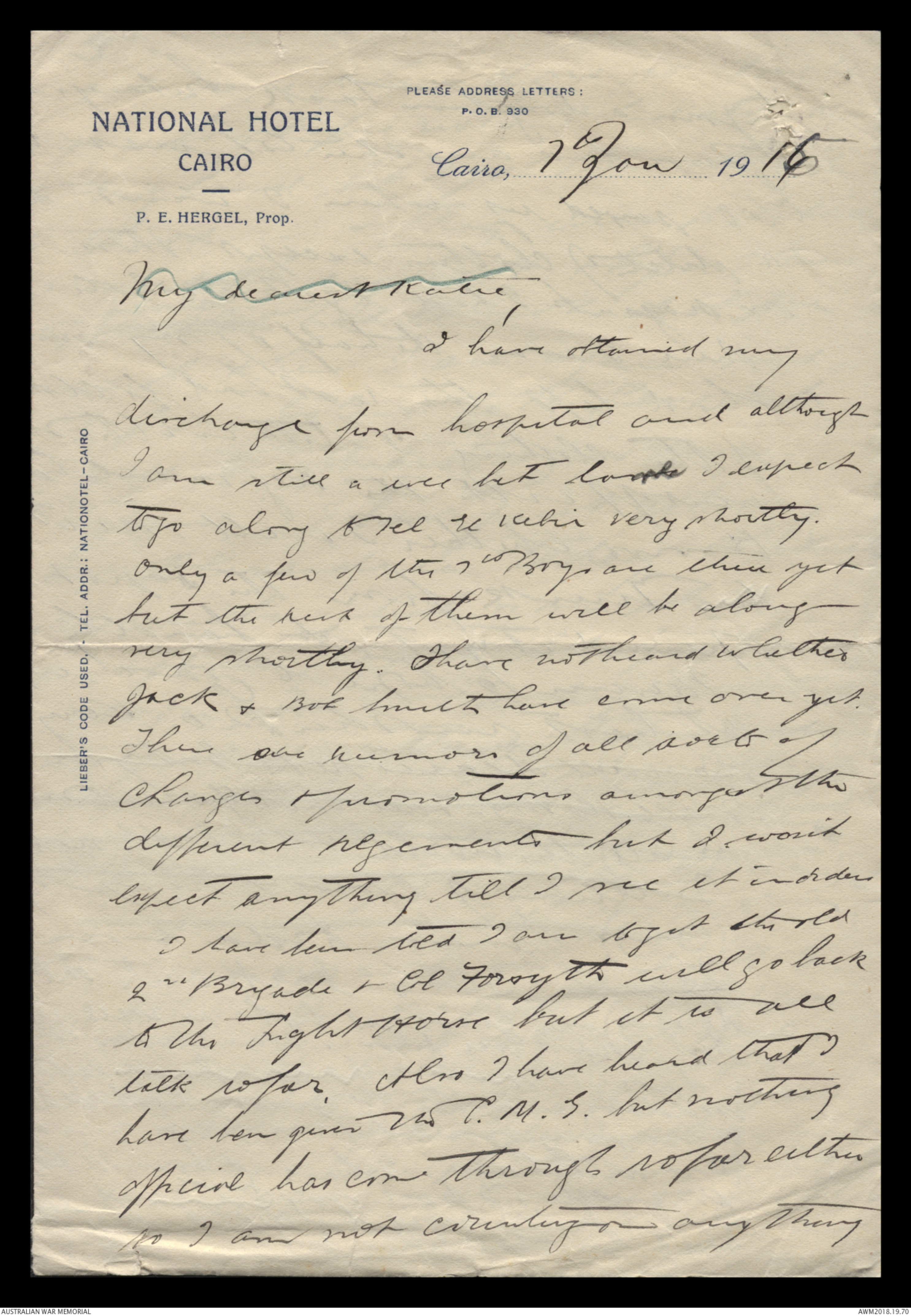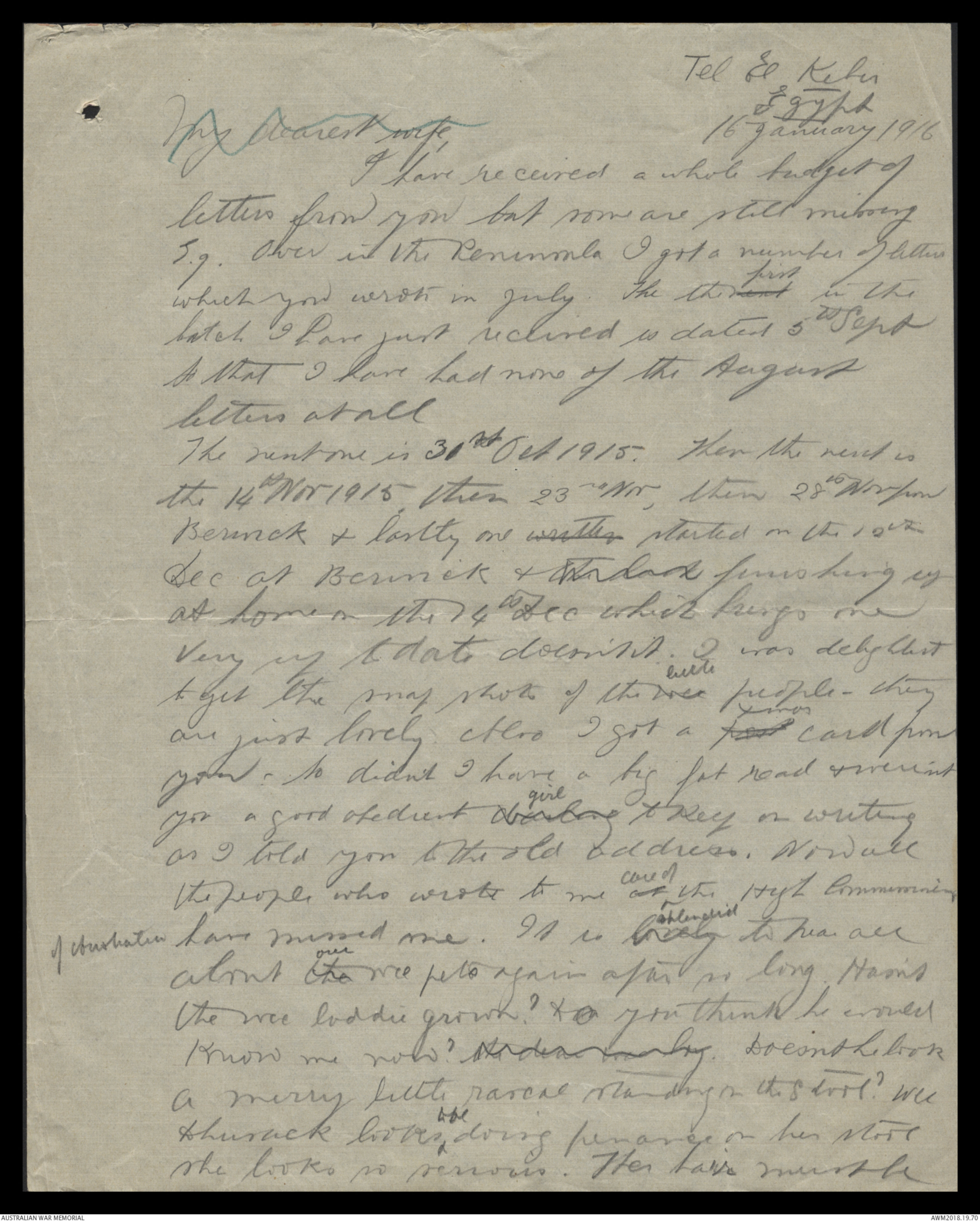 Letters from Harold Edward Elliott to his family January 1916 - June 1916 - Part 1