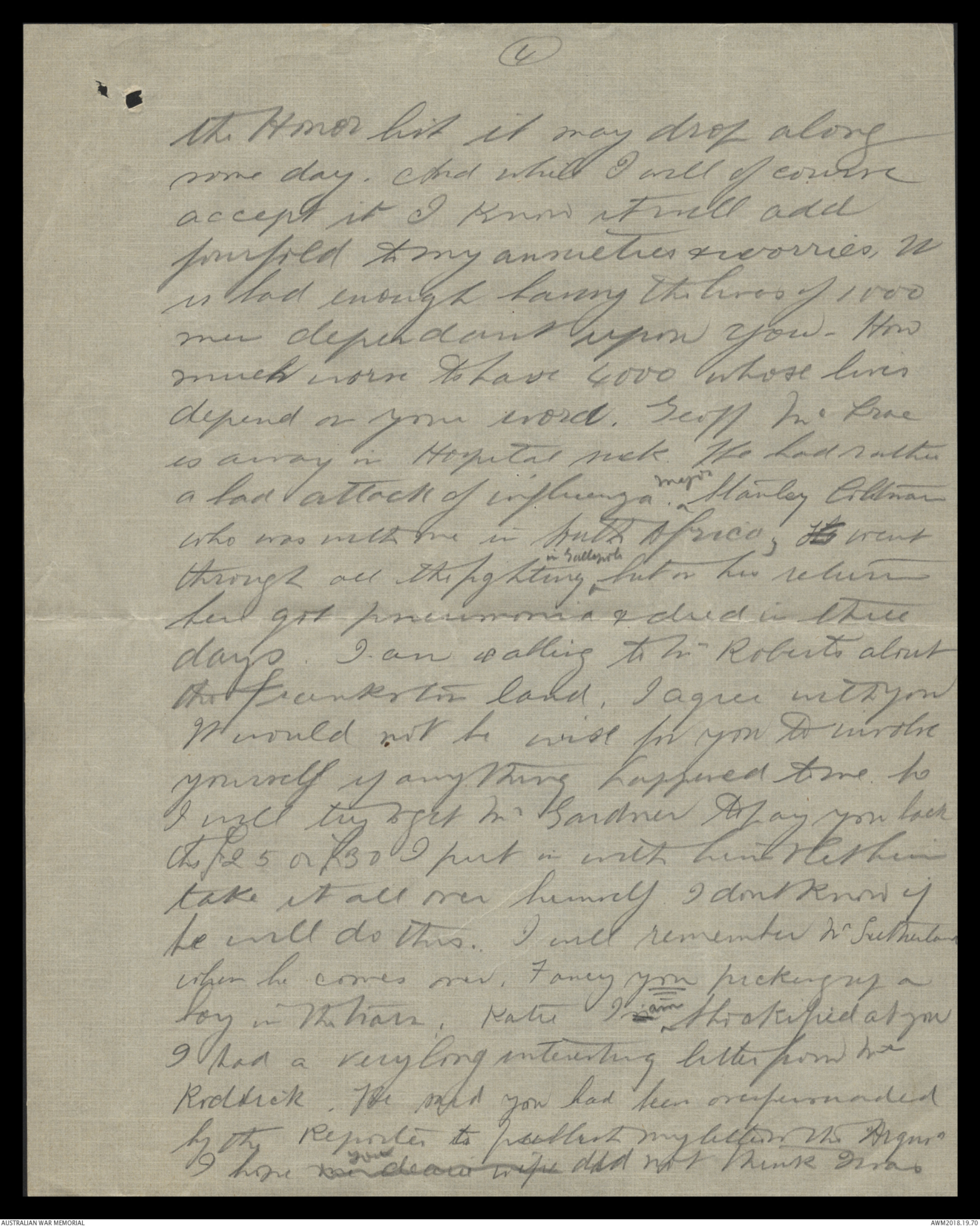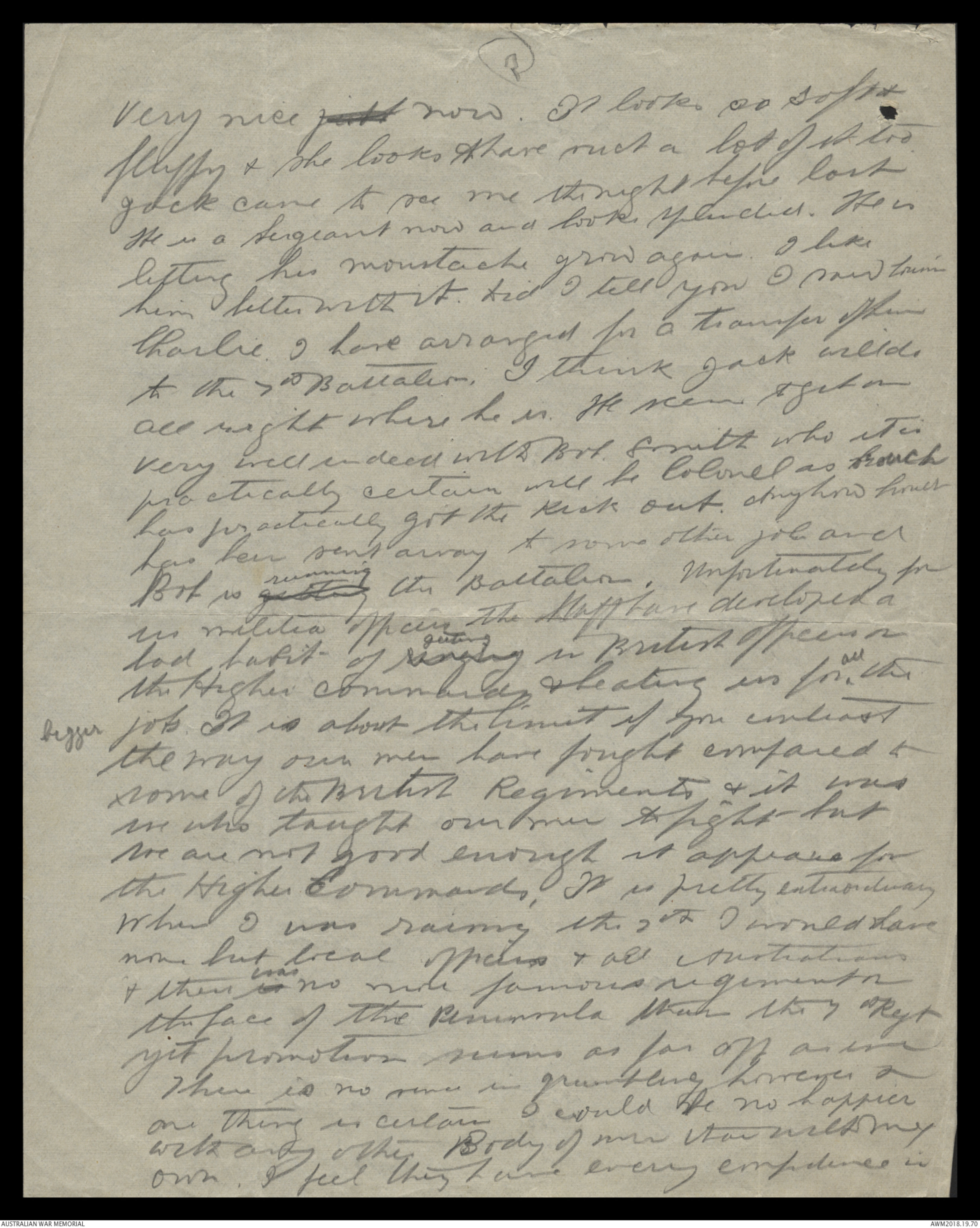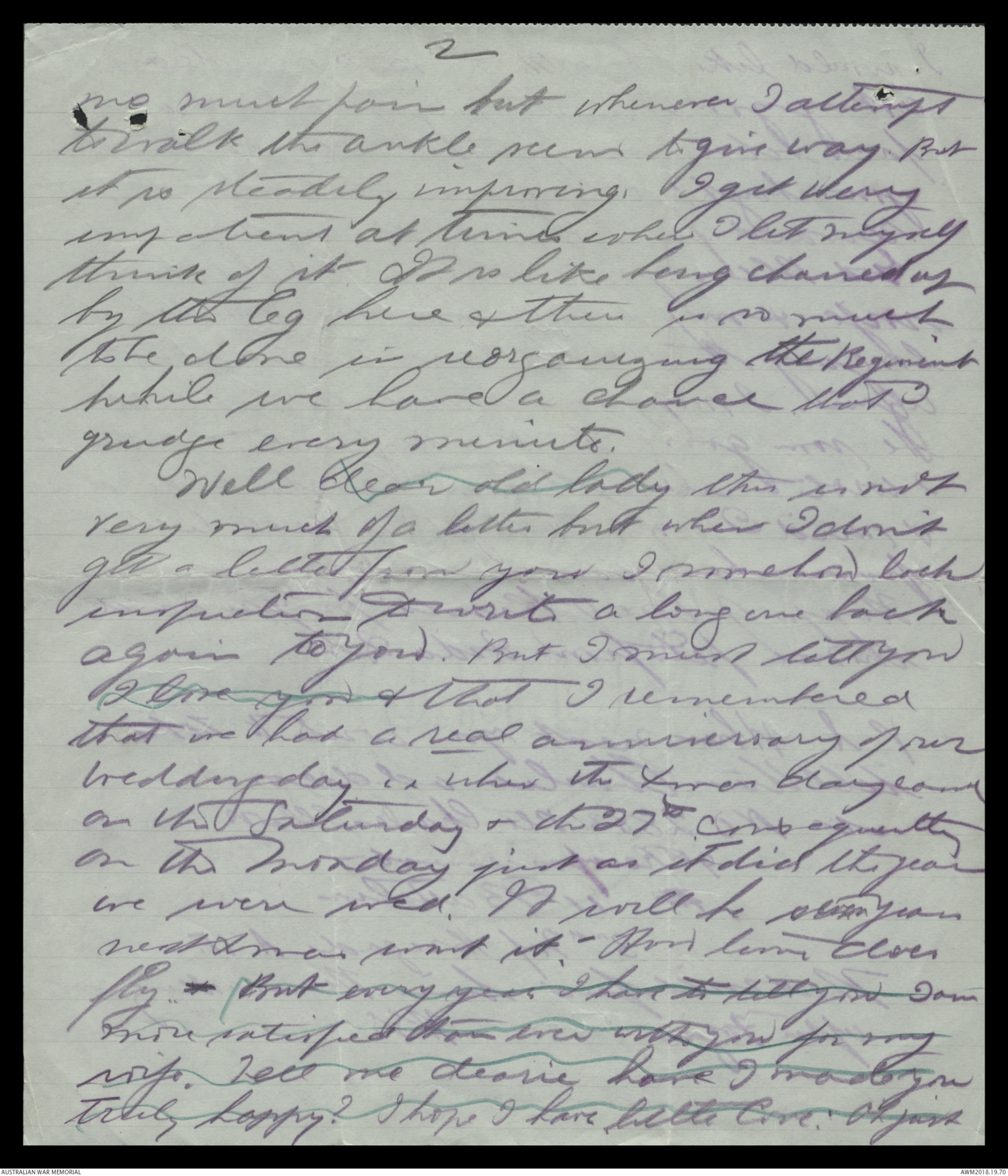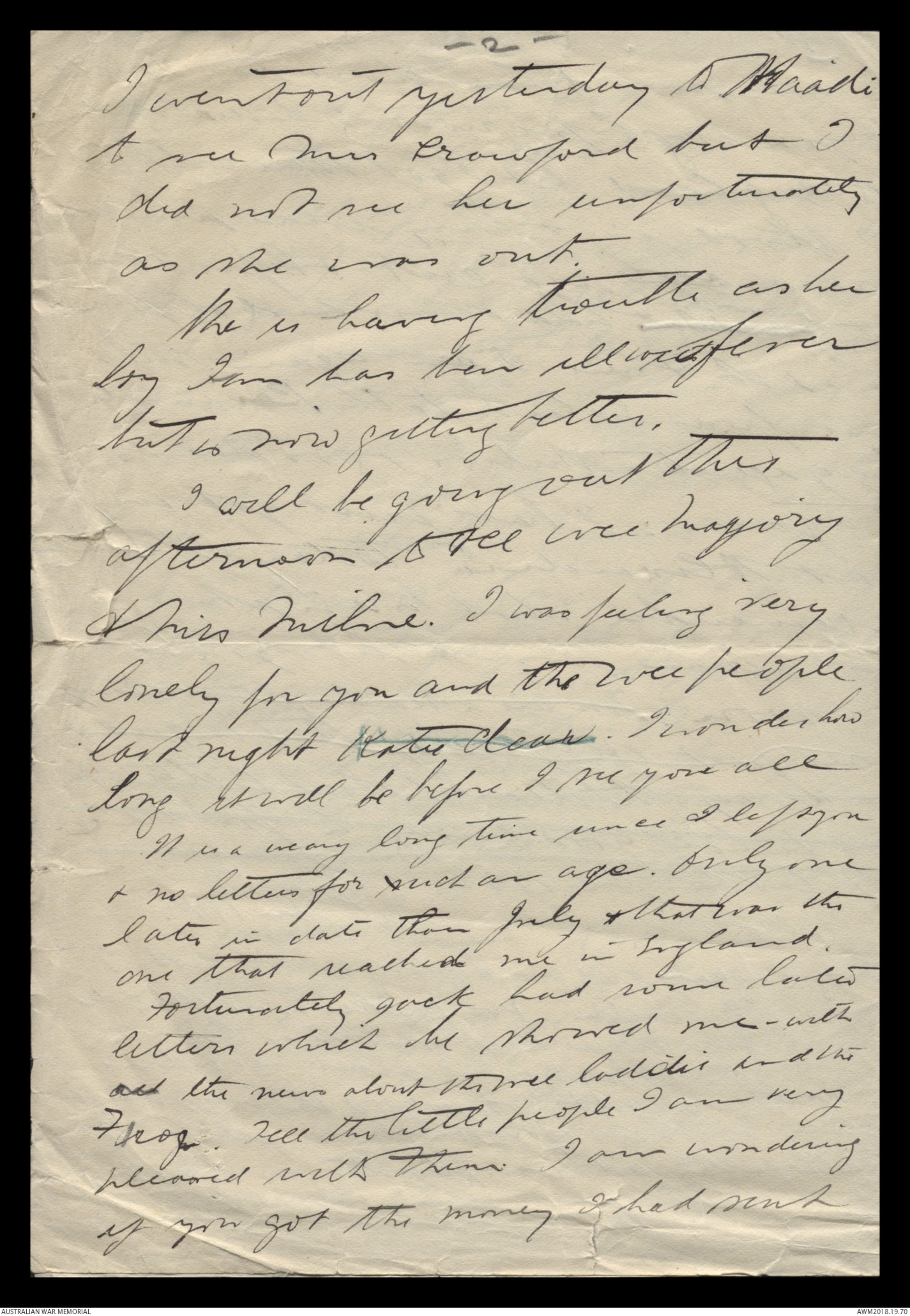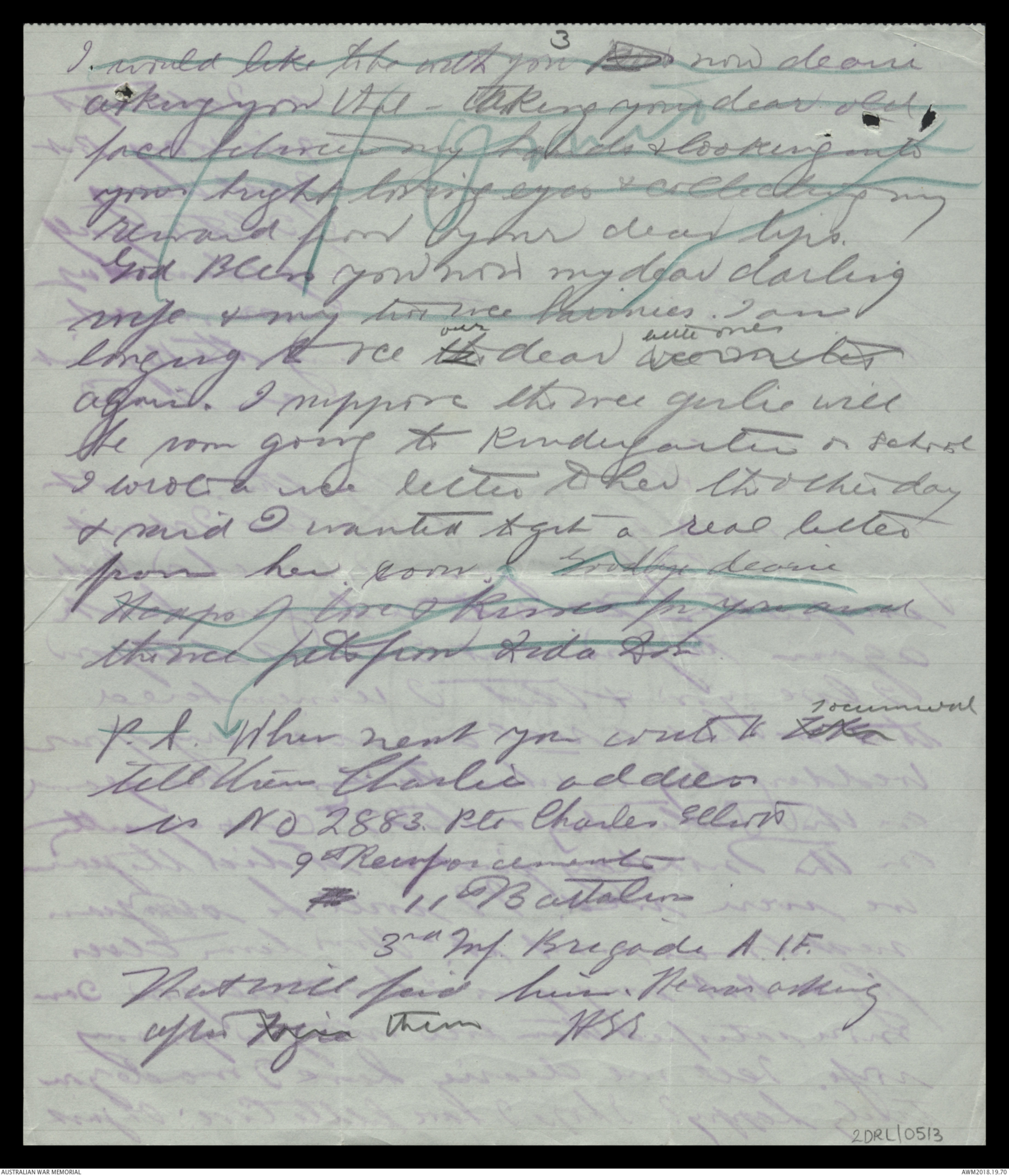 3I would like to be with you xxx now dearieasking you that - taking your dear oldface between my hands & looking intoyour bright loving eyes & collecting myreward from your dear lips.God Bless you now my dear darlingwife & my two wee bairnies. I am