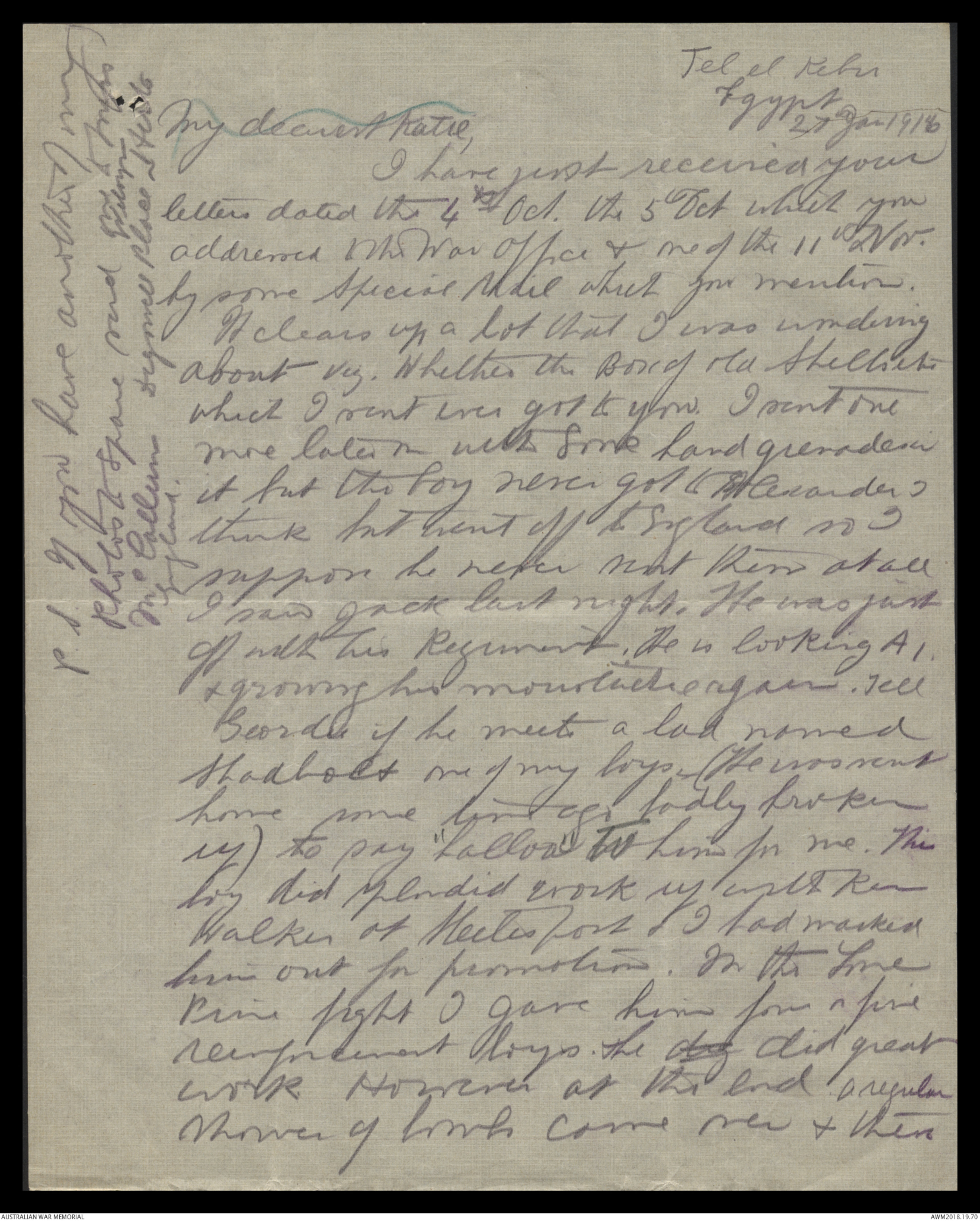 Letters from Harold Edward Elliott to his family January 1916 - June 1916 - Part 2