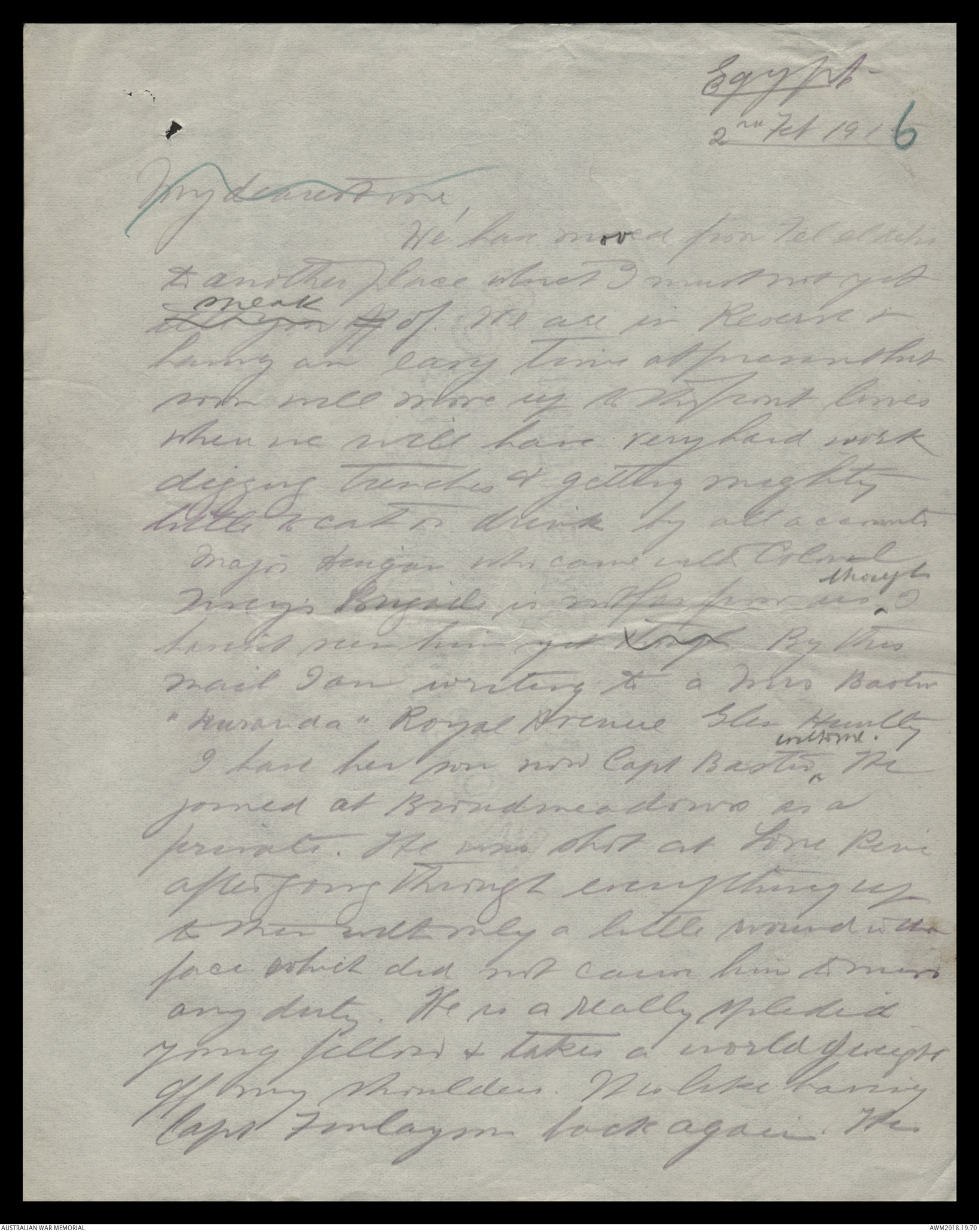 Letters from Harold Edward Elliott to his family January 1916 - June 1916 - Part 3