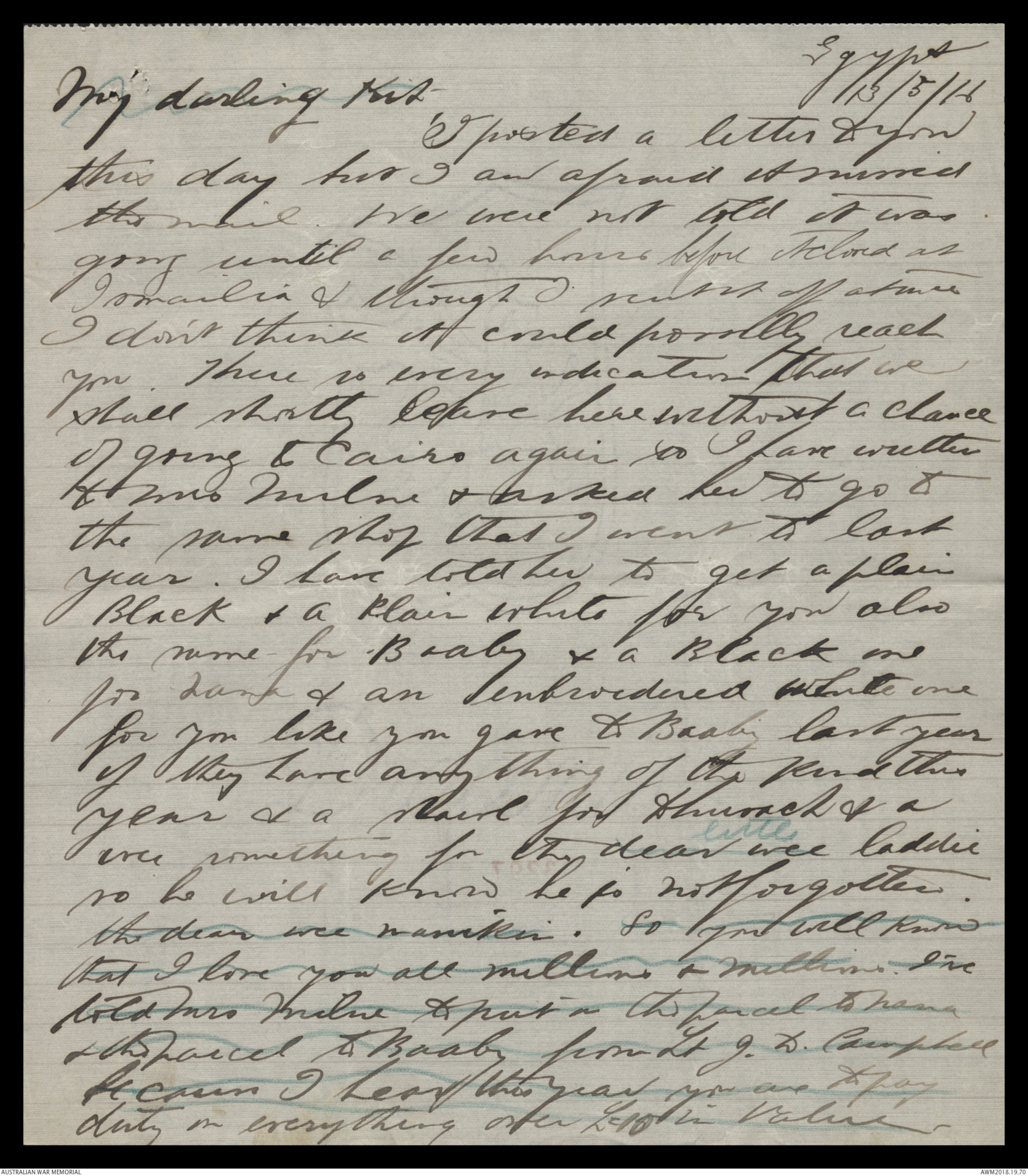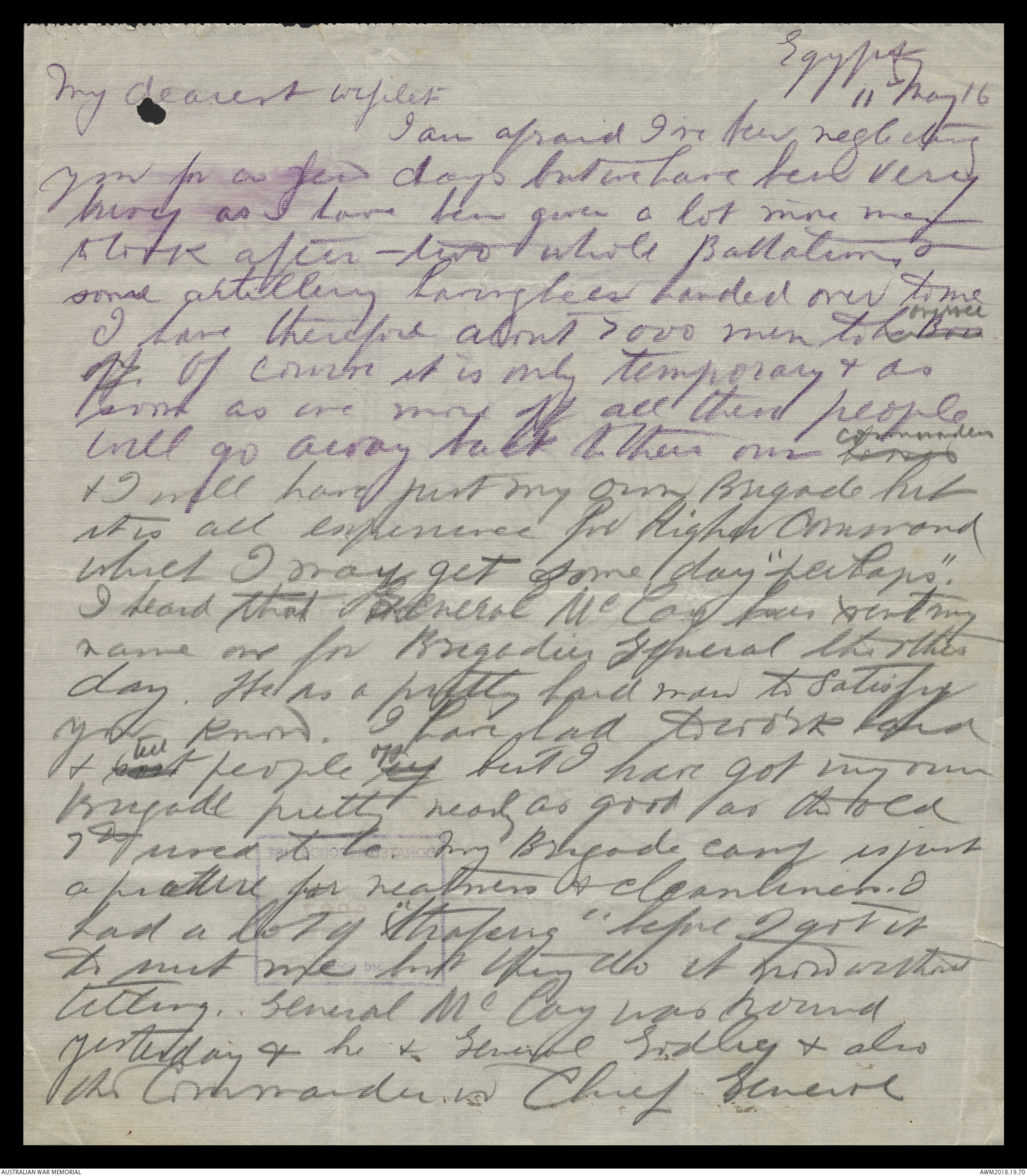 Letters from Harold Edward Elliott to his family January 1916 - June 1916 - Part 13