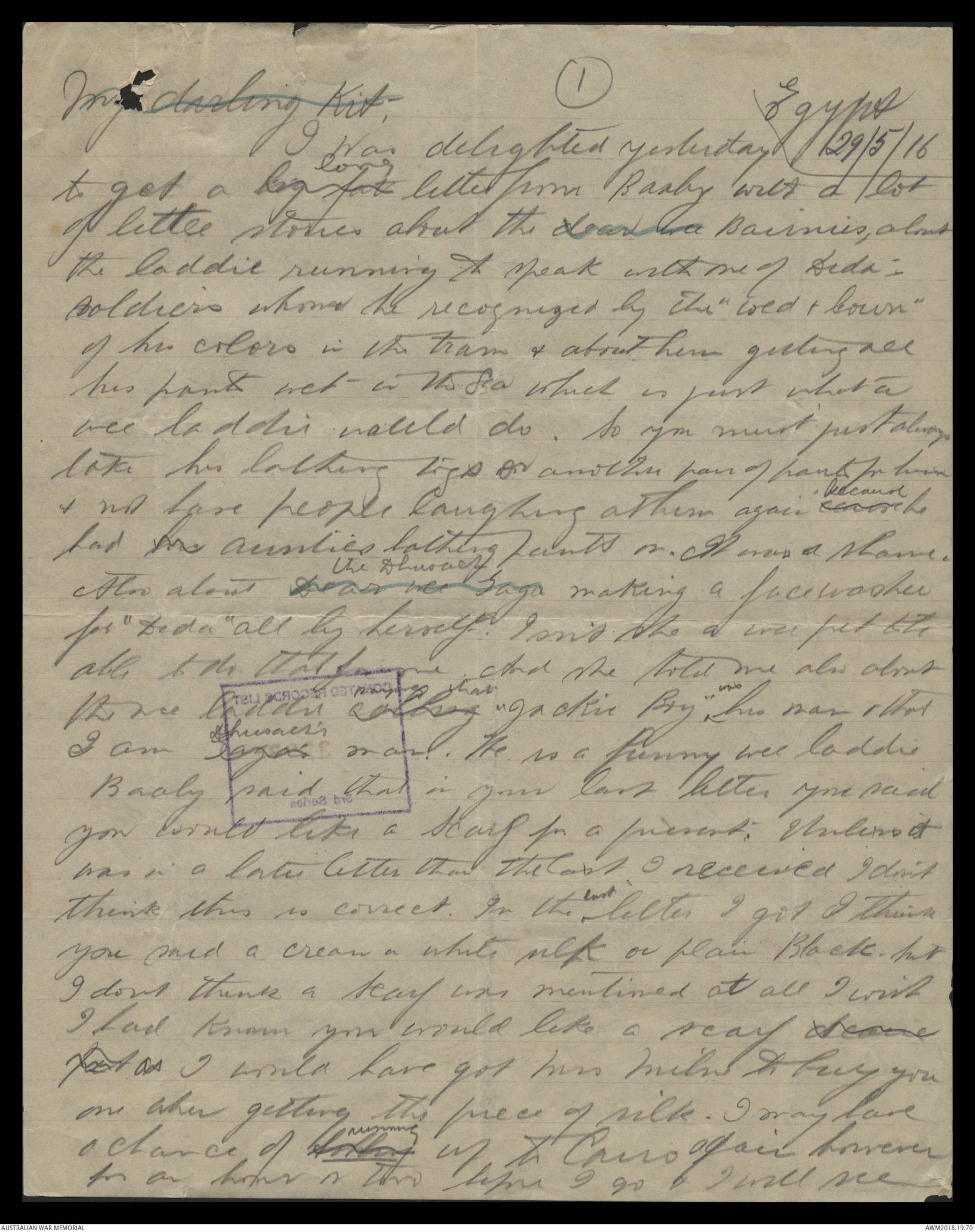 Letters from Harold Edward Elliott to his family January 1916 - June 1916 - Part 14