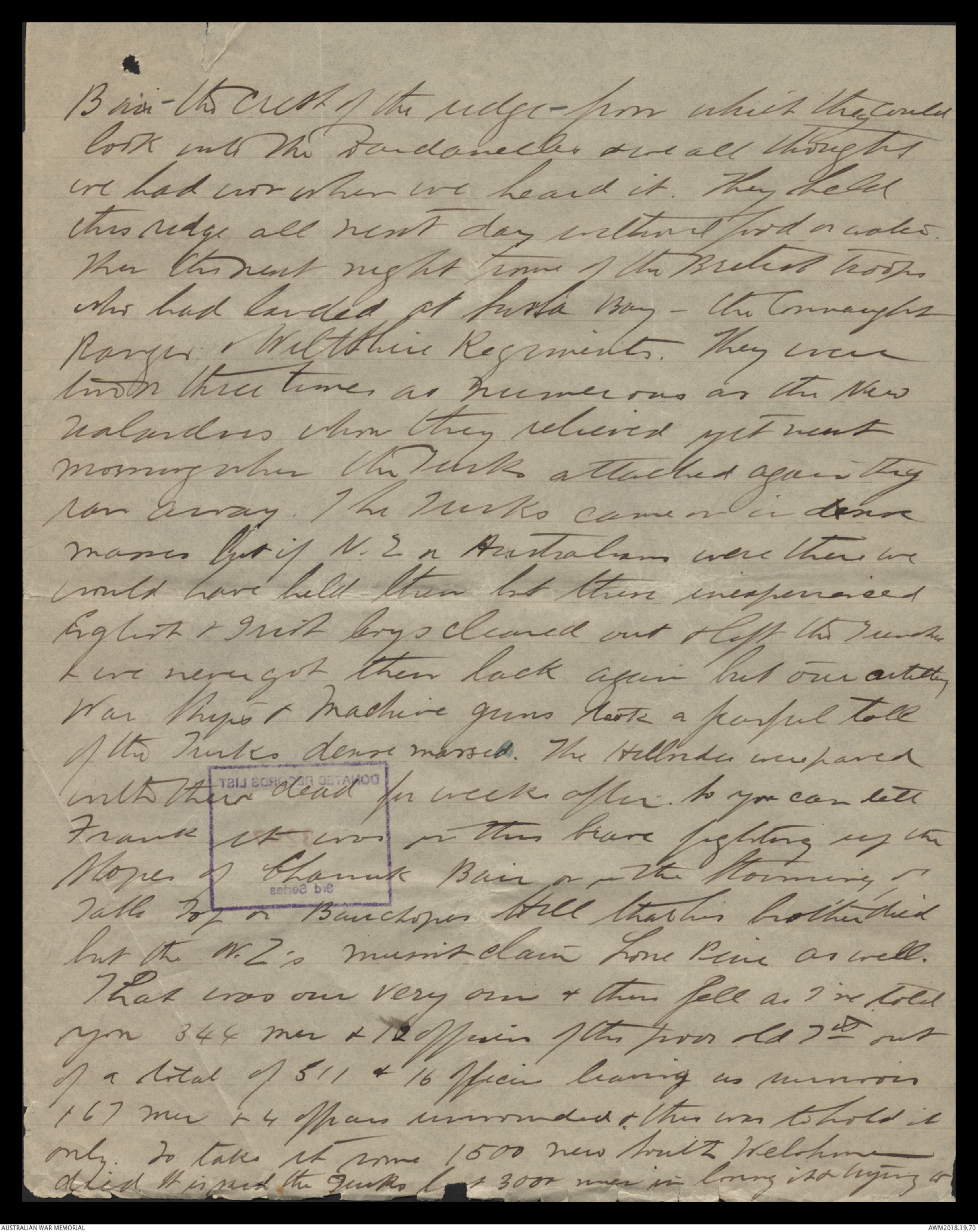 Anzac. It was taken by the 1st Brigade under General