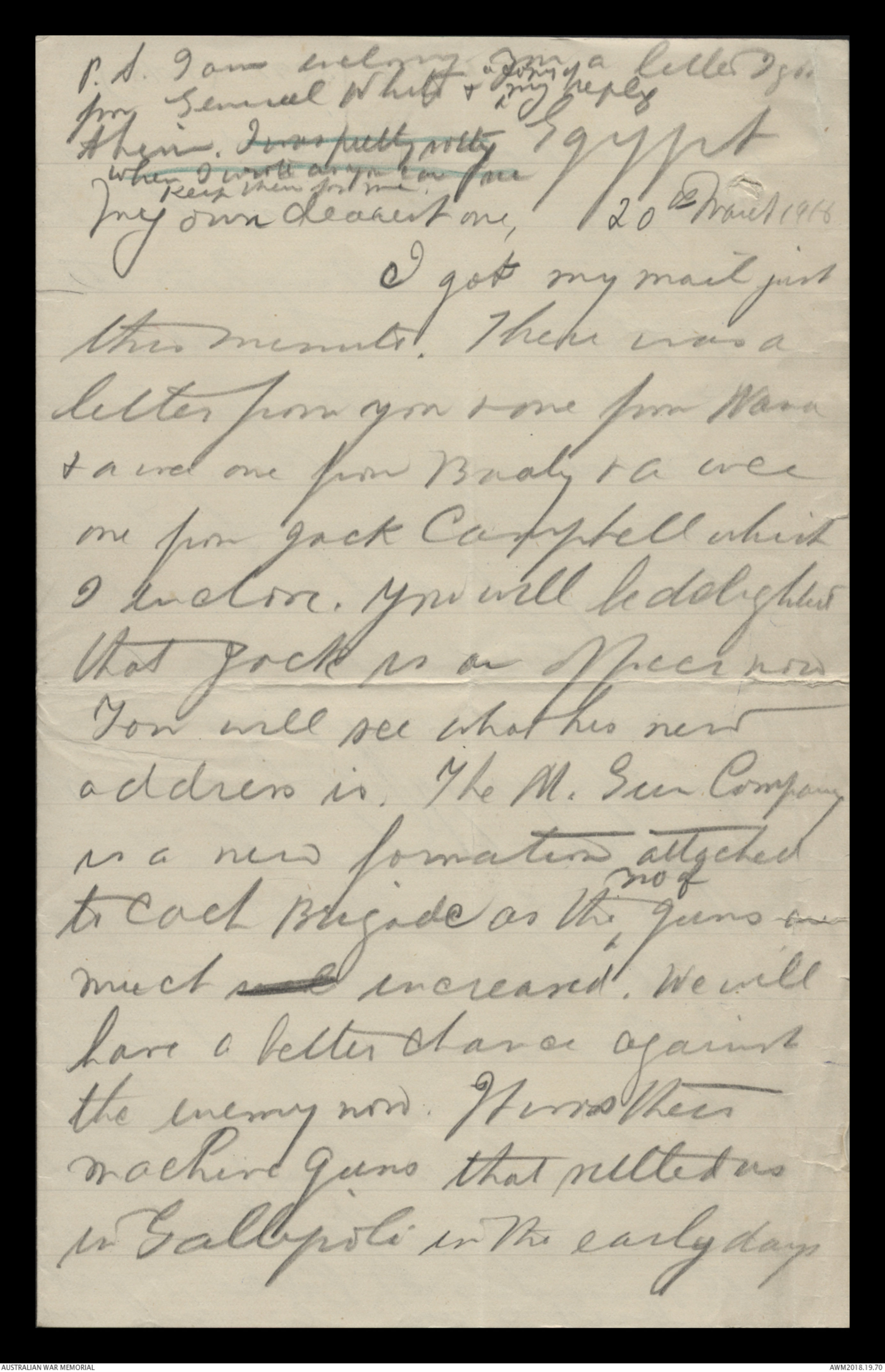 Letters from Harold Edward Elliott to his family January 1916 - June 1916 - Part 7