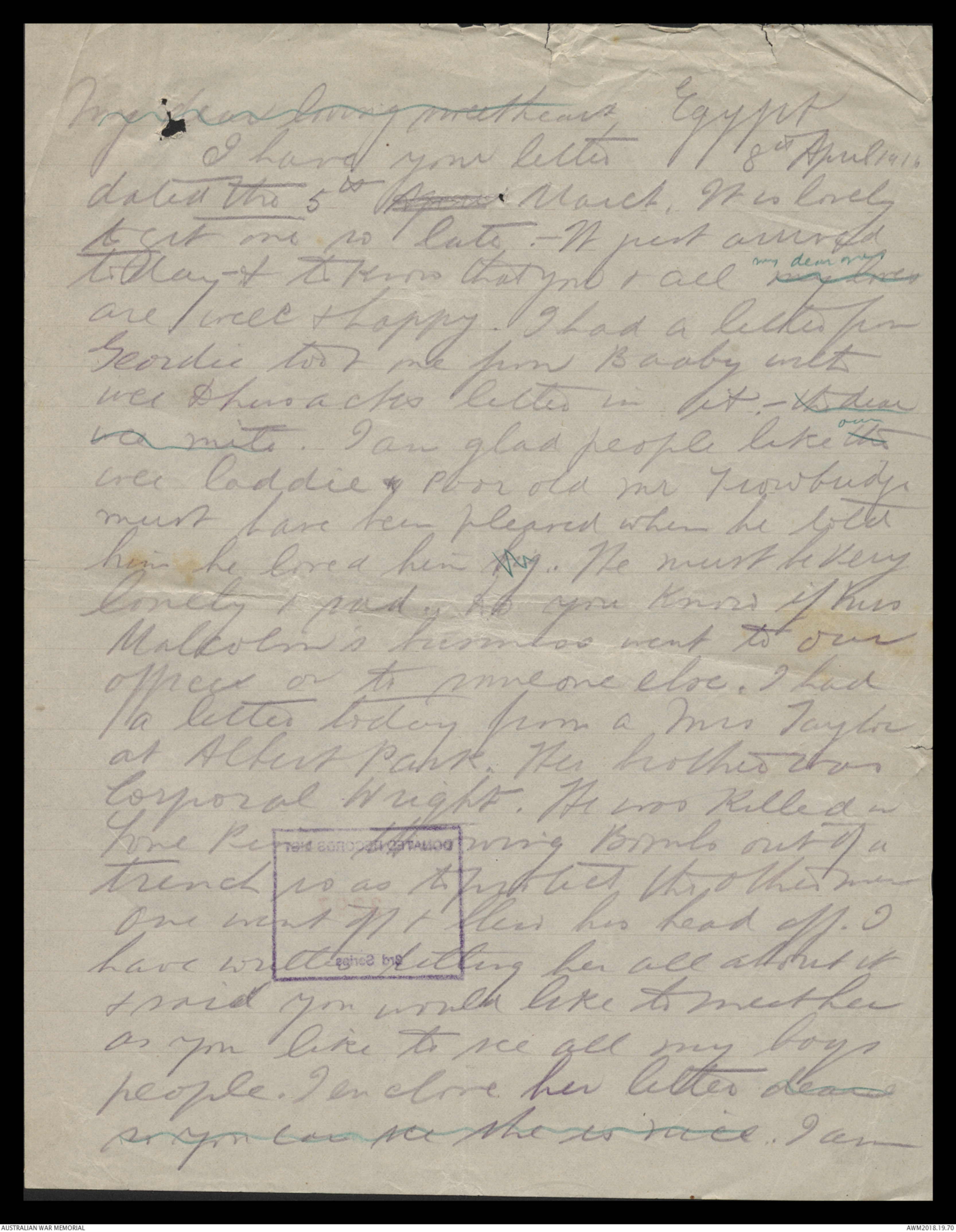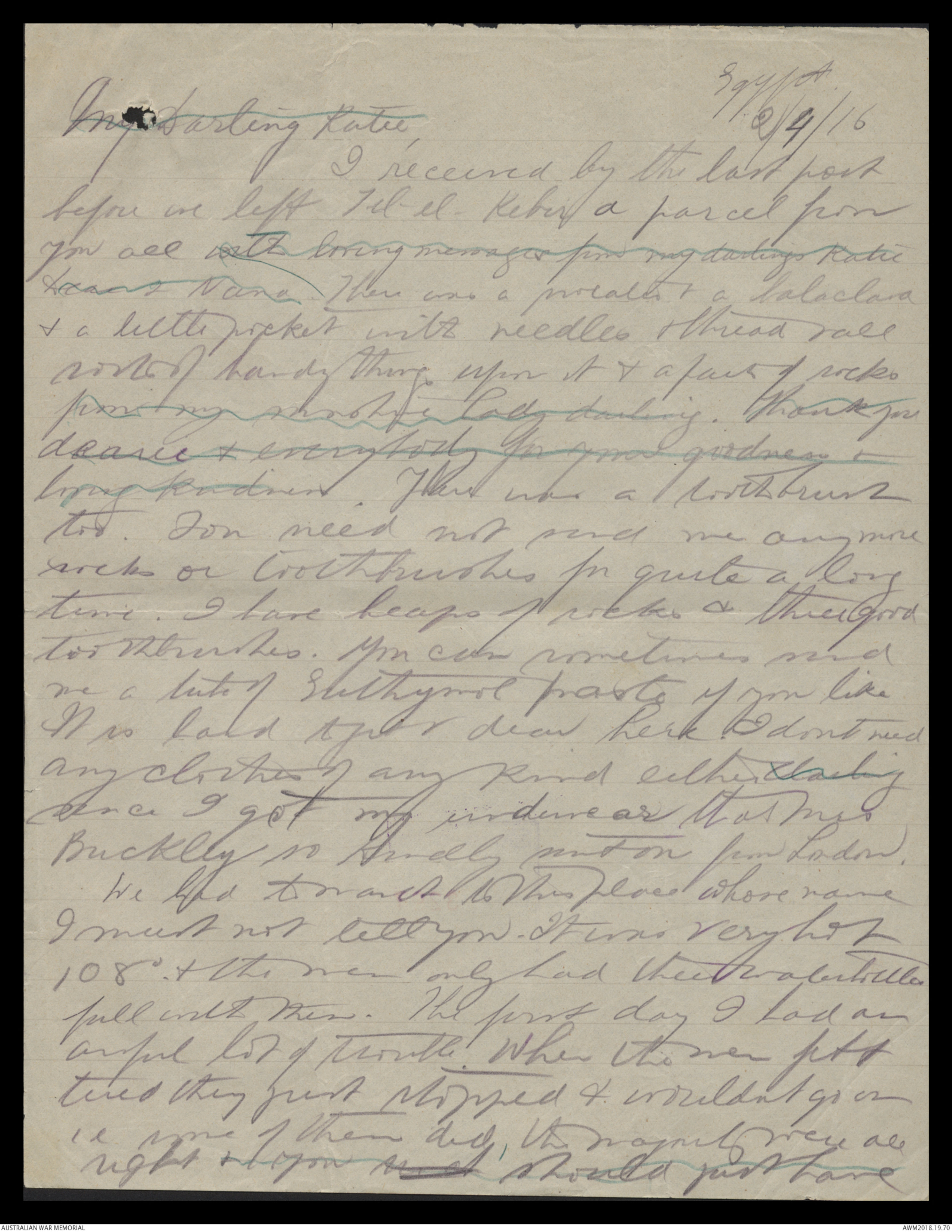 Letters from Harold Edward Elliott to his family January 1916 - June 1916 - Part 9