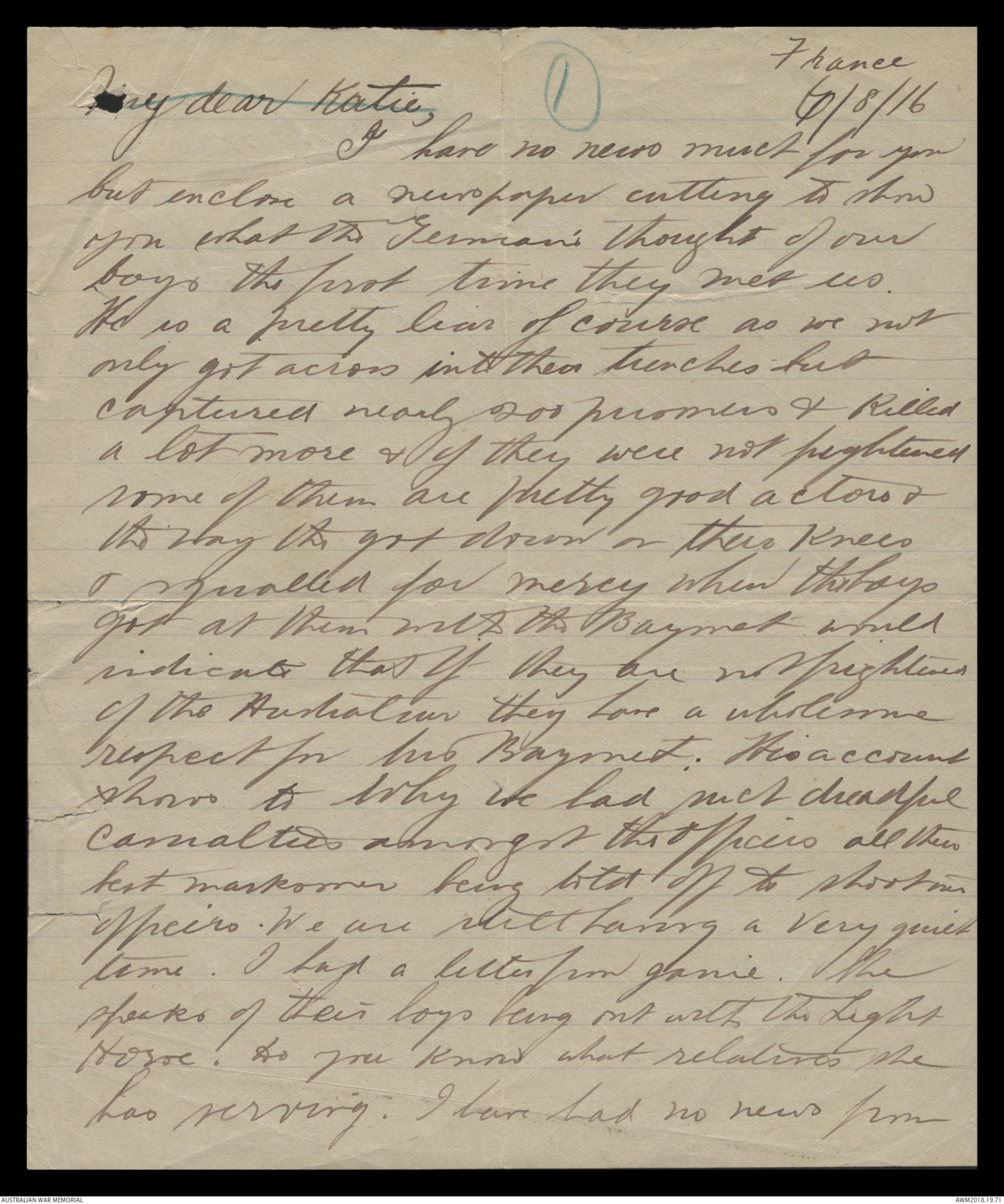 Letters from Harold Edward 'Pompey' Elliott to his family, July - October 1916 - Part 4