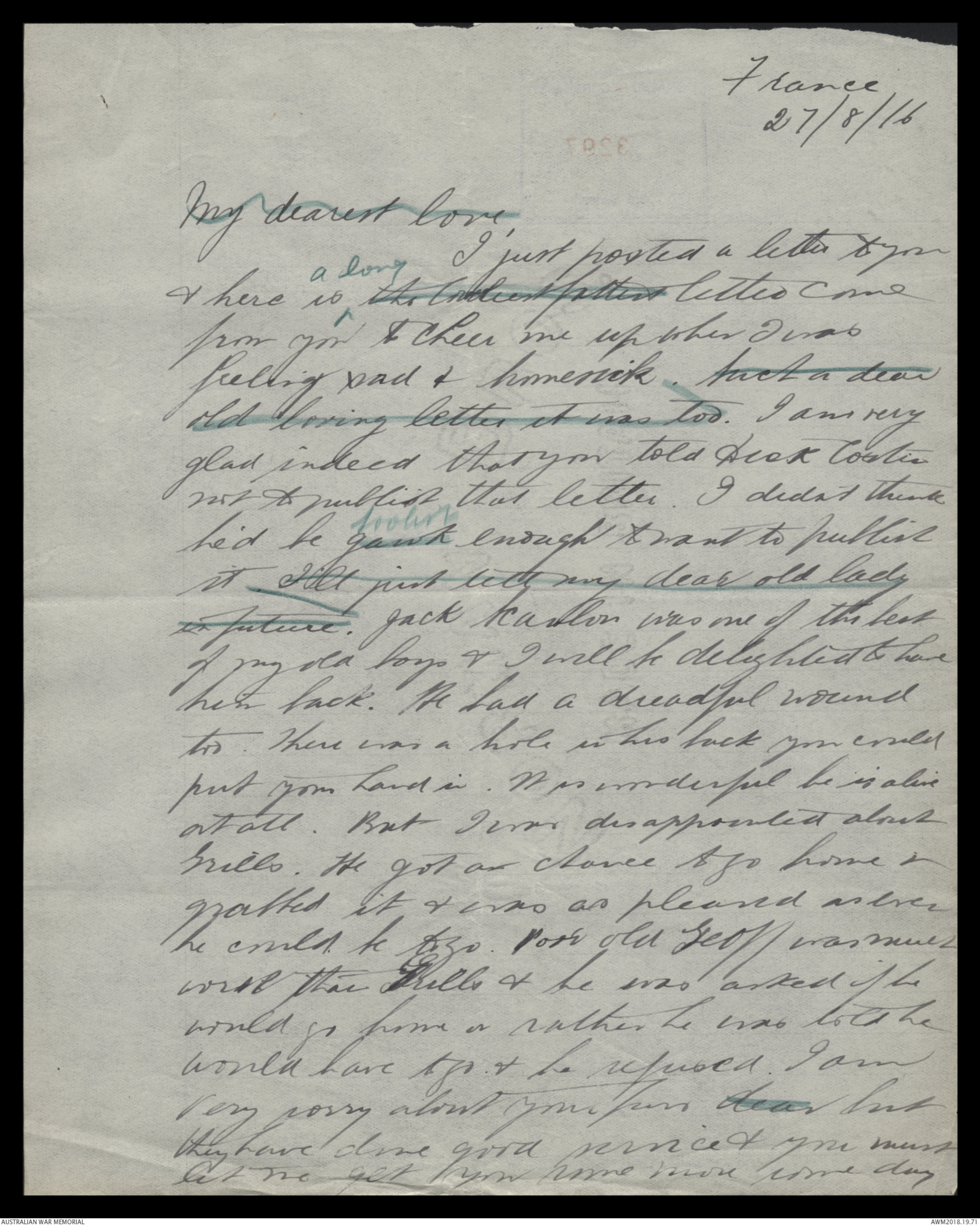 Letters from Harold Edward 'Pompey' Elliott to his family, July - October 1916 - Part 8