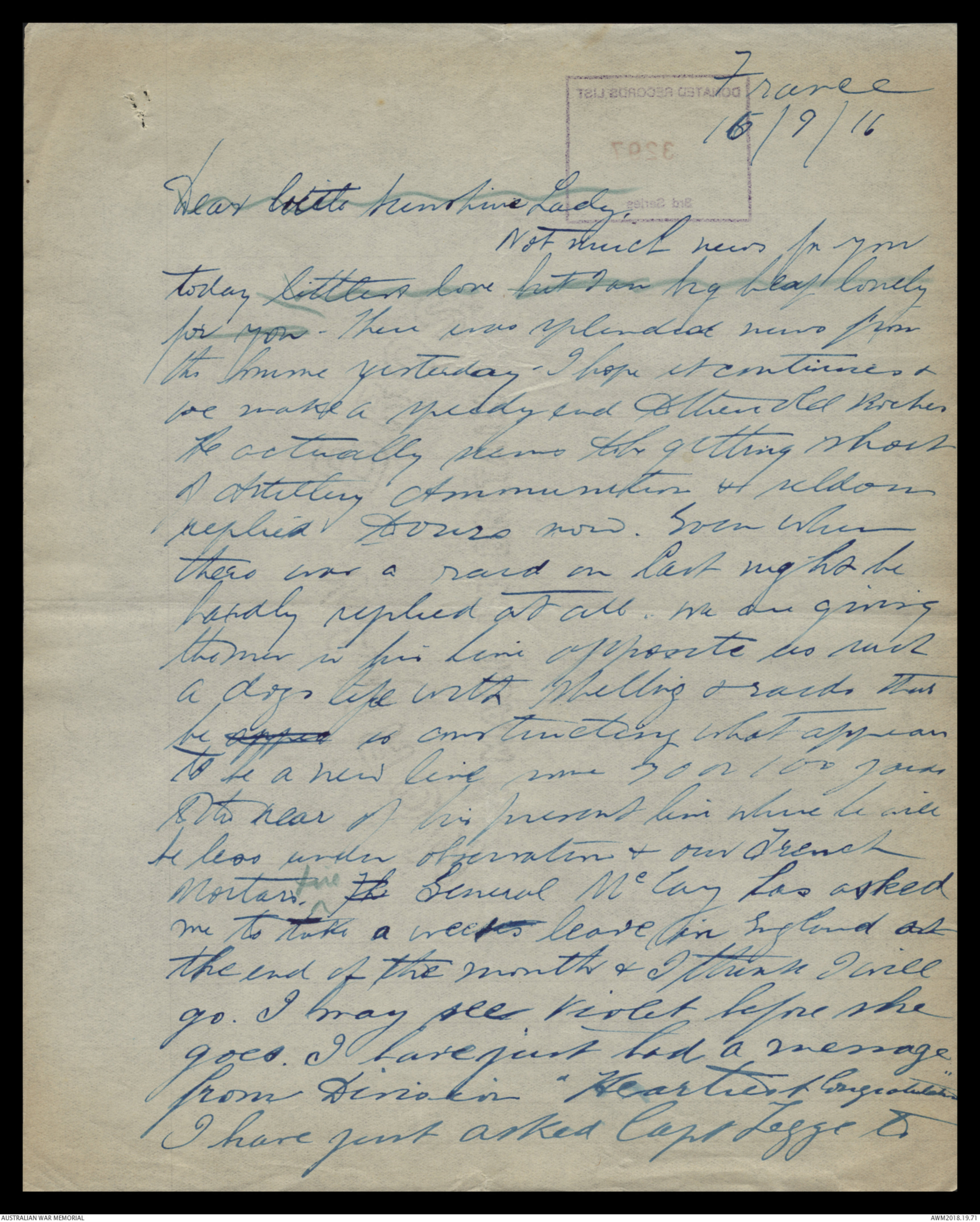 Letters from Harold Edward 'Pompey' Elliott to his family, July - October 1916 - Part 9