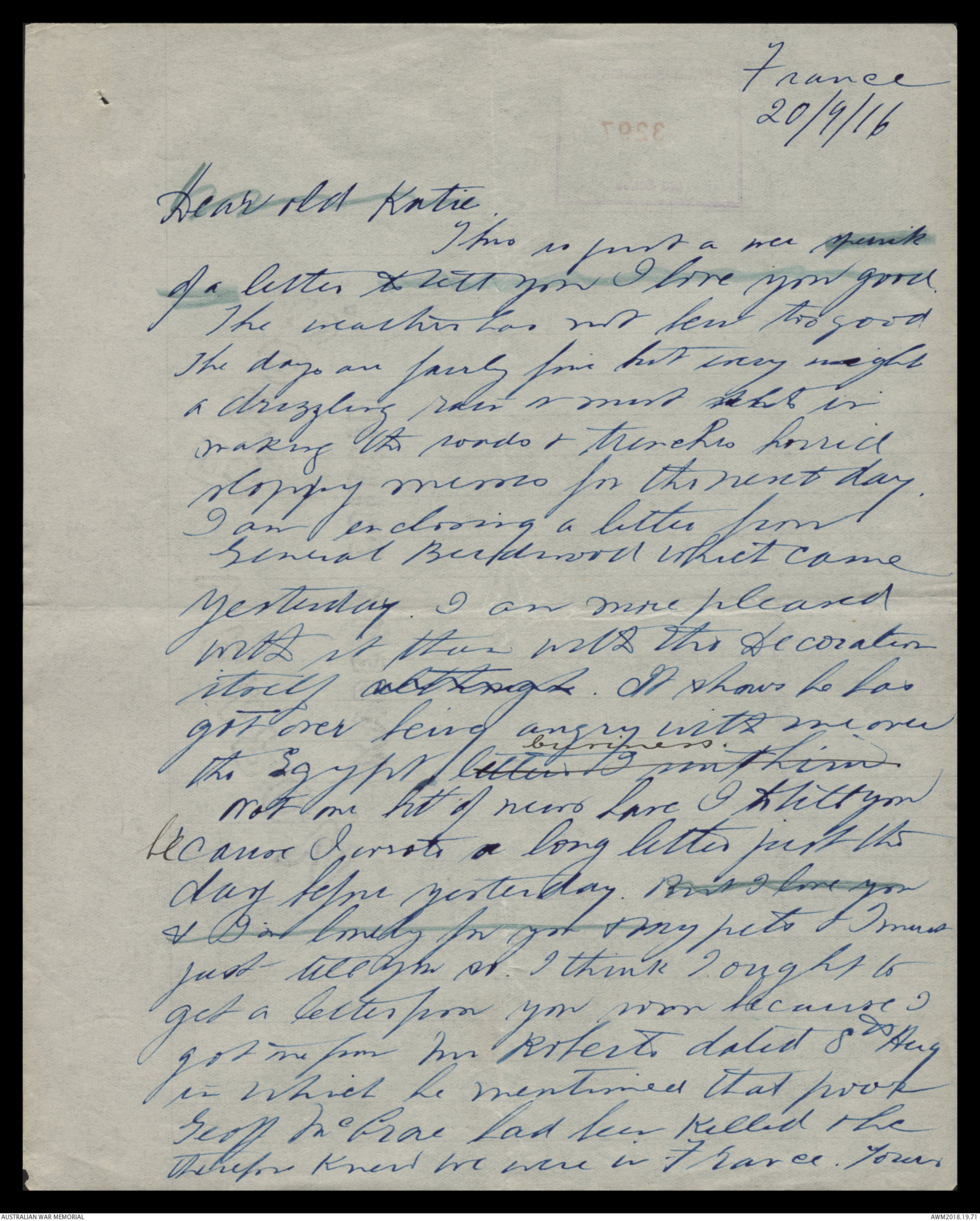 Letters from Harold Edward 'Pompey' Elliott to his family, July - October 1916 - Part 10