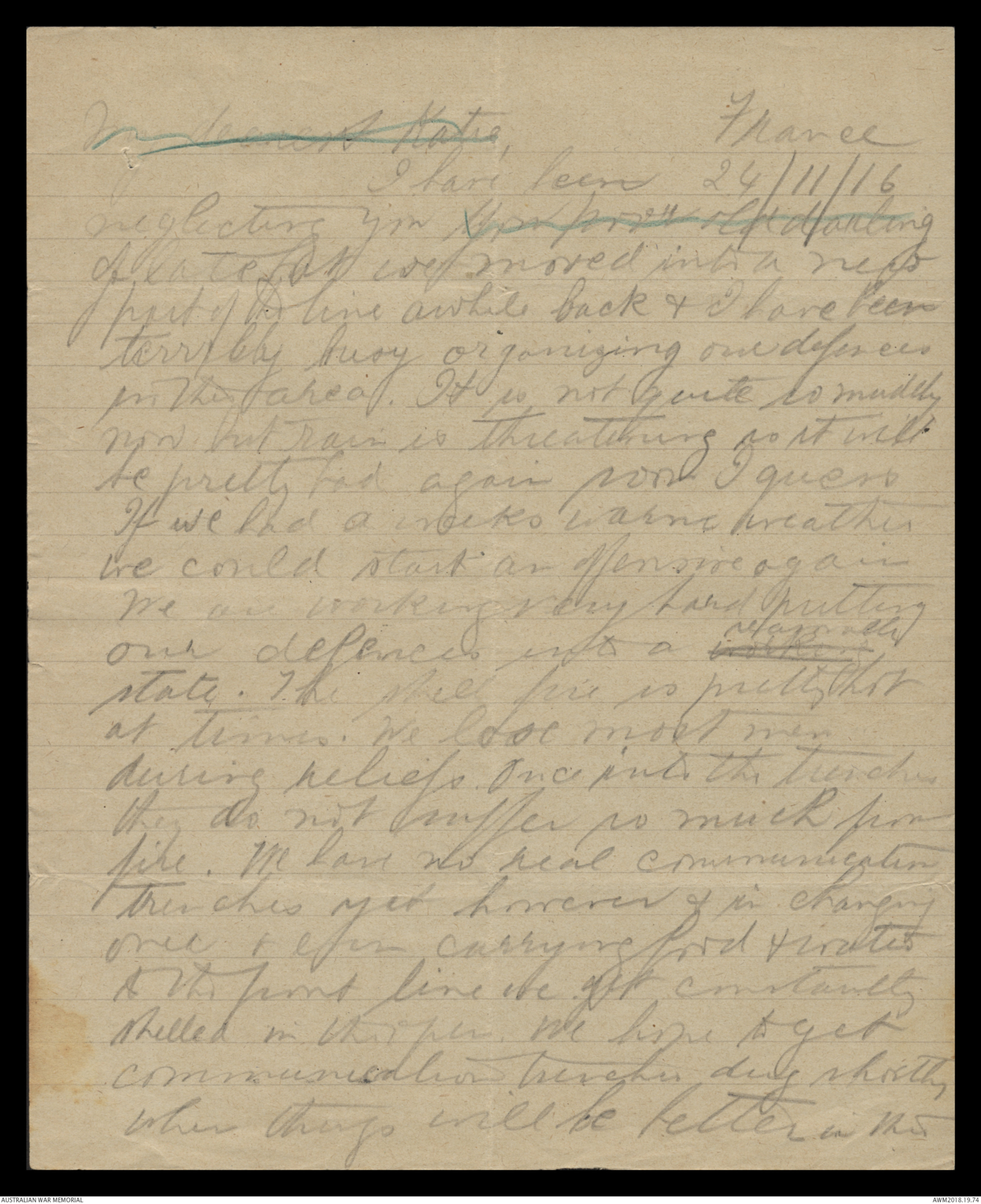 Letters from Harold Edward 'Pompey' Elliott to his family, November 1916 - December 1916 - Part 4
