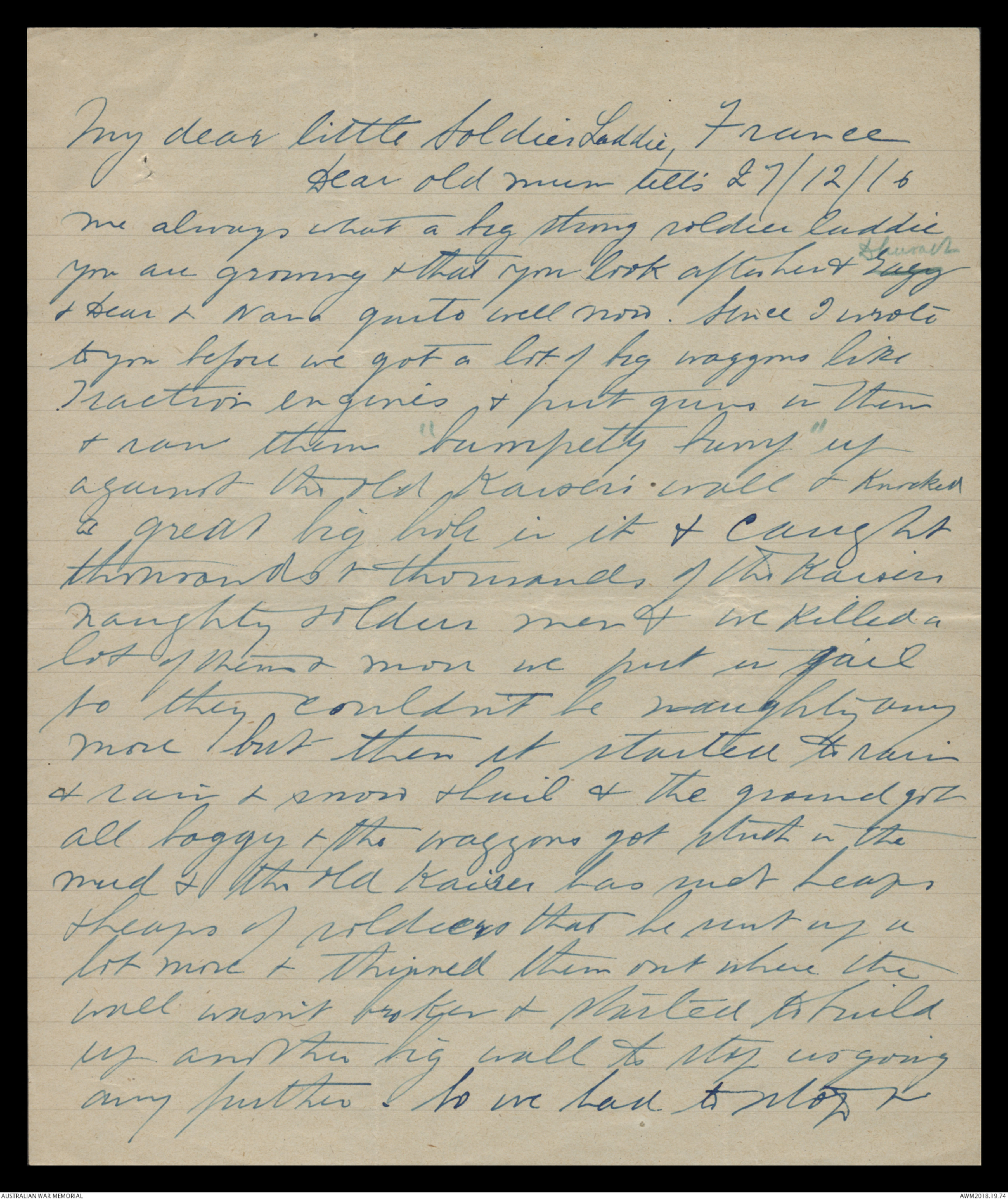 Letters from Harold Edward 'Pompey' Elliott to his family, November 1916 - December 1916 - Part 11