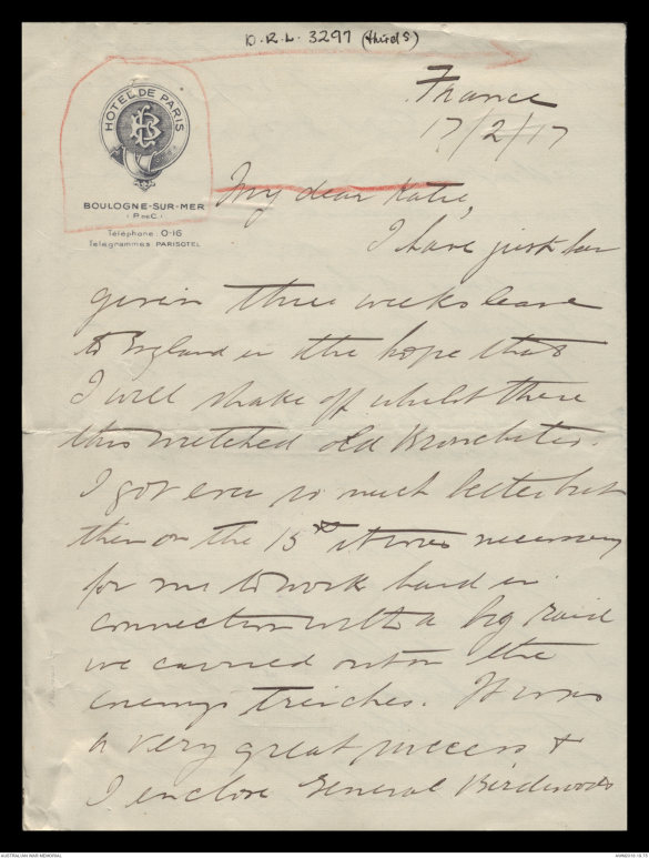 I enclose General Birdwood's