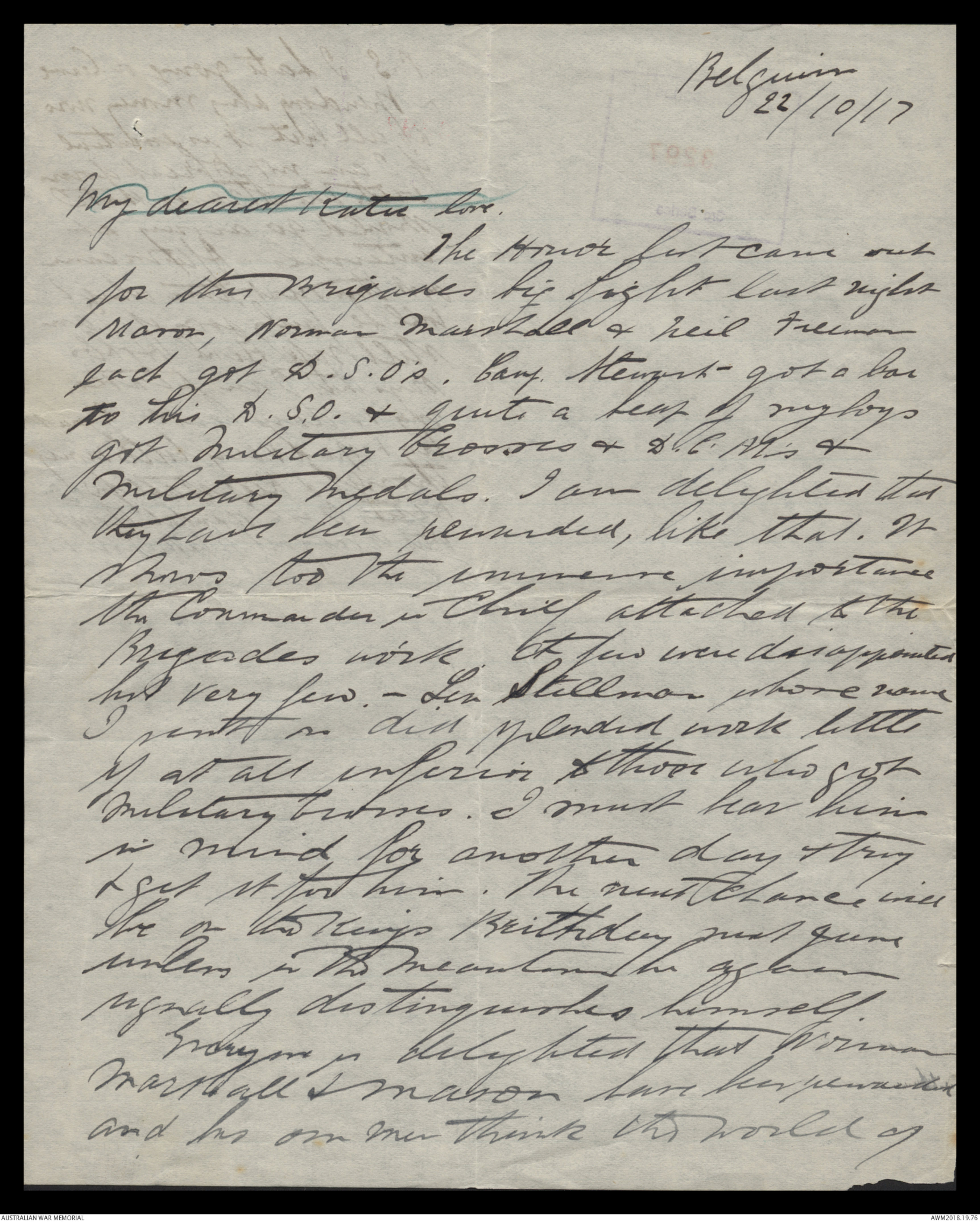 Letters from Harold Edward 'Pompey' Elliott to his family, May 1917 - December 1917 - Part 15