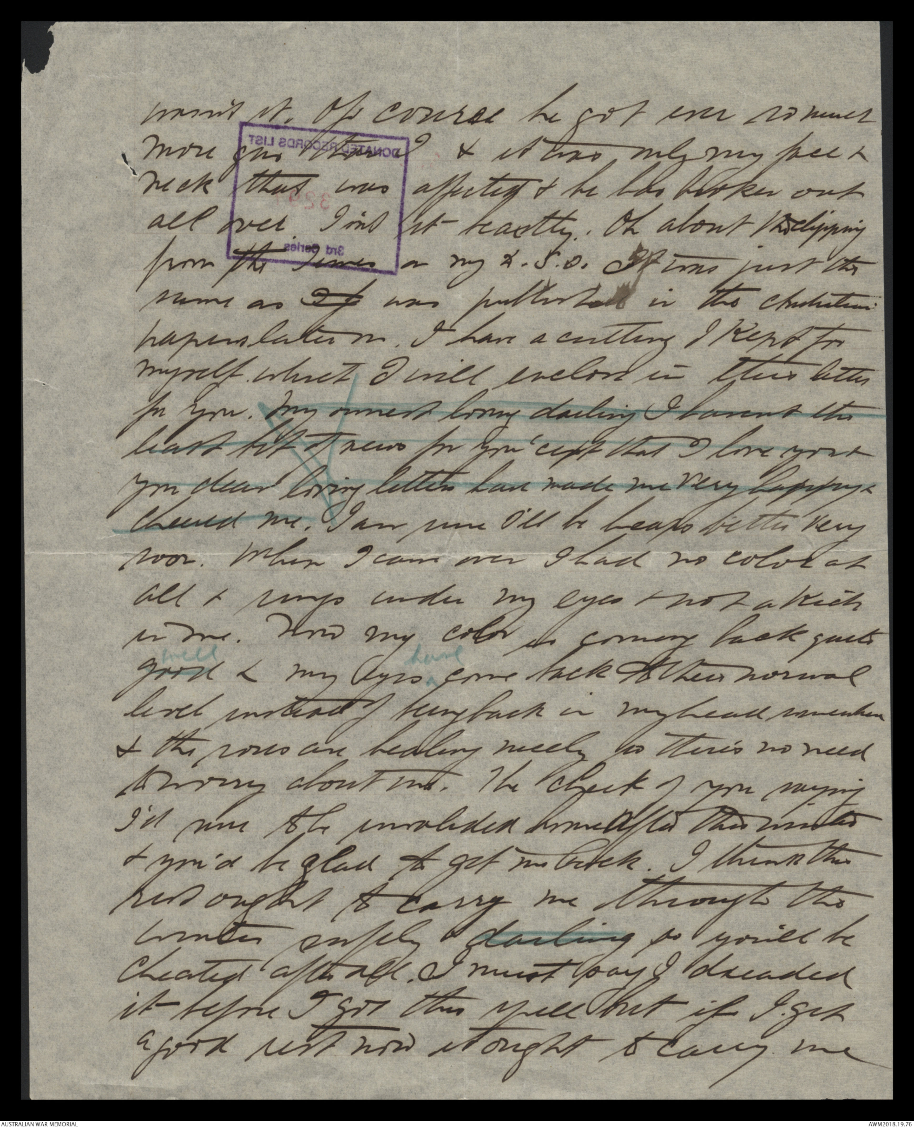 for you. My ownest [[?]] darling I haven't theleast bit of news for you 'cept that I love you &your dear loving letters have made me very happy &cheered me. I am sure I'll be heaps better very