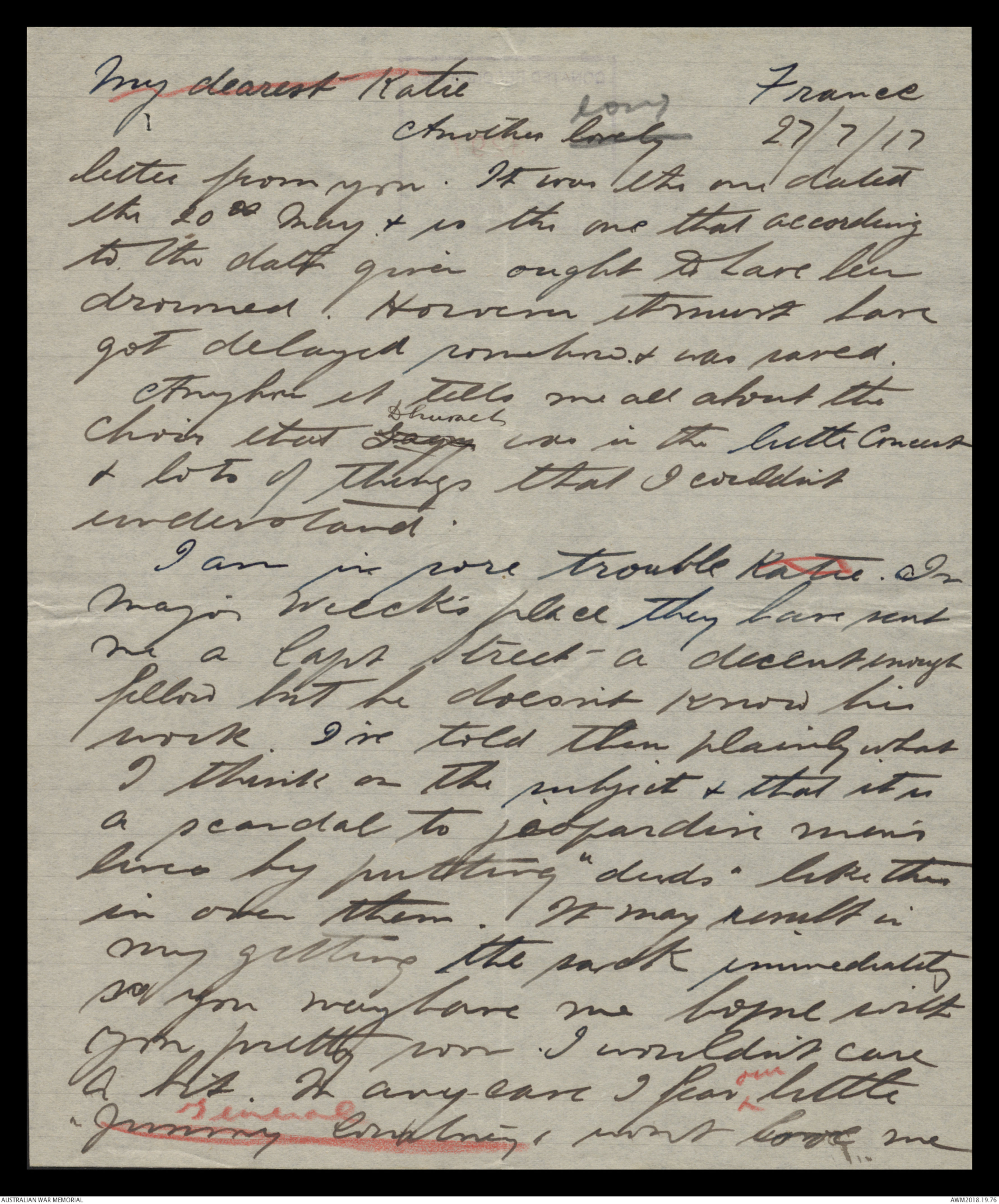 Letters from Harold Edward 'Pompey' Elliott to his family, May 1917 - December 1917 - Part 7