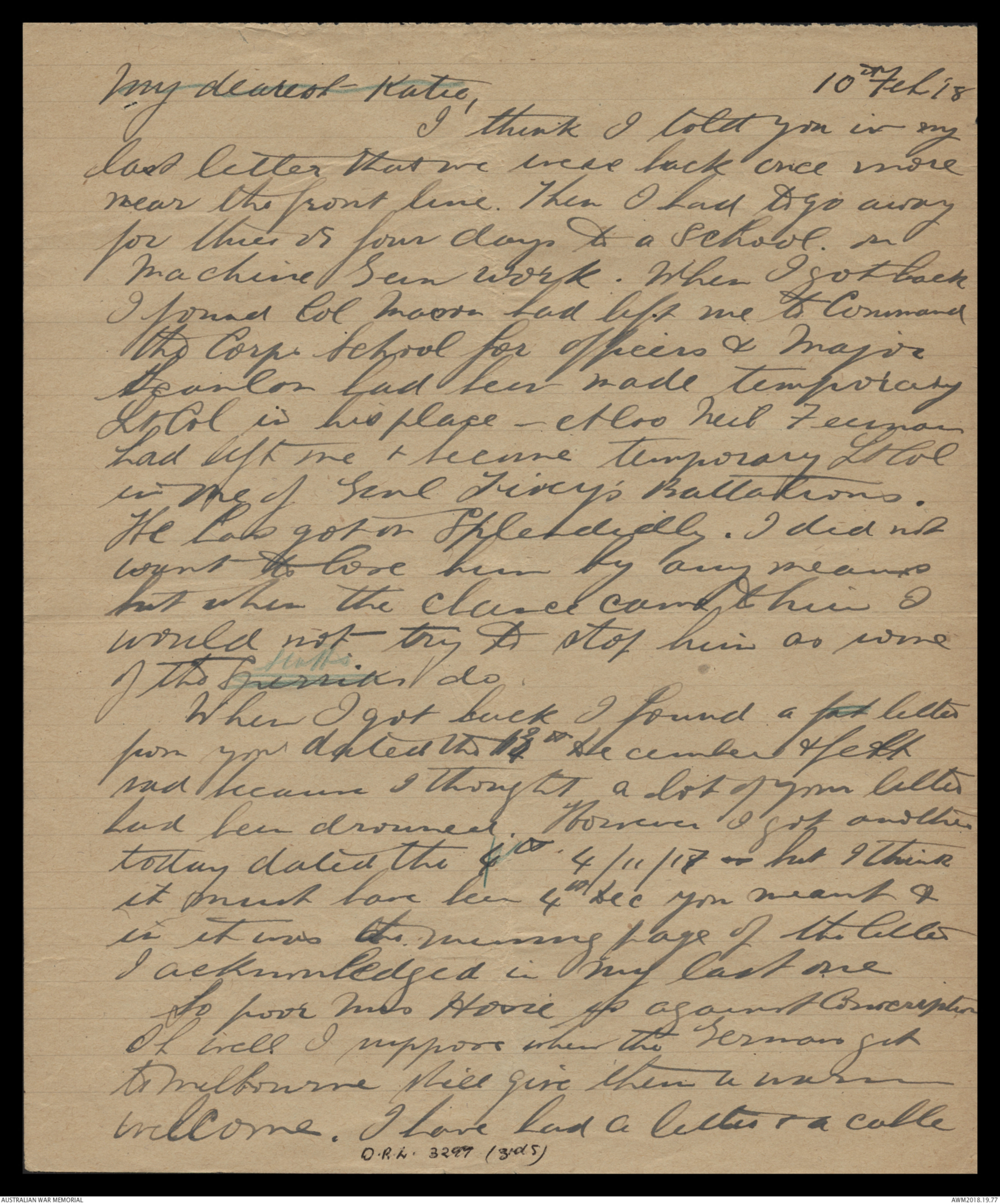 Letters from Harold Edward 'Pompey' Elliott to his family, January 1918 - May 1918 - Part 3
