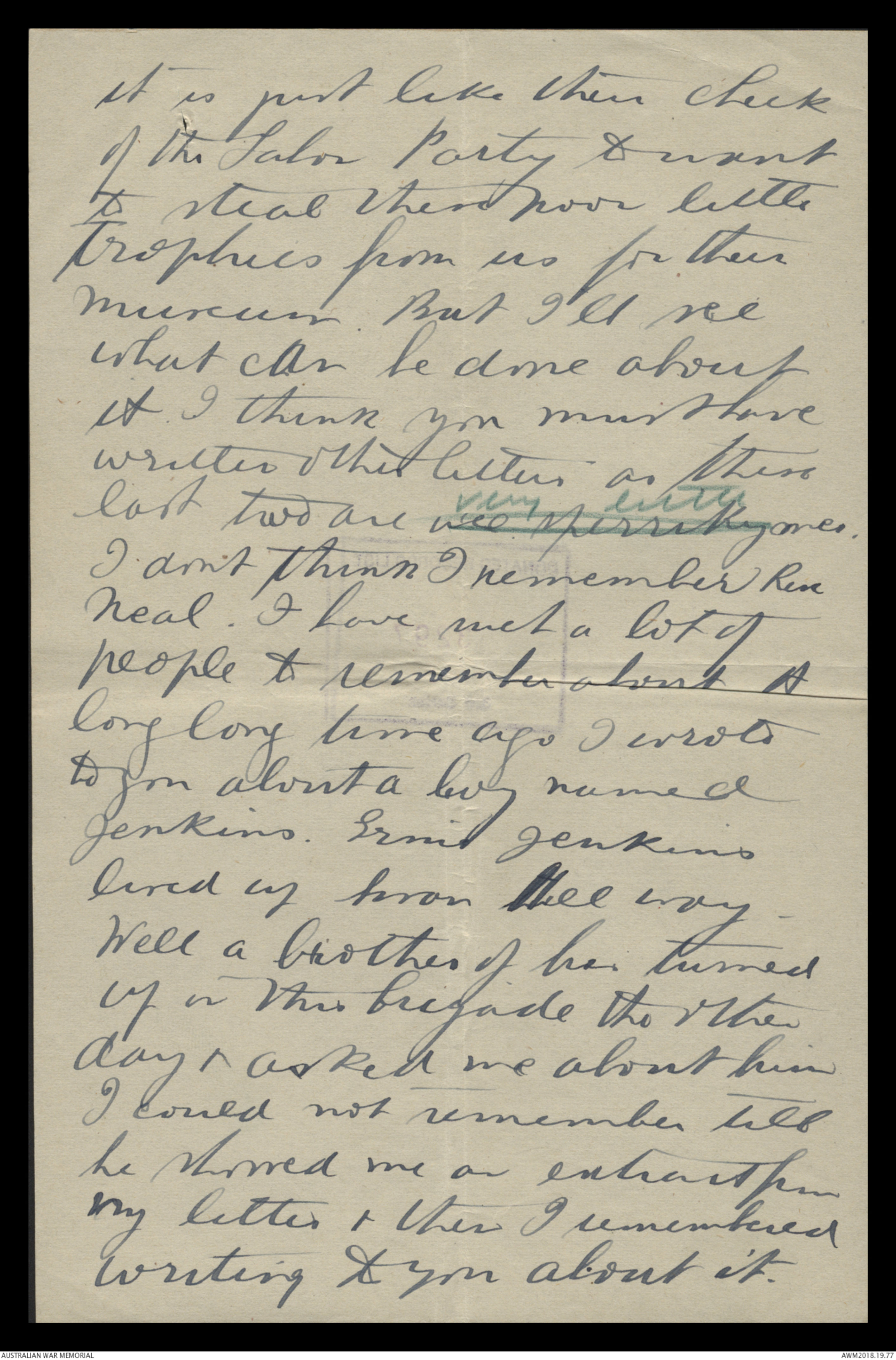 Letters from Harold Edward 'Pompey' Elliott to his family, January 1918 - May 1918 - Part 8