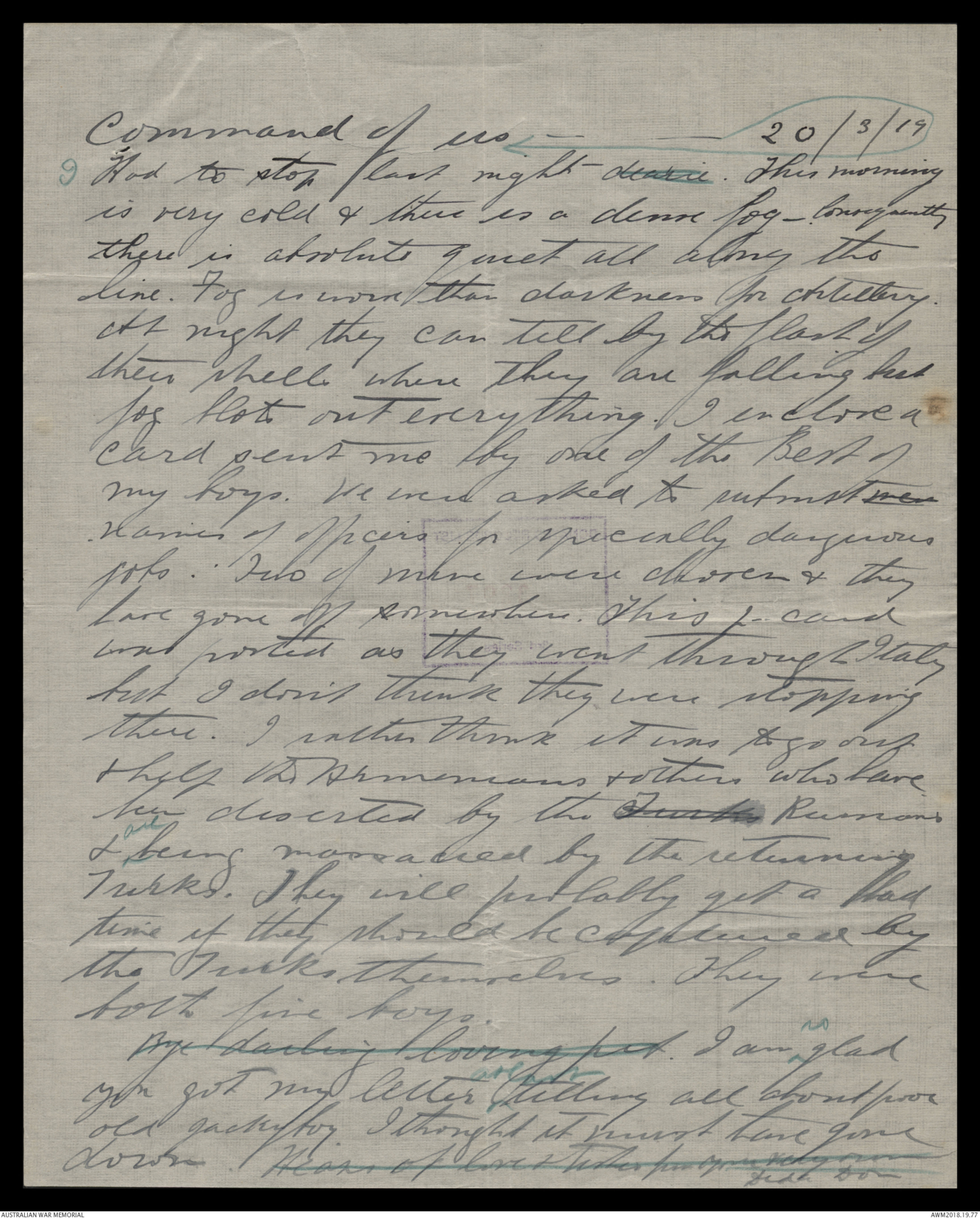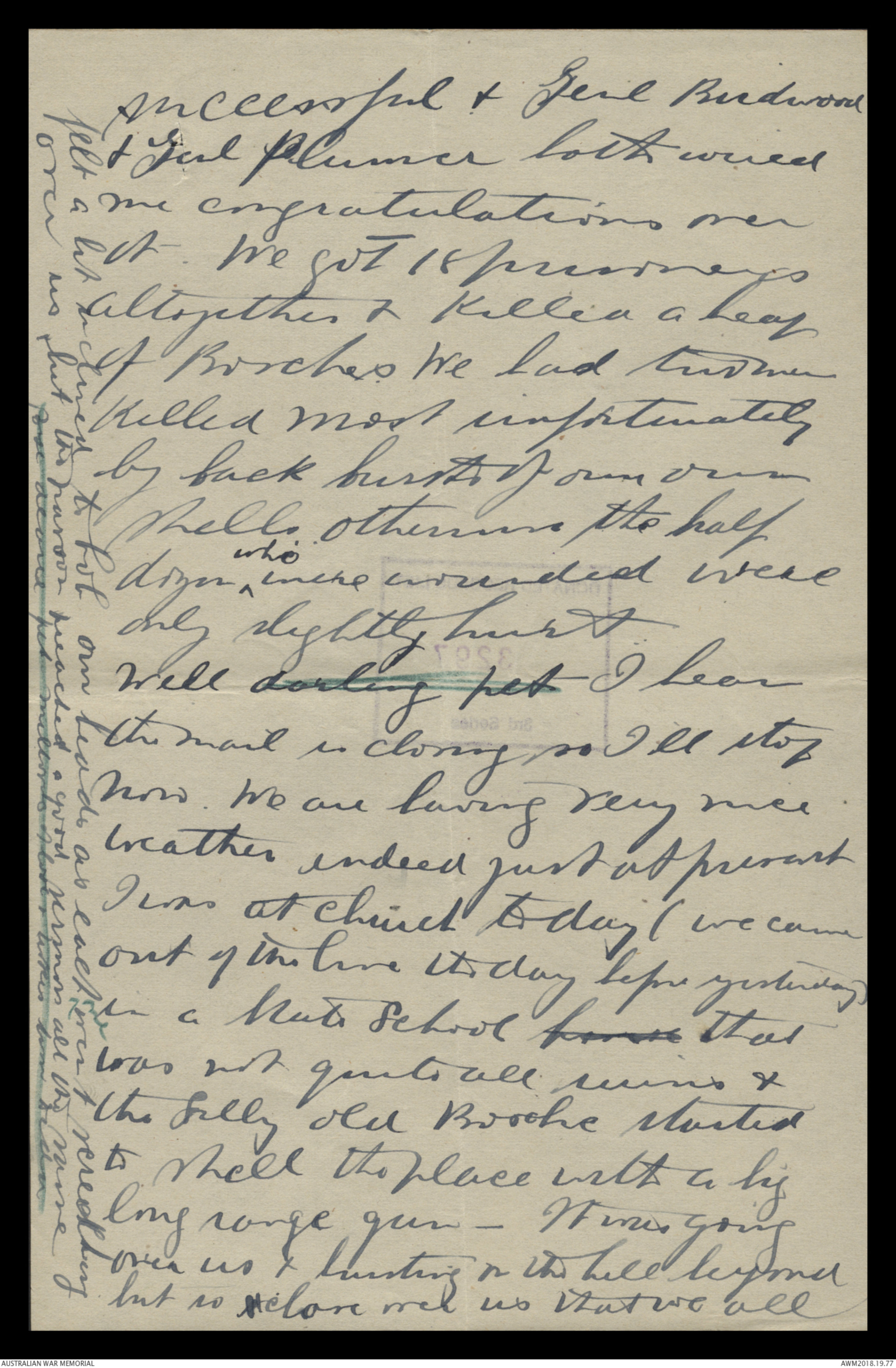 Letters from Harold Edward 'Pompey' Elliott to his family, January 1918 - May 1918 - Part 9