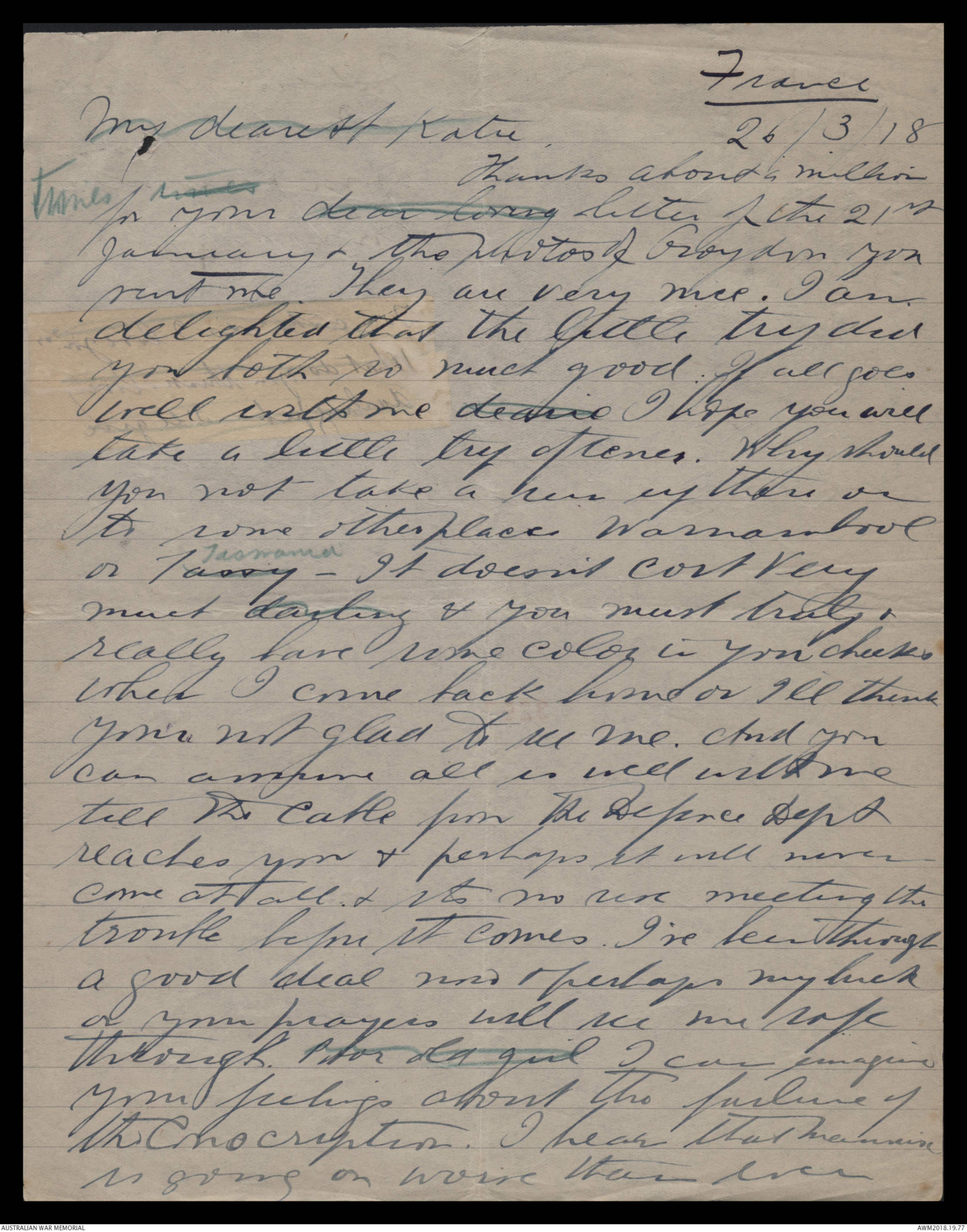 Letters from Harold Edward 'Pompey' Elliott to his family, January 1918 - May 1918 - Part 10