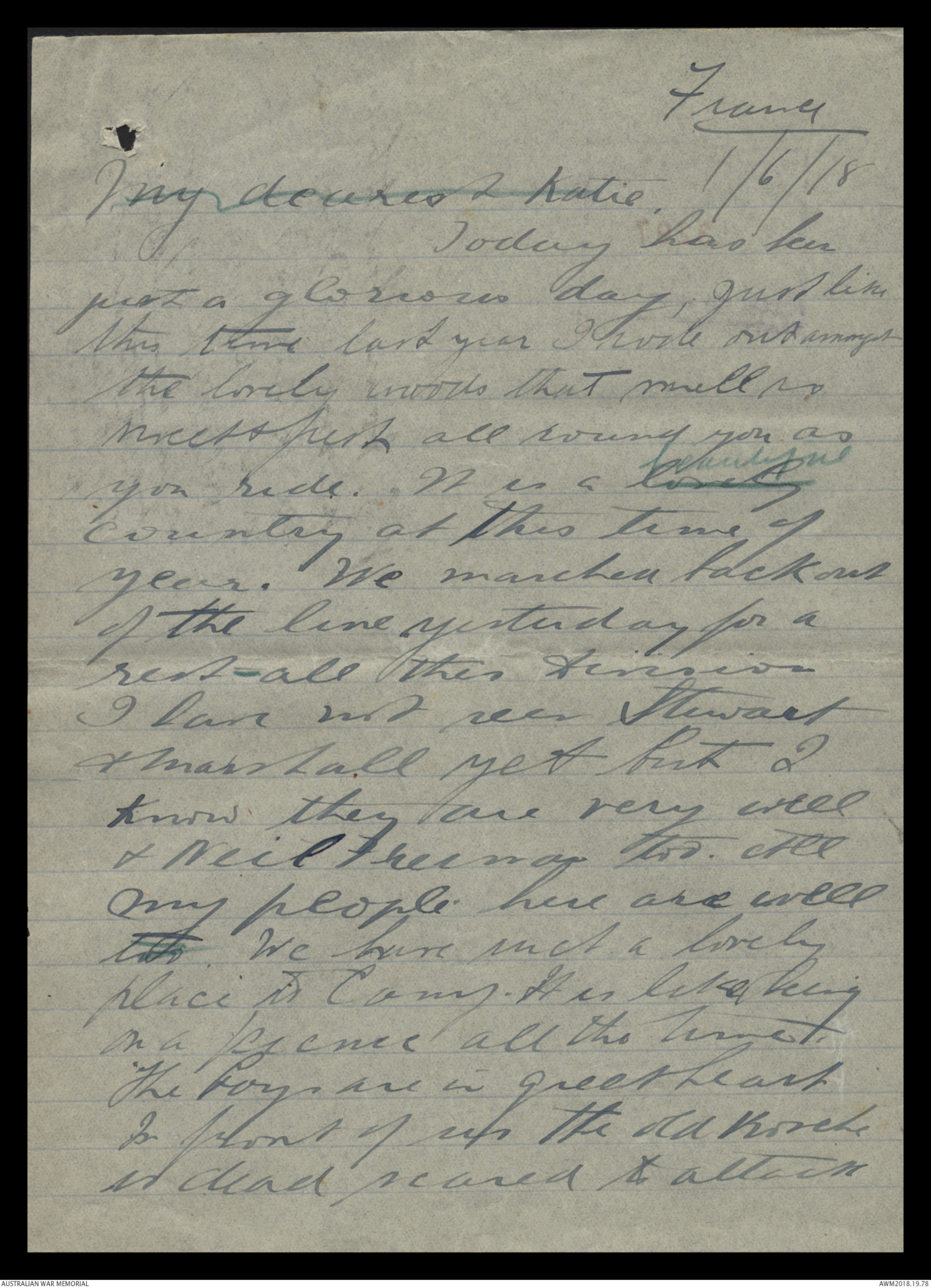 Letters from Harold Edward 'Pompey' Elliott to his family June 1918 - October 1918 - Part 1