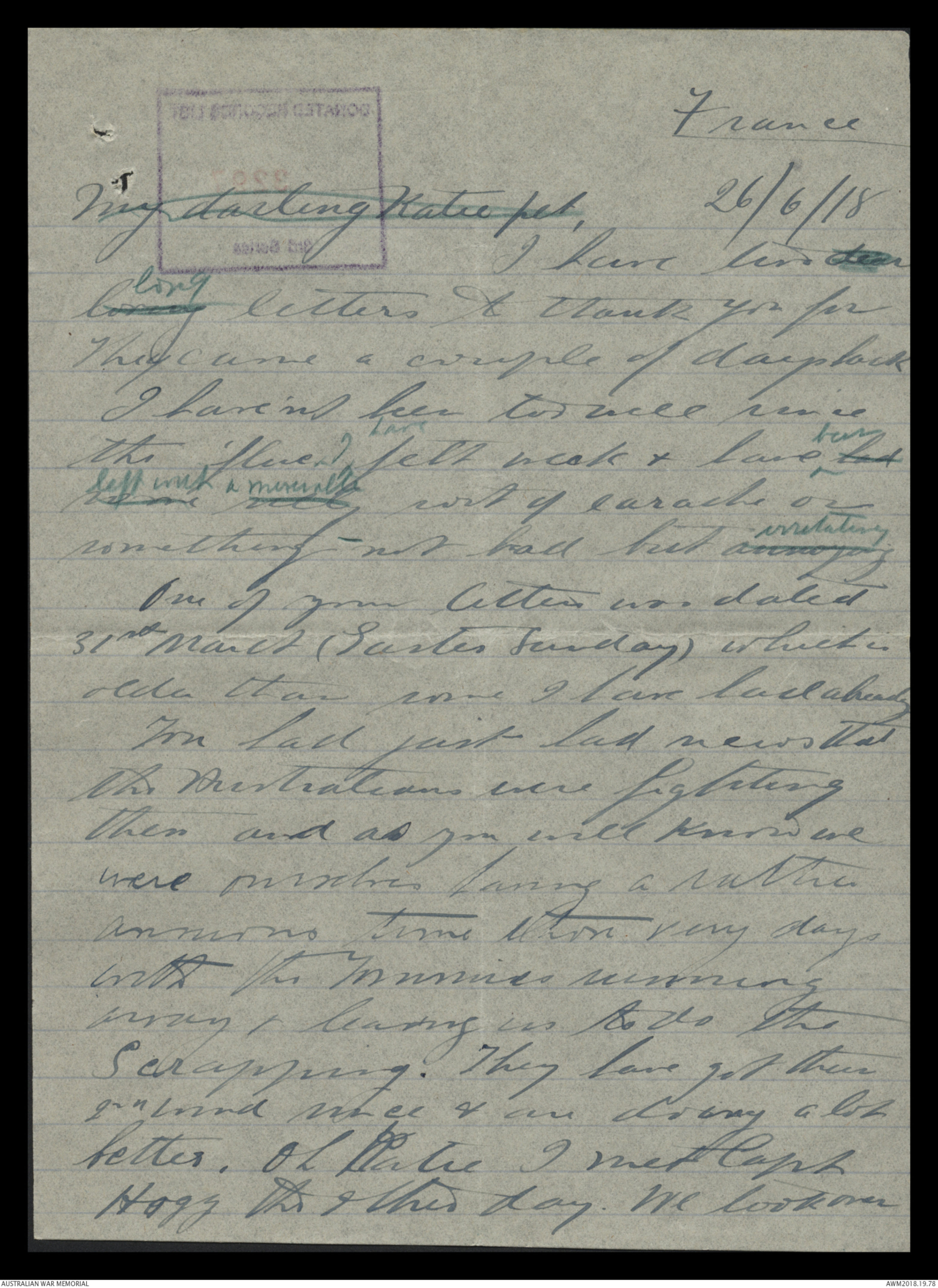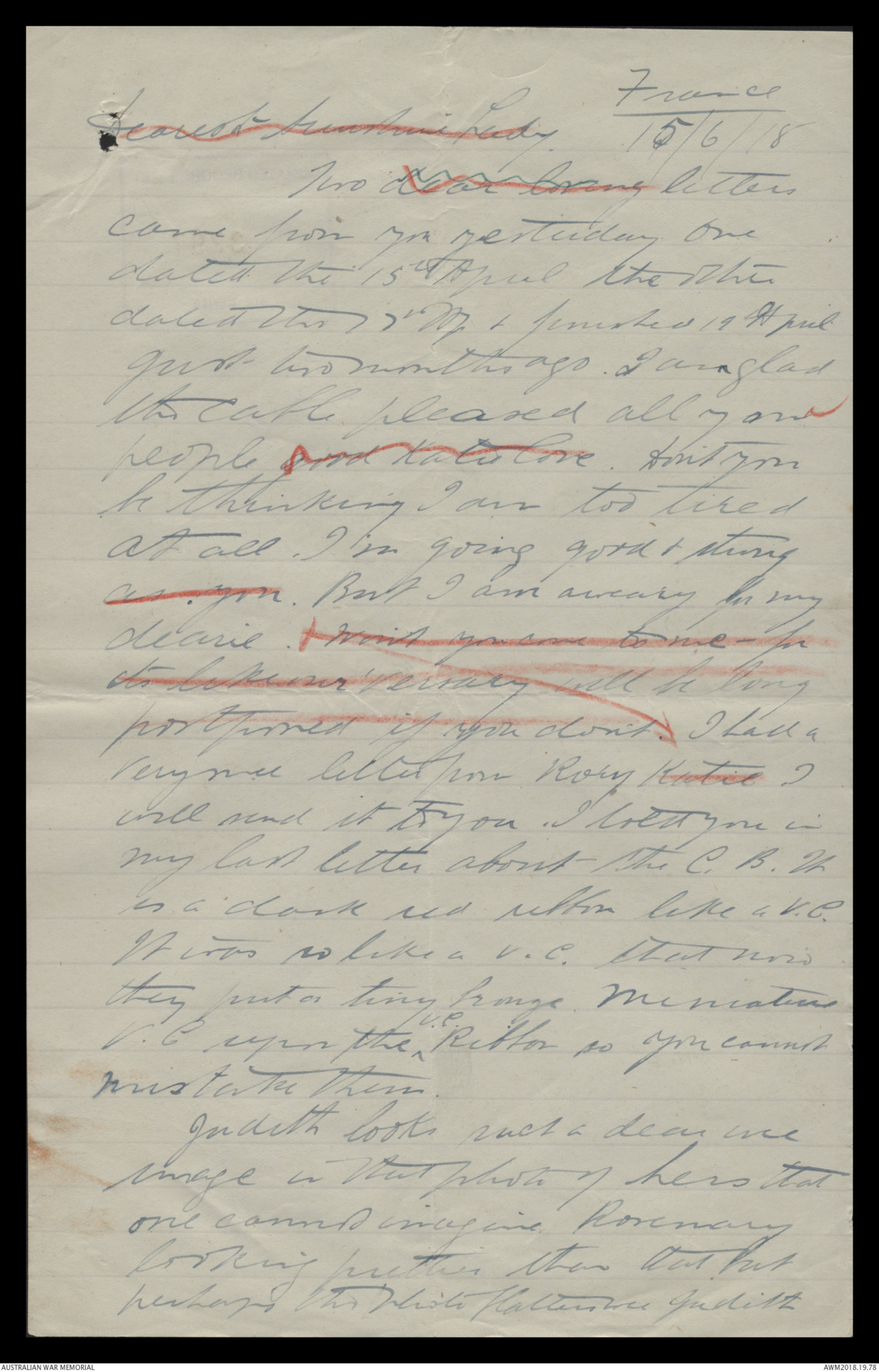 Letters from Harold Edward 'Pompey' Elliott to his family June 1918 - October 1918 - Part 3